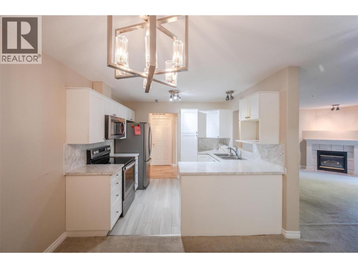 Cherry Lane Towers – A well-built concrete and steel 55+ complex, ideally located just steps from Cherry Lane Mall, offering easy access to banking, grocery stores, pharmacies, and more. Public transit and bike lanes are right outside the building. This bright 2nd-floor unit features 2 bedrooms and 2 bathrooms, with quick possession available. The recently updated kitchen sits next to a formal dining room, perfect for entertaining. The primary bedroom includes two closets and a full 4-piece ensuite, while the second bedroom is conveniently located near the second bathroom. The spacious living room has a cozy gas fireplace and opens onto a private, covered north-facing deck. Amenities include one secure underground parking stall, storage lockers, and a community room with a variety of activities. Pets are welcome with restrictions. (id:6769)
