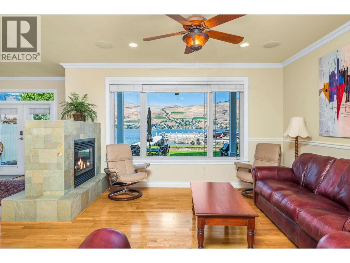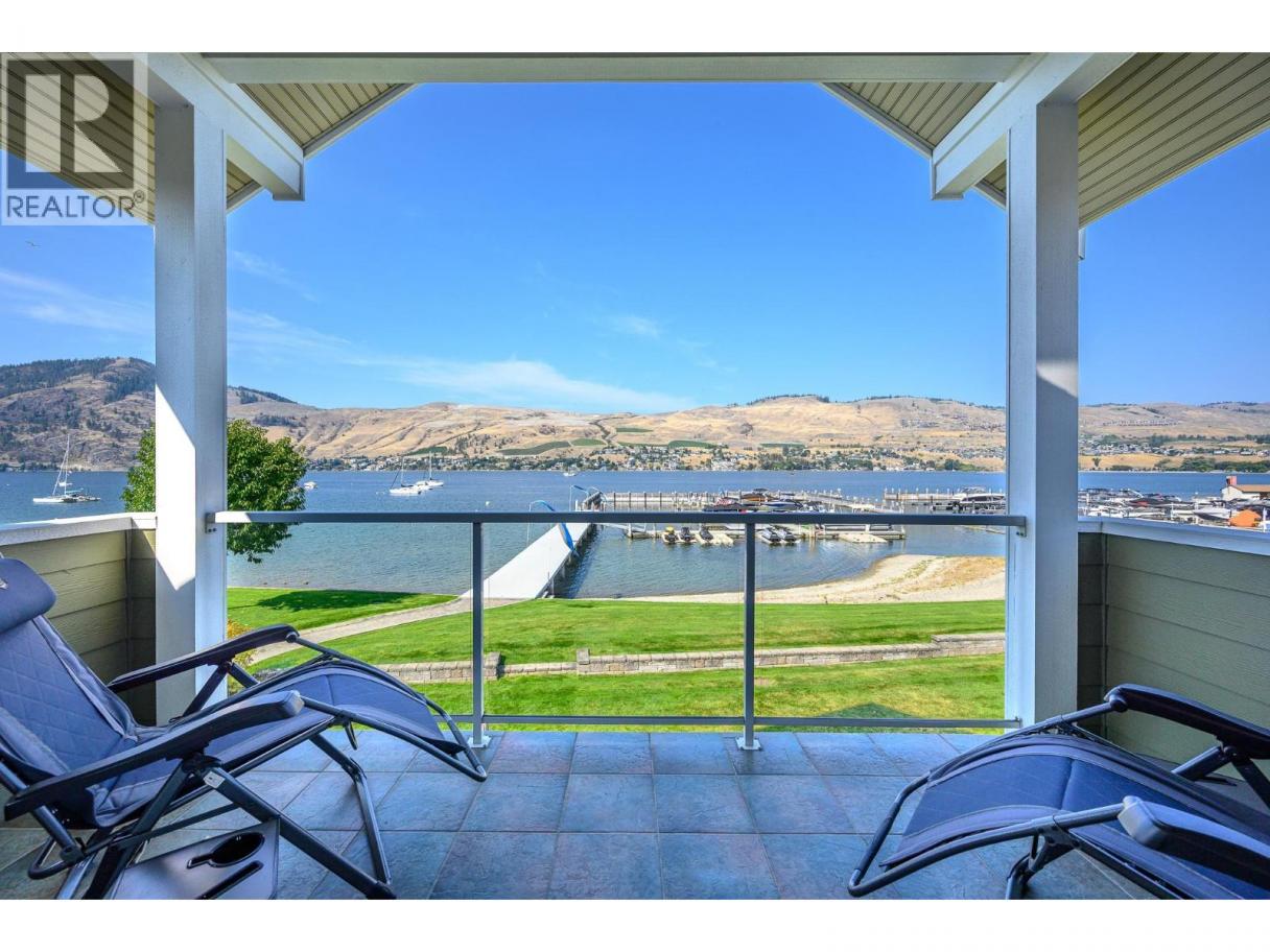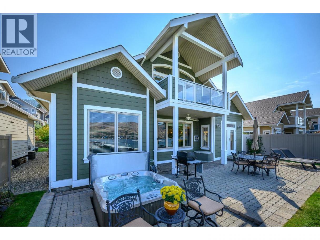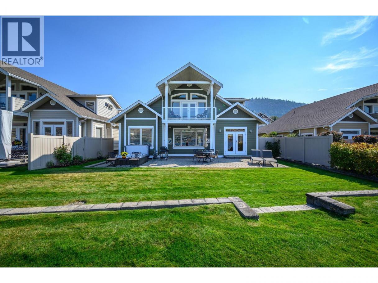 A RARE OFFERING - Welcome to “The Lakeside Residences” ultimate lifestyle on the shores of Okanagan Lake. Whether your permanent residence or dream vacation home, this exclusive, low-turnover, bare-land strata neighborhood of only 15 homes offers luxurious gated privacy & low-maintenance lifestyle; a perfect lock & leave. Offered by original owners, this lovingly maintained home has abundant natural light from walls of windows opening to the lake on both floors. Extensive quality custom built-ins and architectural touches grace every room of the house. Main floor offers spacious great room design with seamless flow to huge patio with hot tub, grassy lawns, beach, & marina, with your own designated boat slip. Kitchen features granite counters, gas range, pantry, casual dining bar & computer corner. Bedroom with full ensuite at front of home. TV/family room with lakeview, has closet, tasteful built-ins and lock off to main bath for easy double duty as 3rd bedroom. Spacious upper level is dedicated as your personal retreat with French doors opening to private covered balcony with vineyard & lakeview, morning & night! Leaded French doors open to office/study in upstairs suite. Walk-in closet leads to ensuite with steam shower, deep soaker tub, double vanity & heated floors! Most of house is wired to audiophile standard with quality built-in speaker system. Downtown Vernon, schools & golf are all minutes away. (id:6769)