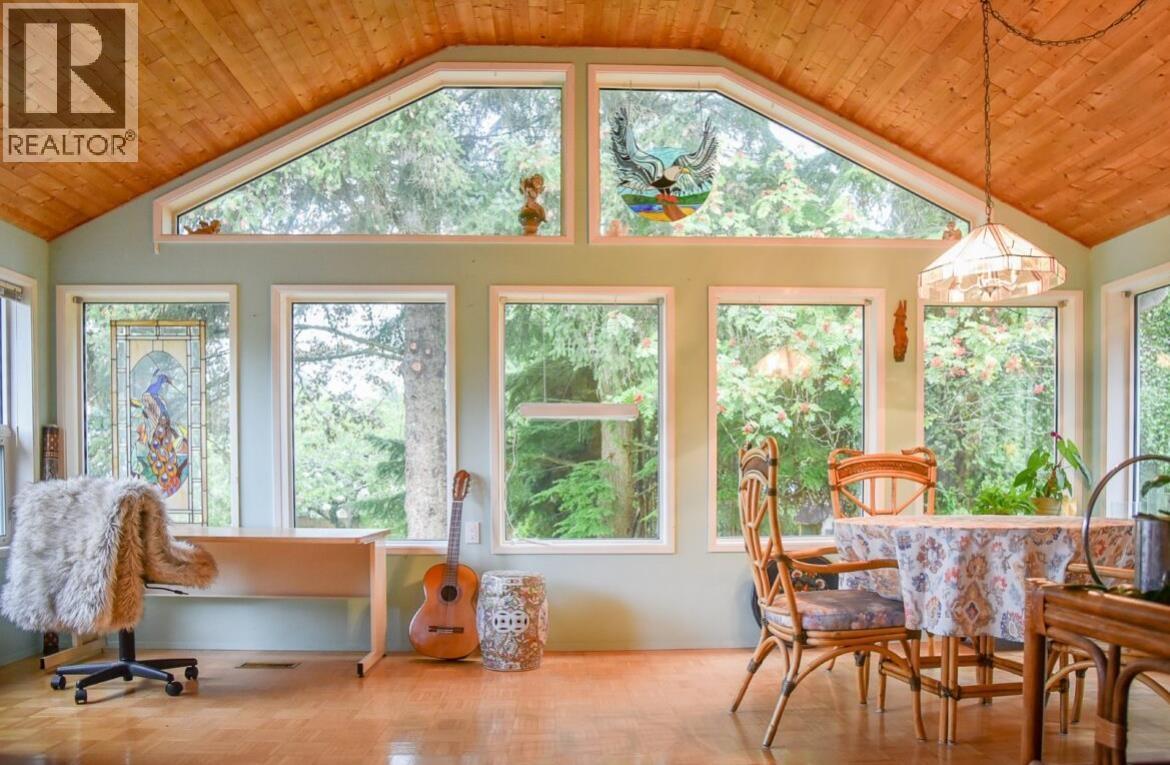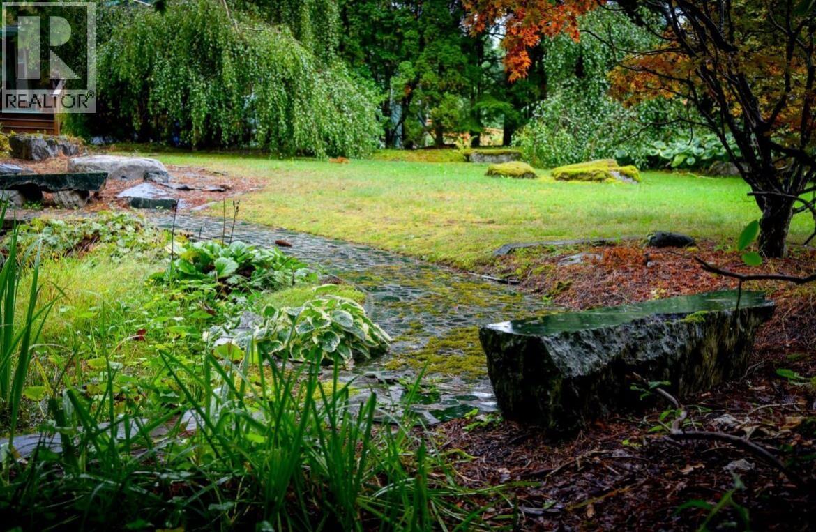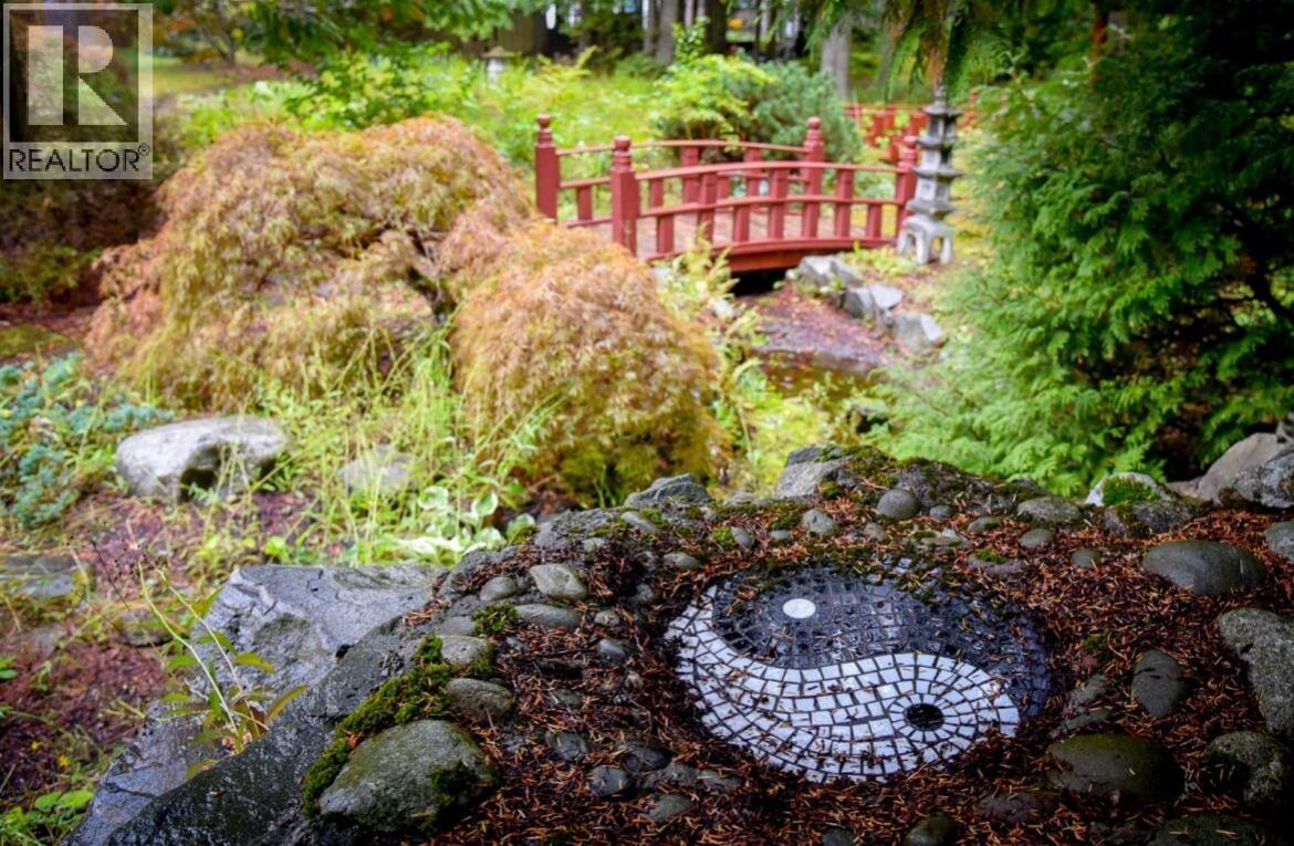 Welcome to 4822 Halliwell where you can escape to a storybook setting on this enchanting 1.03-acre property. This homes classic character is enhanced by an architectural addition offering an airy light-filled, and spacious environment that merges indoor and outdoor living with the vaulted ceilings, walls of windows and the glass doors that open onto a private yard. Warm sun splashed kitchen has hickory cabinets, tiled backsplash ,and plenty of working spaces. Primary suite is spacious and opens onto covered sundeck. Living room features wood burning fireplace with a stunning jade hearth providing a cozy place to gather. Basement with family room, third bedroom, work space down. Grounds offer tranquil pond alongside a shimmering jade walkway. Peaceful Japanese pagoda & fairytale tree fort. (id:6769)