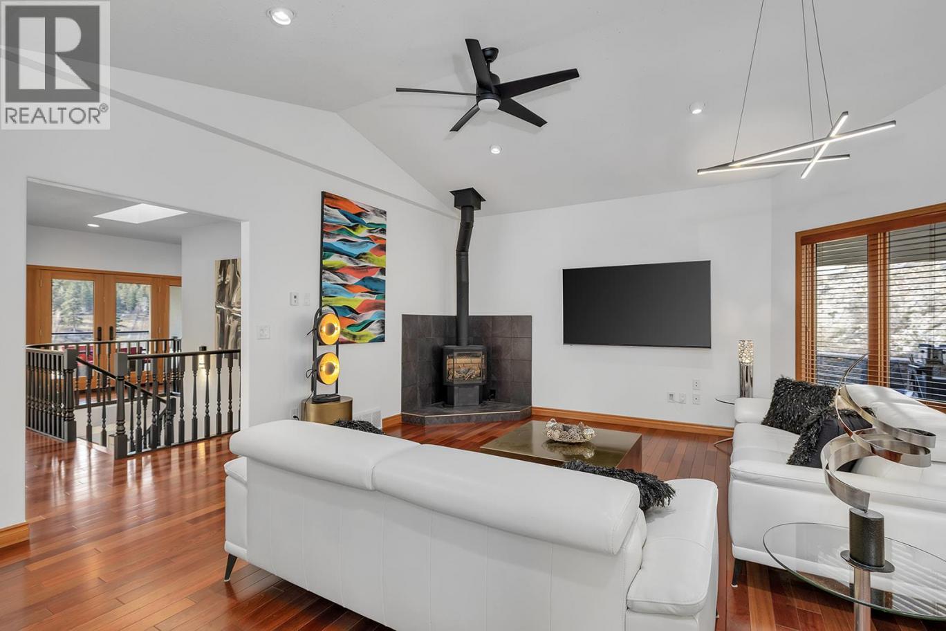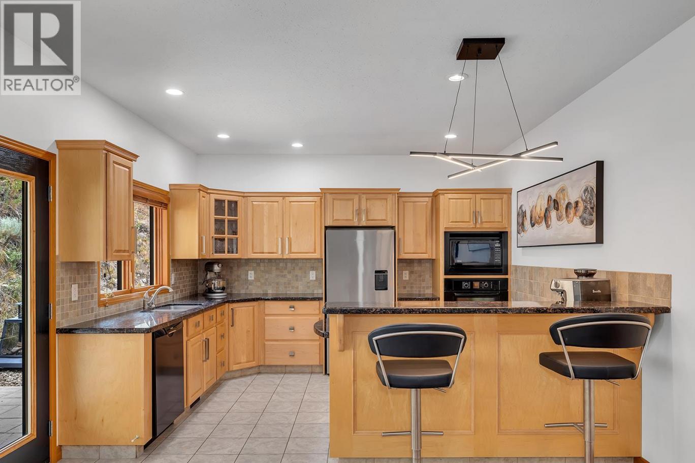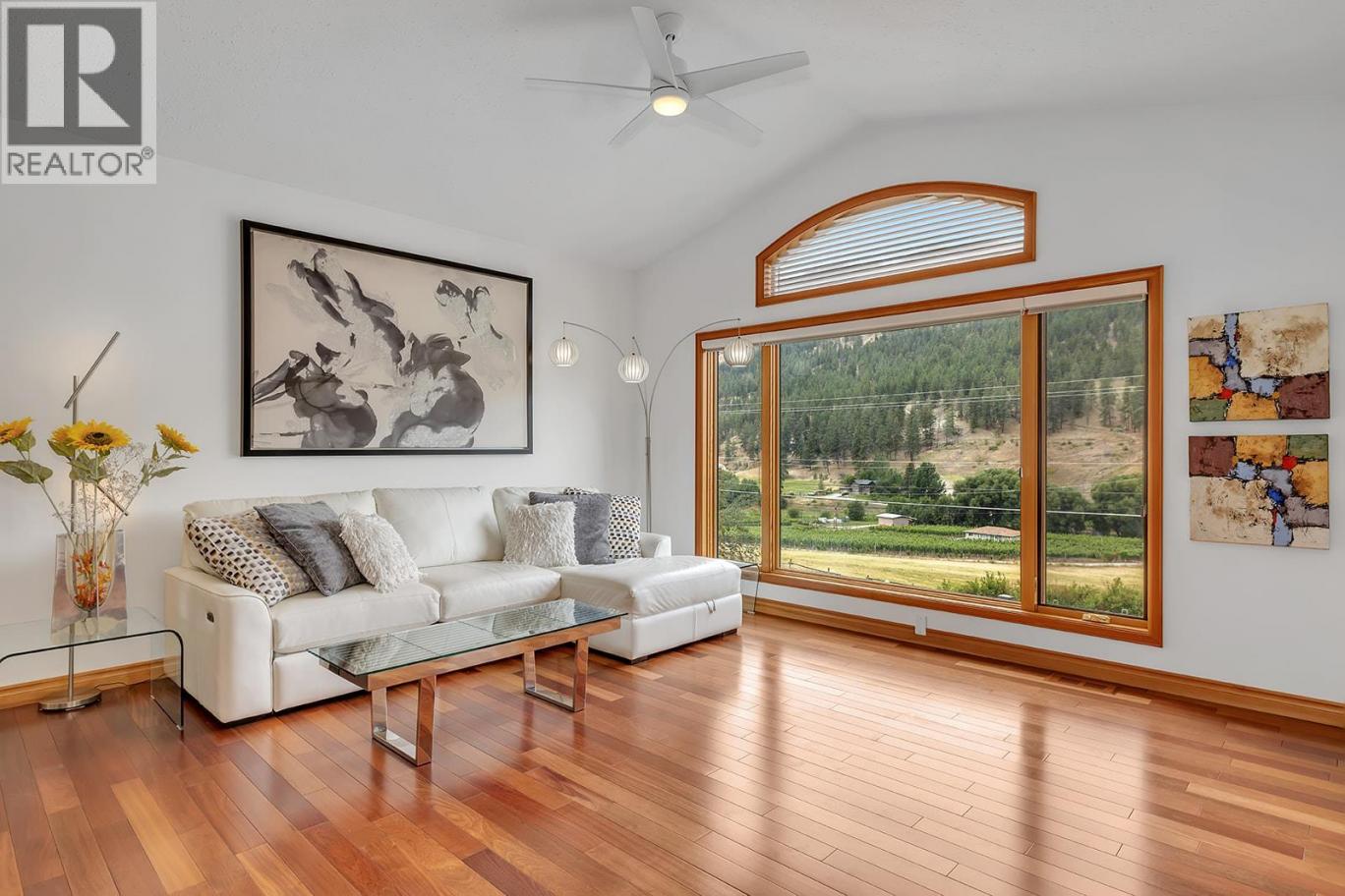 Experience peaceful and elegant living in Summerland's Garnet Valley. This charming gated hillside property spans over 2 acres, offering over 3300 sq.ft. of meticulously crafted and recently renovated living space. Beautiful hardwood flooring accents the spacious and airy interior, adorned with vaulted ceilings and expansive windows that flood the space with natural light, creating an inviting atmosphere. The primary suite boasts a generously sized walk-in closet, a modern and sophisticated ensuite bathroom, and a convenient laundry chute. The gourmet kitchen is large, offering modern appliances, sprawling granite counters, a built-in wine rack, and an abundance of cupboard space. Entertainment awaits in the home theatre downstairs, adjacent to the laundry room, boasting added functionality with a sink and a second fridge, ensuring practicality. Throughout the home, discerning touches such as a gas fireplace, sky-lighting, upgraded lighting fixtures, and timeless solid wood trim elevate the ambiance, creating an atmosphere of refined comfort that resonates throughout every corner. Outside, the allure continues with stunning surroundings that offer a picturesque backdrop for outdoor relaxation and entertainment. Ample parking is provided with an oversized double garage and extra driveway space. Seize the opportunity to make this your Okanagan rural dream home, just minutes away from amenities. Simply move in and enjoy! (id:6769)