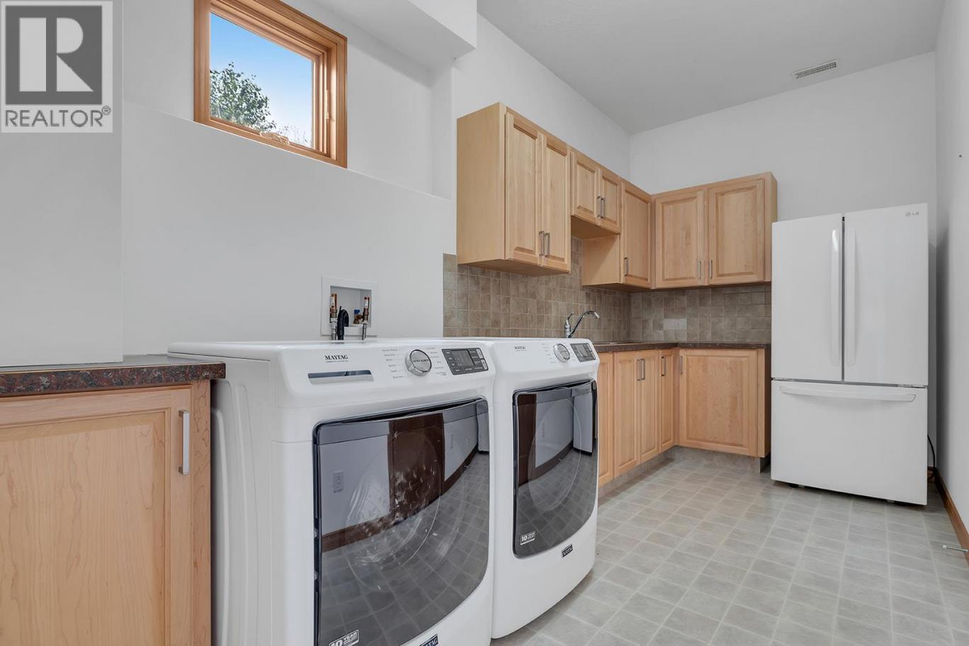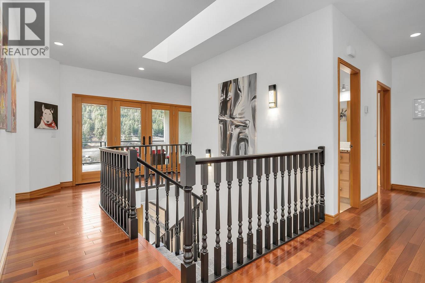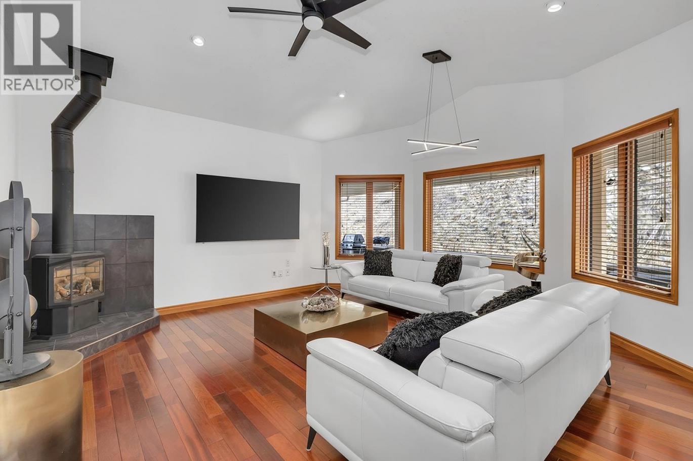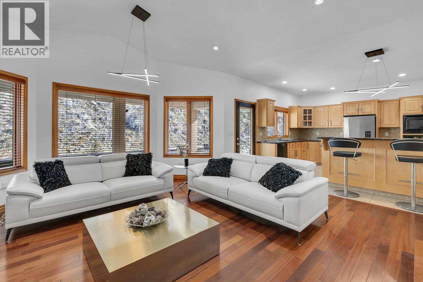Experience peaceful and elegant living in Summerland's Garnet Valley. This charming gated hillside property spans over 2 acres, offering over 3300 sq.ft. of meticulously crafted and recently renovated living space. Beautiful hardwood flooring accents the spacious and airy interior, adorned with vaulted ceilings and expansive windows that flood the space with natural light, creating an inviting atmosphere. The primary suite boasts a generously sized walk-in closet, a modern and sophisticated ensuite bathroom, and a convenient laundry chute. The gourmet kitchen is large, offering modern appliances, sprawling granite counters, a built-in wine rack, and an abundance of cupboard space. Entertainment awaits in the home theatre downstairs, adjacent to the laundry room, boasting added functionality with a sink and a second fridge, ensuring practicality. Throughout the home, discerning touches such as a gas fireplace, sky-lighting, upgraded lighting fixtures, and timeless solid wood trim elevate the ambiance, creating an atmosphere of refined comfort that resonates throughout every corner. Outside, the allure continues with stunning surroundings that offer a picturesque backdrop for outdoor relaxation and entertainment. Ample parking is provided with an oversized double garage and extra driveway space. Seize the opportunity to make this your Okanagan rural dream home, just minutes away from amenities. Simply move in and enjoy! (id:6769)