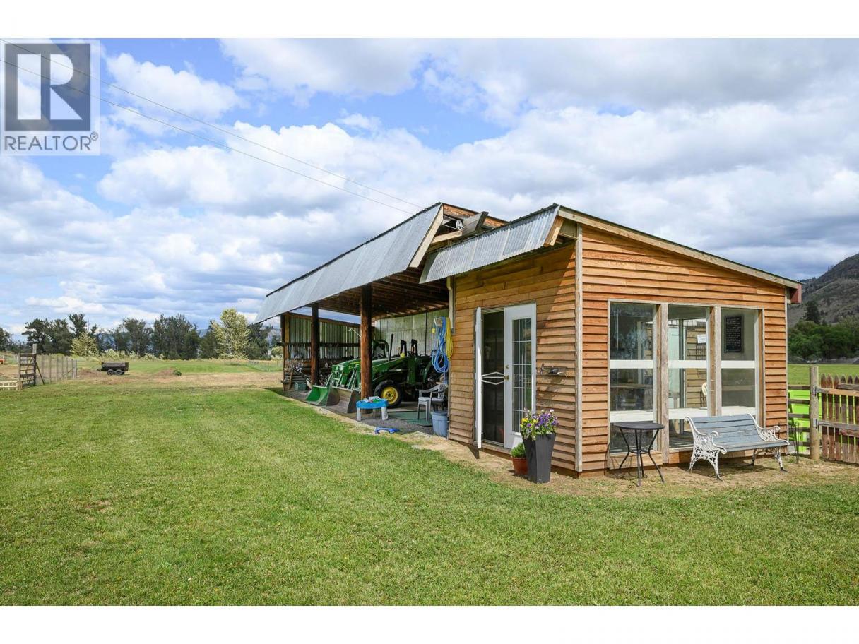 Gorgeous, flat, (approx.) 16 acres on the North Thompson River front in the ALR w/2 homes with suite and close to shopping, restaurants and a popular winery. School bus stops right at the driveway. This property feature city and irrigation water. The main home includes an open floor plan on the main floor with vaulted ceilings, original fir flooring and large south-facing windows for all your plants. There are 2 bedrooms, 2 bathroom up and the walk out basement features laundry, master bedroom, den and a 4 piece bathroom, large main foyer, laundry and utility room. There is a sunroom off of the main bedroom at the front of the house. The main home has an addition built in 2020 and features an open floor plan with 2 bedrooms, 4 piece bathroom living/dining room with large south facing windows and a 2 piece bathroom in the master bedroom, with 2 car garage below. Also below is a separate large heated bonus room perfect as a craft room workshop or home office. A second house on the property is a 2019 manufactured home with 2 bedrooms, 2 bathrooms, full kitchen and Gyproc walls. Also a new 18x20 lean-to off of one of the outbuildings for extra storage. All in city limits (id:6769)