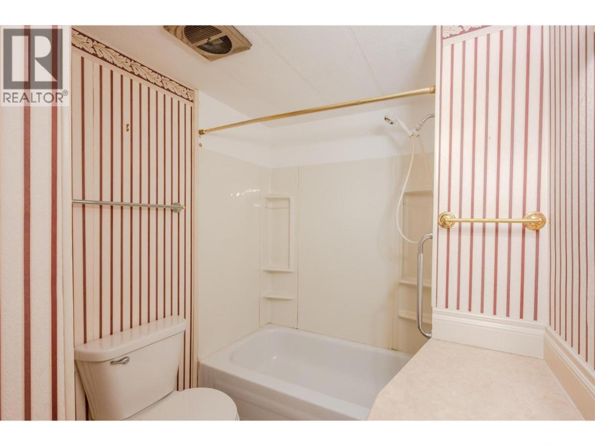 Quick possession possible! This cozy 2 bedroom, 1 bathroom has everything you need on one level and is priced to sell. Located walking distance to most amenities, this home is offers an eat in kitchen with lots of counter space, a large, bright living room, a large foyer/entrance room, two bedrooms and one four piece bathroom. Crown moulding throughout the living room, kitchen and hallway, lino and laminate flooring throughout except for the primary bedroom, updated vinyl windows, forced air furnace. Embrace the vintage wall paper and bring your own decorating ideas to make this your own! Outside you will find room to park two vehicles, a private patio area, a shed and room to have a garden bed. The Pines MHP is a well run park with live in onsite park management. Occupants must be 55+, and this park does allow one small pet with park approval. (id:6769)