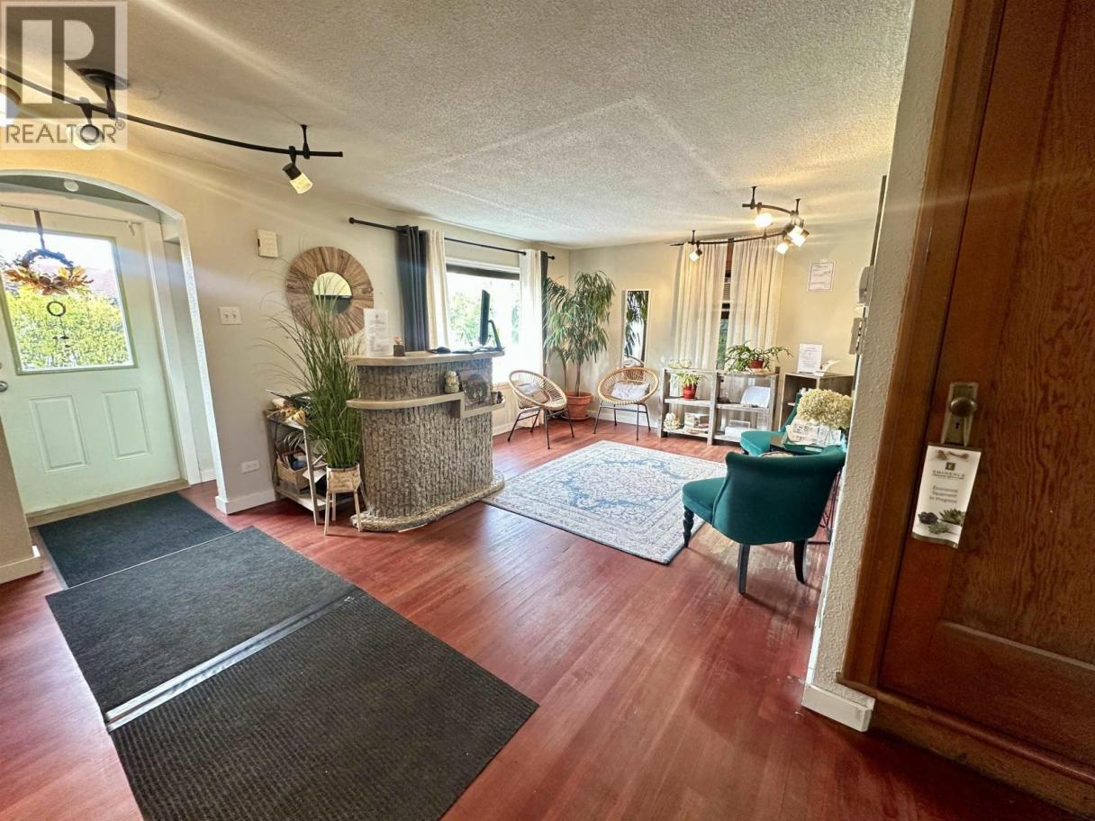 Charming heritage-style building located in the heart of Vanderhoof on a premier corner lot with excellent exposure. This triple lot is located in the downtown business core, within walking distance to all the town amenities. The building has been home to several successful business over the years, including a law office, coffee shop, and now a community gathering space and a spa. The property is well-maintained and offers several parking spaces, with lane access at the back of the property, as well as a detached storage shed. Recent upgrades to the building include a new HE gas furnace and HWT in 2022. The interior has been tastefully renovated and re-modeled, with a 300 sq ft addition, a spacious foyer/retail space, another separate office/room, kitchen area, and a cute loft area that could be used for an additional office area or storage space. The C1 Retail Commercial Zoning allows for a wide array of business uses, offering potential to develop the property to fulfill your desired business dream. (id:6769)