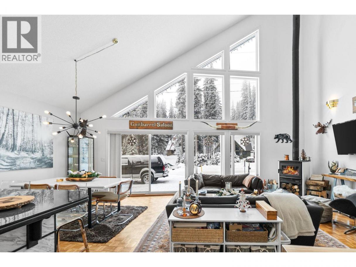Apex Mountain Resort offering a self-contained 1 bedroom mortgage helper with excellent revenue and NO Strata fee here to boot! A beautiful and spacious 3-bedroom plus den and loft, 3-bathroom half duplex at Apex Mountain offers luxurious living with quality updates throughout. Whether it's sleeping for 2 or up to 14 there is no shortage of room here. Have a seat in this great room featuring impressive 25-foot vaulted ceilings, a new high-efficiency wood stove, and a wall of windows that provide abundant natural light. The kitchen, appliances, and main home bathrooms have all been updated, including new lighting and fixtures for ease of nothing to replace. Enjoy quiet mountain evenings from the private deck with a hot tub and relaxed sitting area. Downstairs offers a workshop and ski room to ensure your equipment is always in top condition. This home is designed for comfort, ease, and enjoyment, perfectly suited for an elevated ski mountain lifestyle. Practical features include a covered metal walkway to clear snow before entry and a high-pitched metal roof designed for efficient snow shedding. There is parking available for up to four vehicles, and it's just a short walk to the Apex Village and lifts! (id:6769)