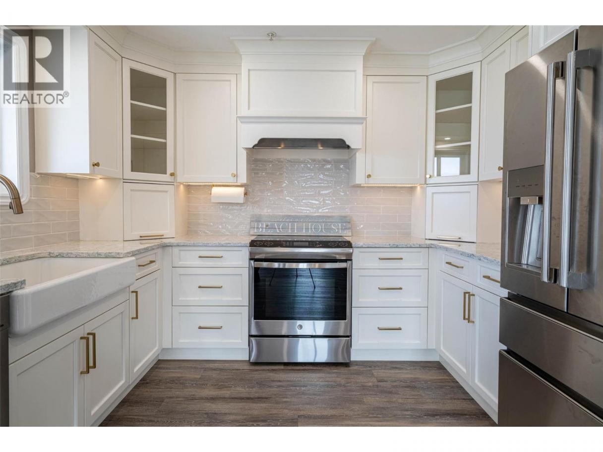 Luxury Lakefront Top Floor Condo β Fully Renovated at The Palms by the Lake, Osoyoos A rare opportunity to own a fully renovated 2-bedroom, 2-bathroom condo just steps from the shores of stunning Osoyoos Lake. With $100,000 in high-end renovations and upgrades, this home offers modern luxury, unbeatable views, and resort-style amenities. Step into a beautifully redesigned interior featuring a gourmet kitchen with custom cabinetry, Cambridge quartz countertops, designer tile backsplash, and premium stainless steel appliances. Both bathrooms have been completely updated with spa-inspired fixtures, elegant tile-work, including a walk-in shower and corner soaker tub. Enjoy new luxury flooring, fresh paint, and designer lighting throughout. Take in unobstructed lakefront views from your private balcony, with the lake and park directly across the street. Whether itβs a peaceful morning coffee or a vibrant sunset, this view never gets old. The complex features in-ground swimming pool, secure heated parking, storage locker, games room, workshop, guest suite, entertainment room with full kitchen, rooftop patio and a welcoming community atmosphere β whether you're looking for a full-time residence, vacation getaway, or investment property this is it! (id:6769)