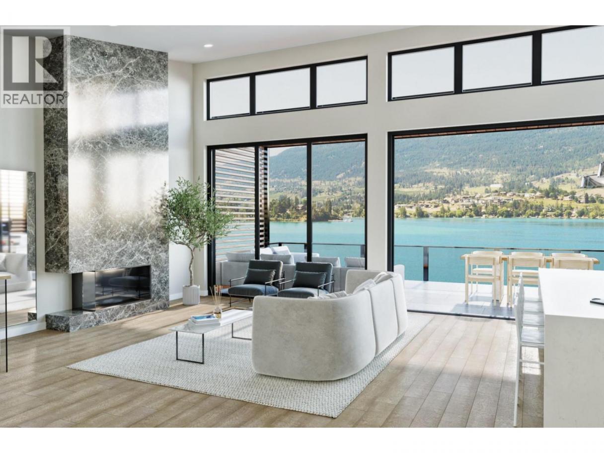 Welcome to Owl’s Nest an exclusive collection of 28 Net Zero luxury homes situated on the shores of Kalamalka Lake – one of the most beautiful and exclusive lakes in the Okanagan Valley. The community features panoramic lake views with direct access to the Okanagan Rail Trail and beach, municipally approved 20-slip private marina and resort-style amenities: multi-purpose sport courts and community fire pits to provide endless opportunities to relax and enjoy paradise. The Water's Edge III features convenient main floor living. This home offers unobstructed lake views from every floor, with a primary suite on the main living floor (upper level). The open-concept kitchen/living area features 14+ ft vaulted ceilings, floor-to-ceiling windows, and sliding folding doors that open onto a covered balcony with an optional outdoor kitchen for seamless indoor/outdoor entertaining. The gourmet kitchen is equipped with chef-inspired appliances. Select from 3 finishing collections or customize to your personal taste. An impressive wine wall with cabinet-coordinated wood surround, simple horizontal bottle display, and LED lighting highlights your collection. Additional features include an oversized two-car garage with extra storage for aquatic gear, and a three-story walk-out with a private landscaped terrace. All this is located just a two-minute walk to the beach. (id:6769)