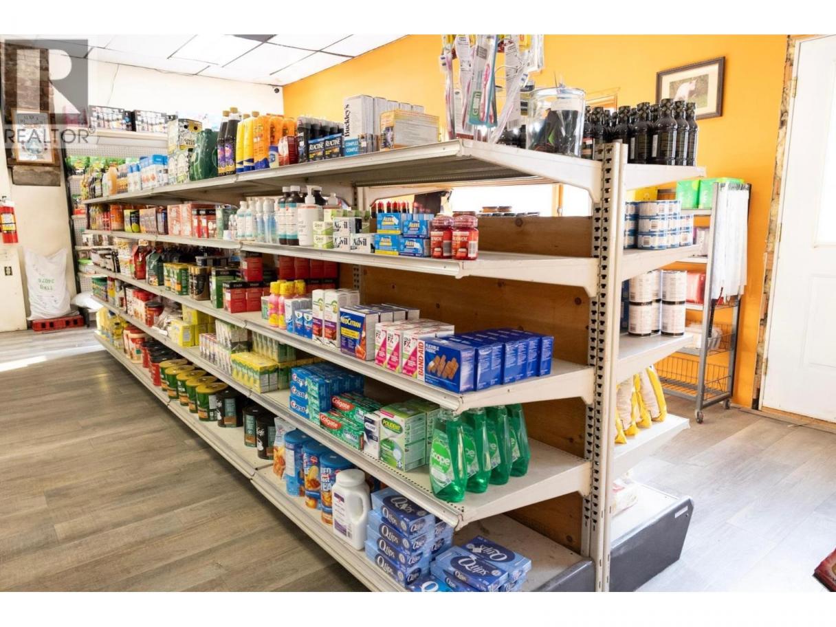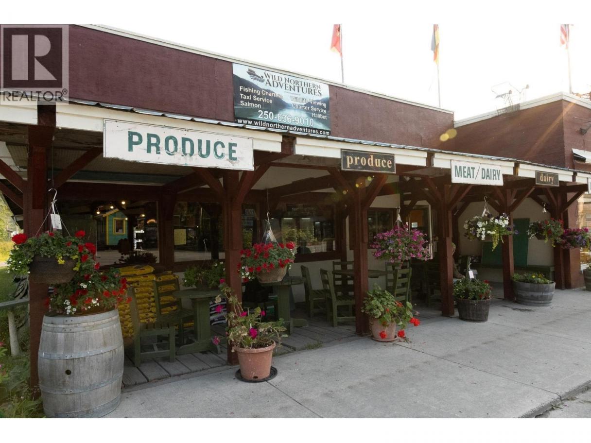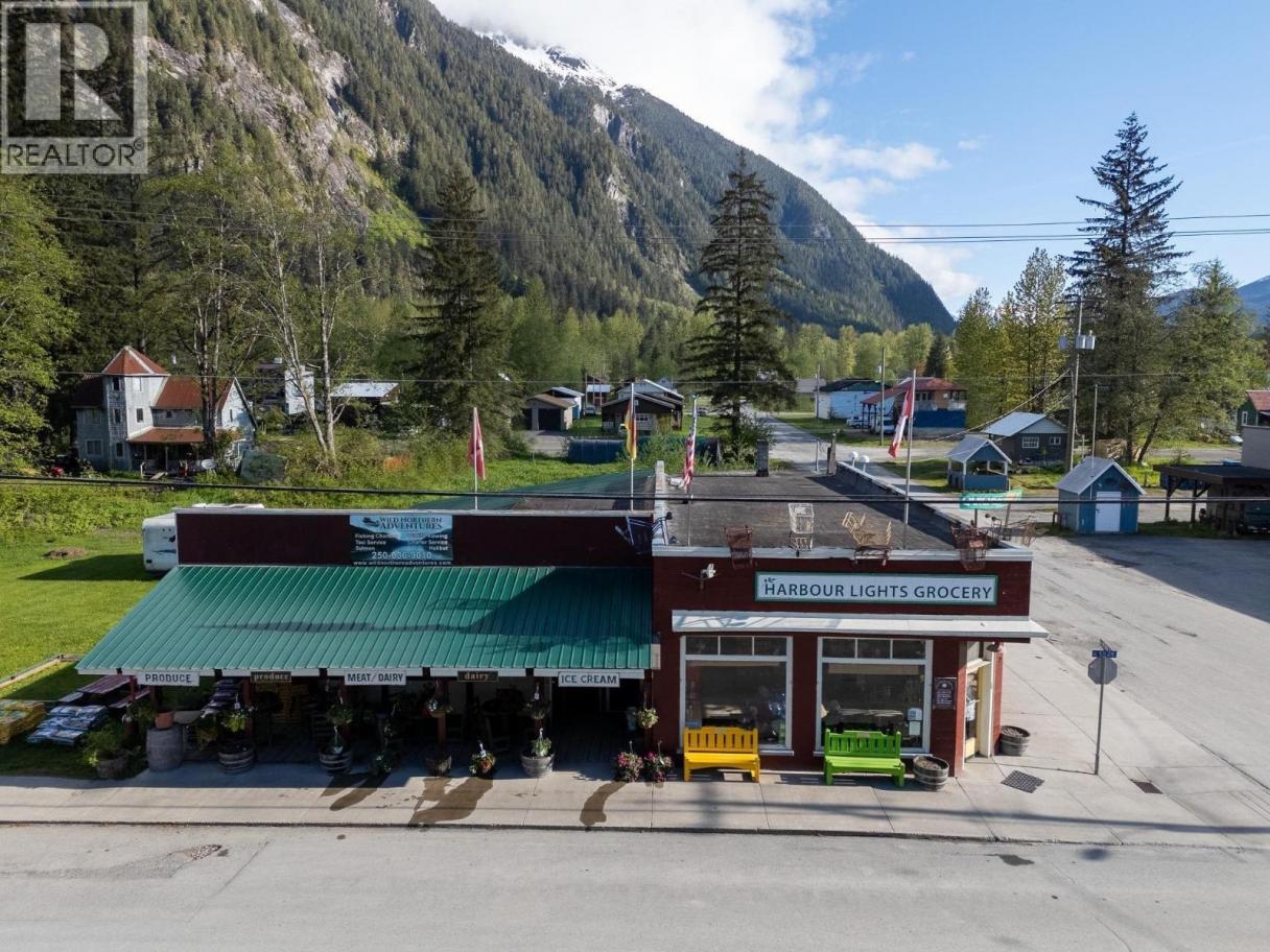 Here's your chance to own a thriving grocery store in the heart of the picturesque coastal town of Stewart, BC - a popular tourist destination nestled between towering mountains and the ocean. Located on a prime corner lot along the main road, this heritage building boasts fantastic curb appeal and a strong local following. This well-established one-stop shop offers a full selection of groceries, household supplies, baked goods, and more. A partial Kitchen allows lots of opportunity to make different foods and or heat up baked goods. Recent upgrades include a new barcode/POS system, stand-up fridges and freezers, a back-up generator, and added income from a Telus tower lease. Enjoy a relaxed atmosphere with a side lawn, picnic tables, and an outdoor patio. An addition completed in 2002 expanded the business footprint, and the offering includes additional bare lots for potential expansion or development. With the recent opening of a nearby mine, the town is booming - making this an ideal time to invest. (id:6769)