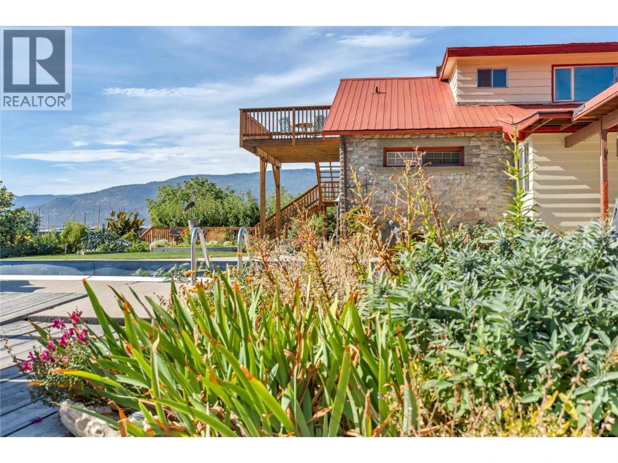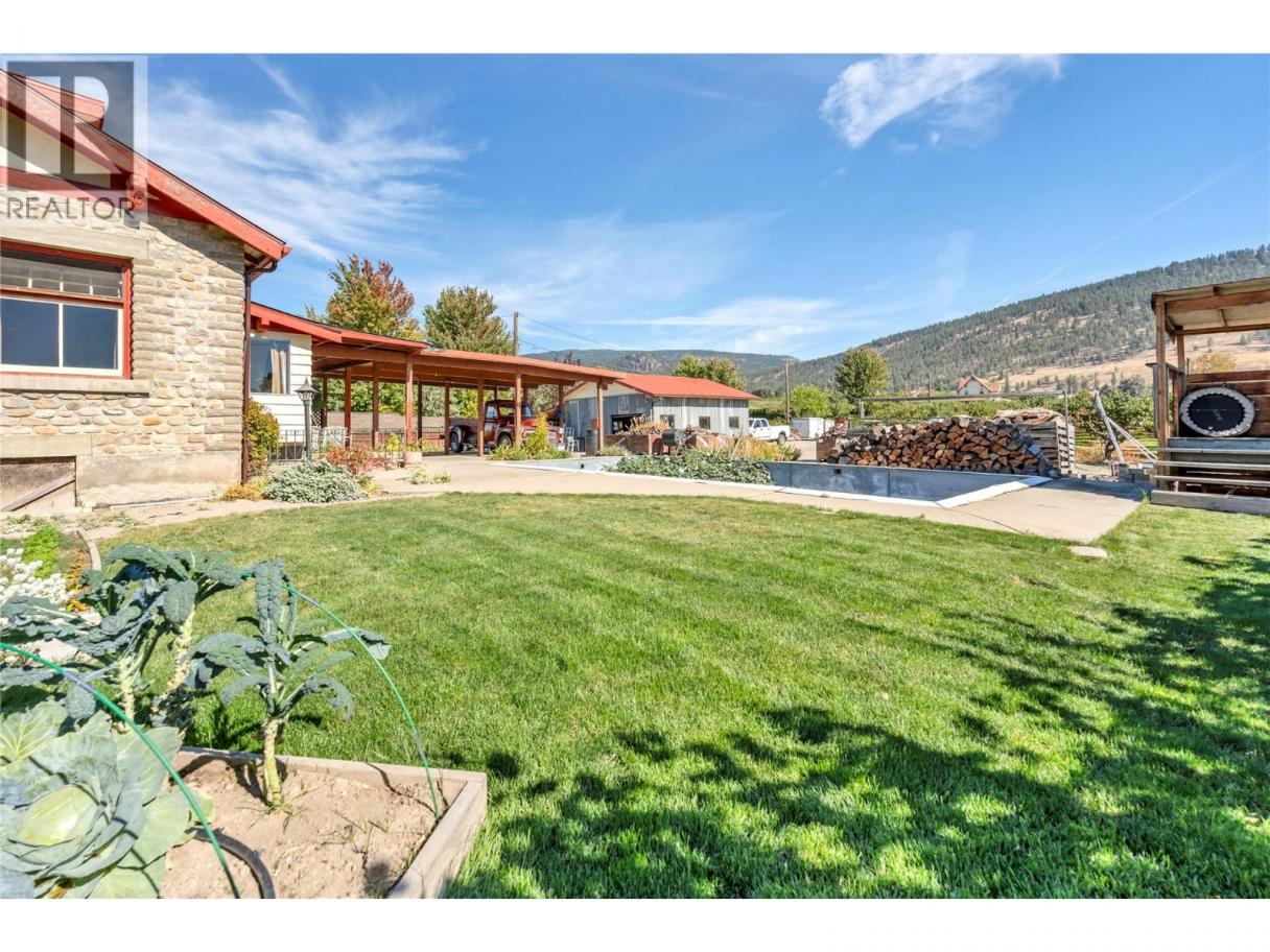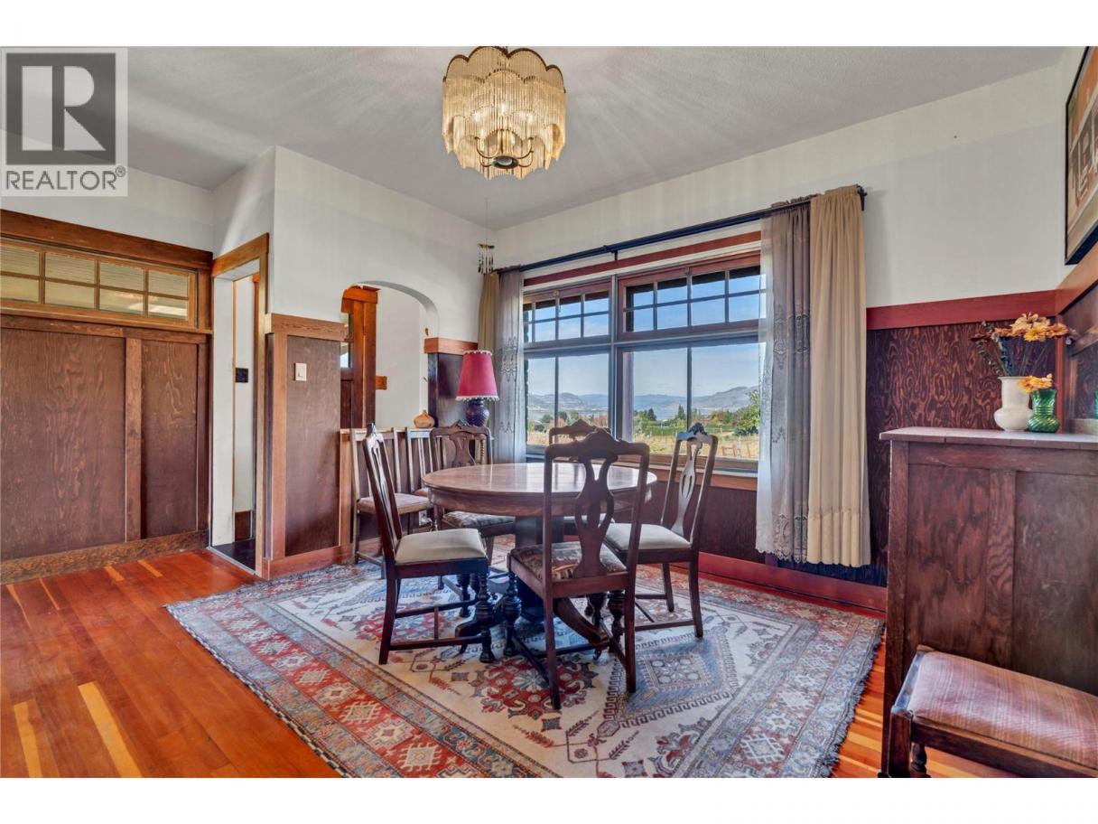 Welcome to 235 Middle Bench Road—where Penticton’s history meets everyday ease. Known as the Atkinson House, this 1920s Arts & Crafts–inspired colonial bungalow was shaped by the land itself: handcrafted stone hauled from Penticton Creek, an open porch with stout stone piers, and garden walls that feel as timeless as the Bench. Step inside and feel the warmth of another era: a cobblestone fireplace for winter evenings, coffered ceilings, and a beautiful built-in sideboard carved from the property’s own walnut tree. The farm-style kitchen flows into dining and living spaces—easy for shared meals and slow mornings. The main level holds the primary bedroom, a second bedroom, and a four-piece bath; upstairs, a lofted (non-conforming) suite captures sweeping views over the orchard to Okanagan Lake and the hills beyond. Once home to one of the region’s earliest orchardists, the property still carries that spirit—minutes to downtown, beaches, and schools, yet immersed in vines, views, and the calm of the East Bench. Continue the orchard utilizing the large shop and garage area, explore agri-tourism, intimate hospitality, or simply settle into a beautiful, storied life on the Bench. This is a rare offering—rich in character, rooted in place, and ready for its next chapter. Contact your Realtor® or the listing representative today to book your private viewing. All measurements approximate and to be verified by the buyer if important. (id:6769)