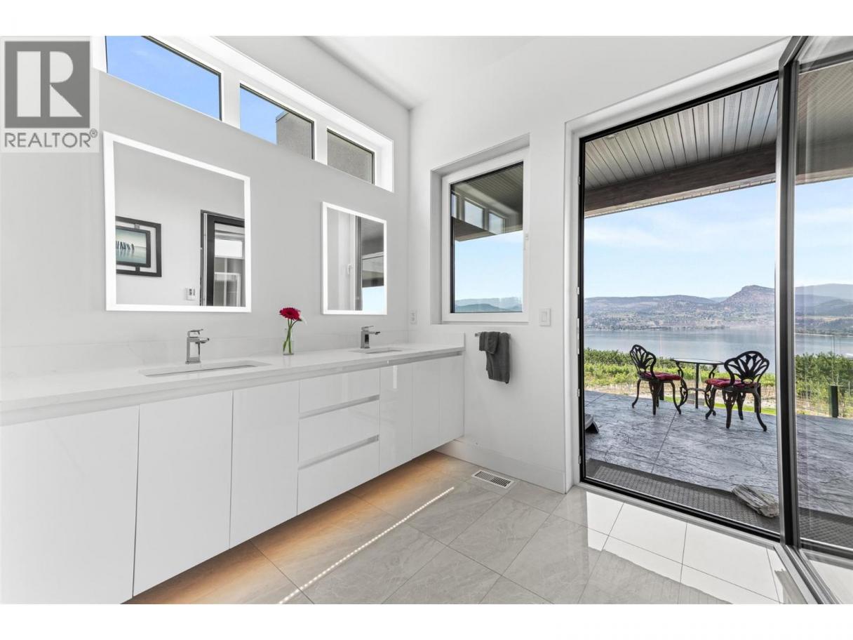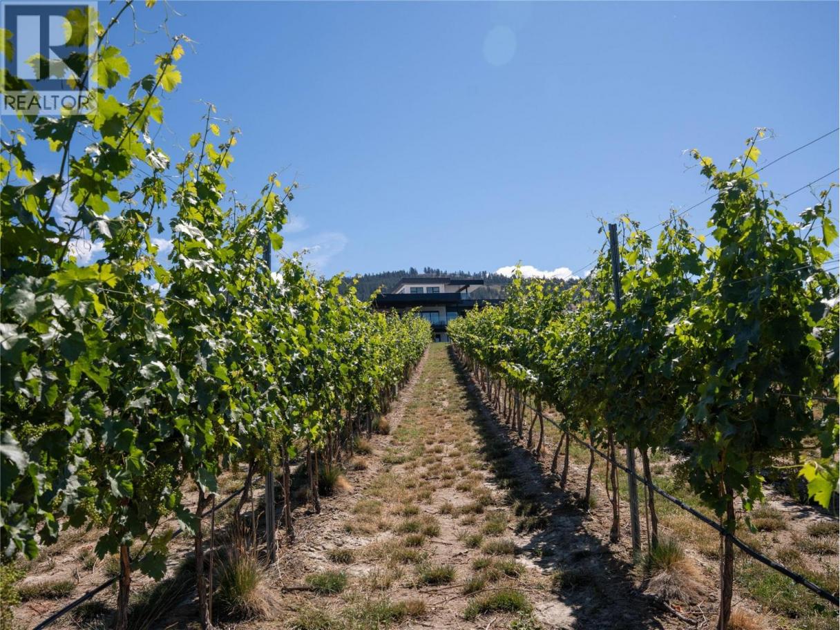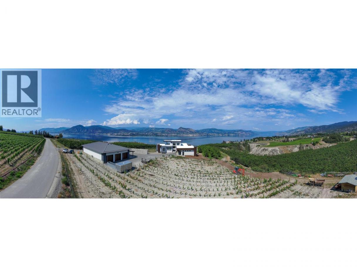 2805 Aikins Loop is a breathtaking 25-acre property offering spectacular lake views from every angle. Planted with thriving grapes and cherries, this estate features a highly efficient, solar-powered home and a massive detached shop. Positioned west-facing towards Okanagan Lake and Summerland, the property is fully irrigated, highly productive, and thoughtfully sloped for optimal drainage. The 4,200 sq. ft., 4-bed/ 4-bath home was meticulously designed for comfort, efficiency, and to maximize the stunning views. Hidden features include a 16.26 KW solar array, gas boiler radiant floor heating for both the home and workshop, a Washlet toilet, upstairs and downstairs laundry, a discreet butler’s pantry, and sleek translucent glass railings inside and out. The completely private pool and BBQ area features a stamped concrete patio, an outdoor shower, green space, and a rough-in for a custom outdoor kitchen built to your specifications. This home boasts four incredible balconies, including a roof deck, hot tub deck, BBQ deck, and the main kitchen deck—each providing breathtaking views. The detached 70’x44’ shop is built for versatility, with 40% featuring heated concrete flooring, ideal for vehicle lifts and toys, while the remaining 60% is designed for farm equipment storage and worker facilities, including a washroom. A covered area on the side of the shop provides a designated space for staff, complete with two natural gas BBQ areas. (Duplicate listing MLS 10365338 Residential) (id:6769)
