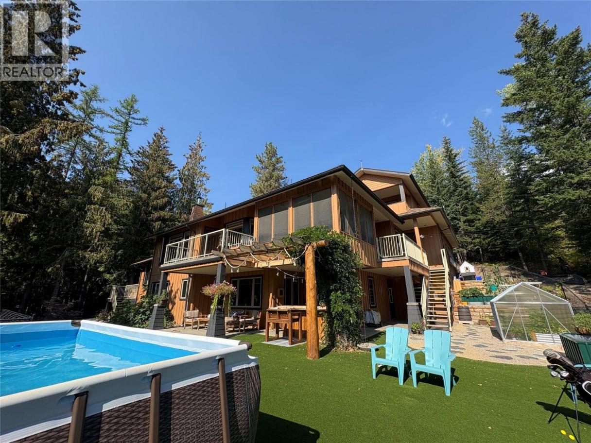 Escape to this exceptional 2.47-acre mountain retreat just 12 minutes from SilverStar. Built by award-winning Bercum Builders, this home blends rustic elegance with modern upgrades. Vaulted ceilings, timber beams, and expansive windows create a warm, light-filled space anchored by a wood-burning fireplace. The gourmet kitchen has been renovated with quartz countertops, new appliances, and a butler’s pantry connecting to a peaceful screened-in lanai. The primary suite features a spa-like ensuite and a private deck with a cedar barrel sauna. The walkout lower level includes two bedrooms, a full bath, family space, and mudroom. Above the garage, a self-contained studio with private entrance, bath, and balcony is ideal for guests or home office. Outdoors, enjoy private hiking trails, a seasonal creek, greenhouses, and an entertainer’s patio with outdoor kitchen and turf terrace. Recent upgrades include new heating system, 2024 septic, fire mitigation, and 50-year roof. Truly a rare lifestyle opportunity. (id:6769)