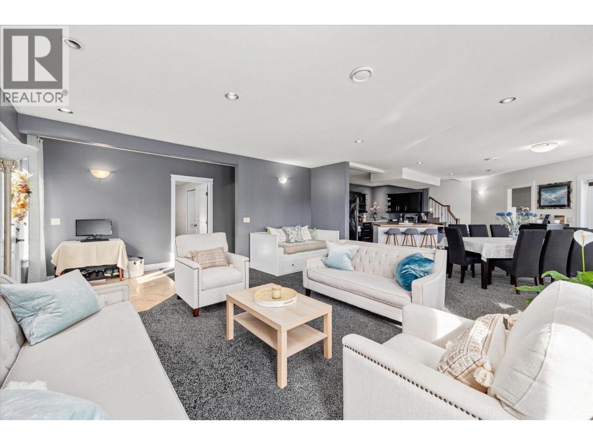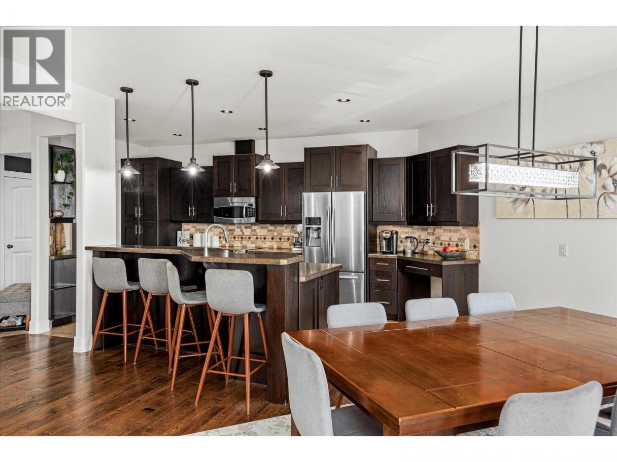 Stunning custom-built walkout rancher with suite potential in the desirable Lakes Community! This beautifully designed home features two full kitchens with stainless steel appliances, ample cabinetry, and large islands, making it perfect for entertaining or comfortably hosting guests and family. The open-concept main floor offers high ceilings, hardwood floors, central air, a gas fireplace, and oversized windows that fill the home with natural light. A large covered deck, accessible from both the living and dining areas, provides excellent space for year-round outdoor enjoyment. The spacious primary bedroom includes a 5-piece ensuite and walk-in closet, along with two additional bedrooms on the main level. Downstairs offers two bedrooms, a generous living and dining area, a separate entrance, a covered patio, and of course, the second fully equipped kitchen. Fully fenced backyard, ample parking, abundant storage, and pride of ownership! Don't miss this opportunity! (id:6769)