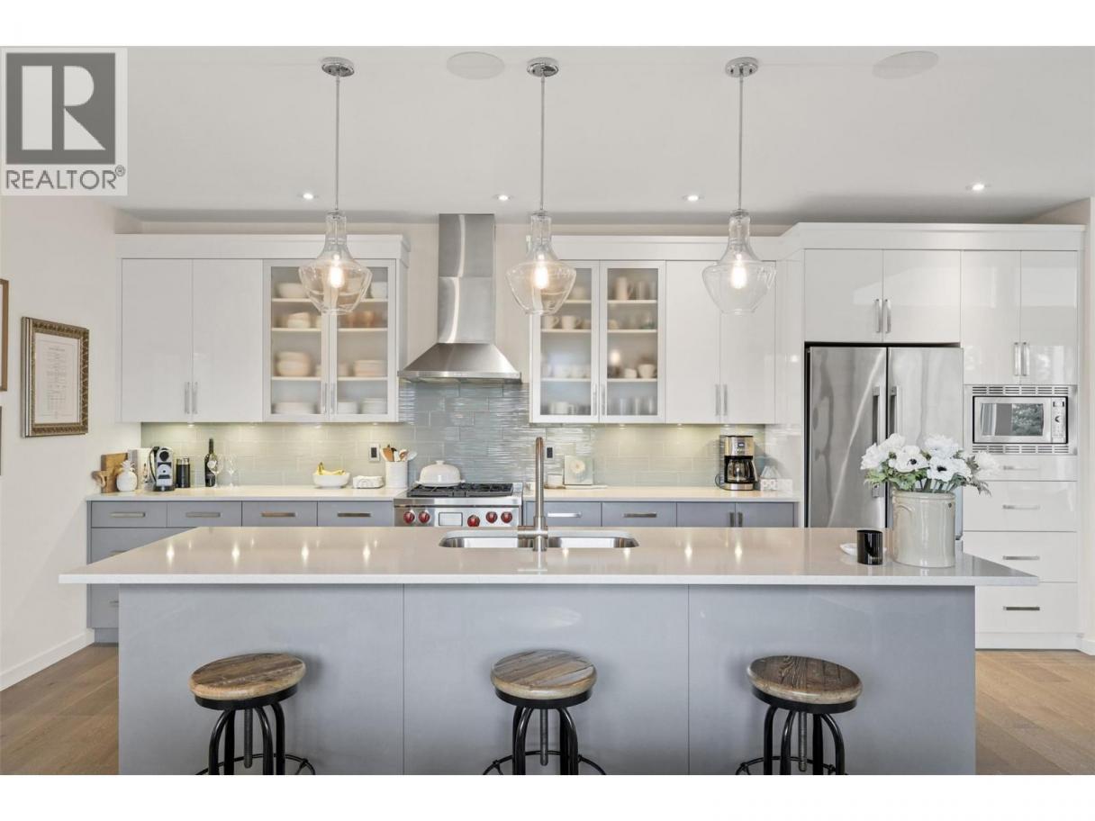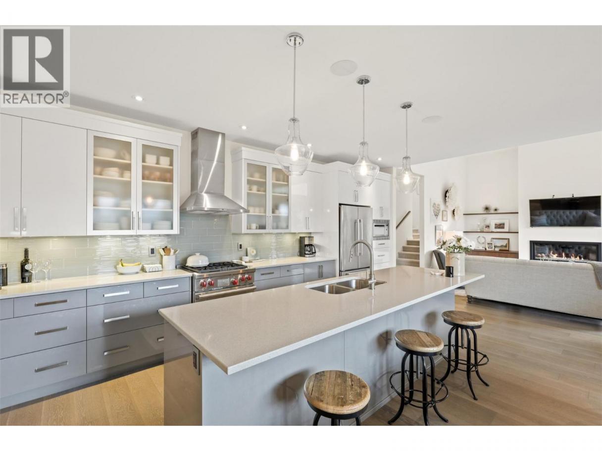Welcome to one of the most beautiful Orabella units, part of Kamloops’ award-winning multi-family project. Designed with care and attention to detail, this residence was customized during pre-construction to create a thoughtful and comfortable layout. Upstairs, you’ll find three bedrooms, including a spacious primary suite with both hillside and city views, a luxurious ensuite, and a full secondary bathroom, perfect for family or guests. The main level showcases custom Excel cabinetry, including additional built-ins in the living room, a Wolf gas range, quartz countertops throughout, a custom tile backsplash, and beautiful Cross Design lighting that enhances the home’s warmth and ambiance. A laundry room off the garage adds everyday convenience, and a spacious office provides the ideal workspace. Every finish reflects pride of ownership and timeless style. Enhancing everyday living is a Control 4 home and sound system, with integrated speakers in the main floor living room, kitchen, primary bedroom, and rooftop patio. Throughout the home, Q. Design Centre window coverings add a refined finishing touch. You’ll also enjoy hot water on demand, undermount sinks on the top two levels, and the serenity of backing onto the quiet Kenna Cartwright hillside. Downstairs, the fully finished basement offers plenty of flexibility with a spacious gym, rec room, fourth bedroom, full bathroom, and generous storage, the perfect mix of function and comfort. (id:6769)