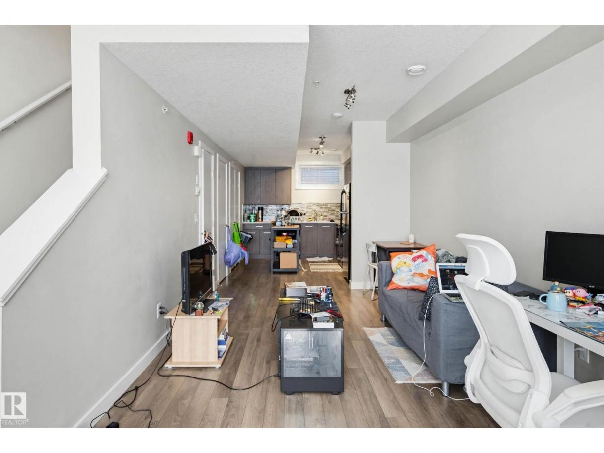Bright and Modern 2 bedroom townhouse located at the vibrant community of Griesbach. 9'H ceiling and laminated flooring on main. Cozy living room with large window and patio door to concrete patio backing onto the walking trail and serene lake. Open kitchen with quartz countertops , mosaic tiled backsplash and lots of cabinets. Upstairs featuring 2 bedrooms, 4 pcs bath and laundry room. Spacious primary bedroom boasts with large windows overlooking the spectacular lake view. Parking stall just at the front. Excellent location. Close to schools, park, bus and shops with easy access to Northgate Mall & T & T supermarket. Quick possession. Ideal starter home or holding property. (id:6769)