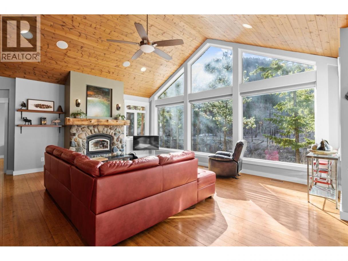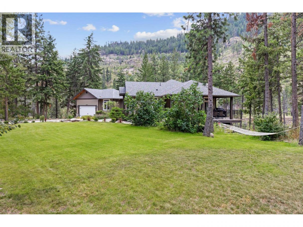 Complete privacy,14 acre property located in Peachland above Trepanier creek. Minutes to all of the amenities of Peachland and West Kelowna, 20 minutes to downtown Kelowna. Featuring a custom built, 5 bdrm rancher, with a lower level 1 bed in law suite(400amp service to the main house). Including 23x40 detached shop with a studio suite attached. BONUS this property includes a 3 Bedroom Modular home with separate 200amp service. MORTGAGE HELPER opportunity while giving everyone privacy. This property features many upgrades and to mention few: 48 double solar panel system installed(21KW system) Live off grid. 2 EV charging stations. New Hot tub. 2 RV Sani dumps. New Kitchen appliances & W/D, repaint of the exterior of the home. Wine room. Rebuilt fireplace.. and so much more! The Upper level is complete with a primary bdrm Ensuite bath, open concept in the kitchen, dining and living area, a 2nd bdrm (or Office), half bath(plumbed to be a full bath), laundry room, boot room, vaulted ceilings, real rock and solid timber features, wood floors, granite countertops, stainless steel appliances, covered deck and patio area with views of the valley and creek. The lower level has a media room, wine room, tons of storage a 3rd bathroom and 2 more full bedrooms. The lower level suite has acoustic sound proofing in the ceiling, 1 bedroom, office area, separate laundry, full bath, private outdoor patio, wet bar(plumbing for a stove)and living room. (id:6769)