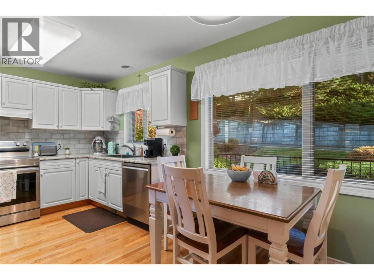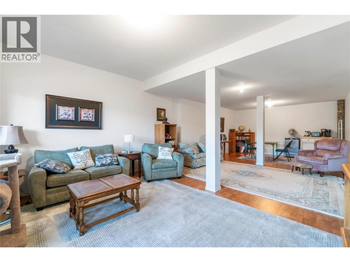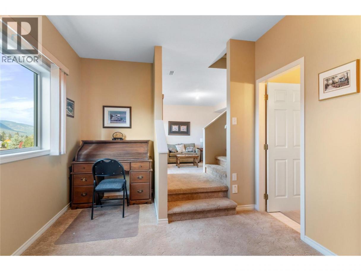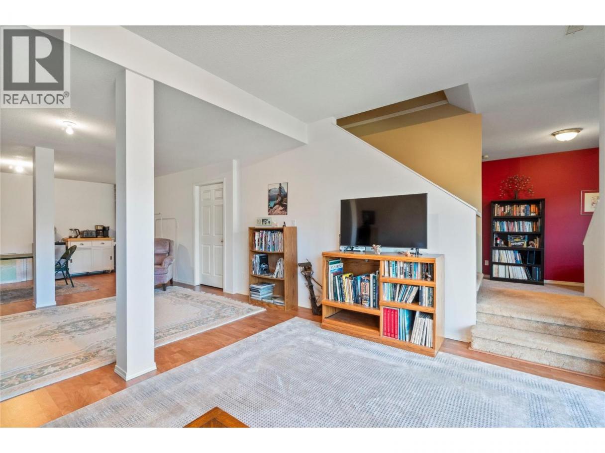 Stunning lake & mountain views from this main floor living townhouse located in desirable Ravens' Croft. 3 bedrooms, 2 bathrooms, large family/recreation room, lots of storage. Double garage with one extra long bay. Recent updates include newer A/C unit, hot water tank & Pex plumbing in 2020, kitchen appliances, countertops, sink & faucet 2023, main floor bathroom vanity, trim and flooring 2024, new carpet in main floor bedrooms in 2023. Imagine waking up to this view every day, it is simply beautiful! Quick possession possible. Realtor deems all information to be correct yet does not guarantee this nor are we liable in any way for any mistakes, errors, or omissions. All measurements are approximate. Buyer to verify all information. Square footage taken from Strata Plan. (id:6769)