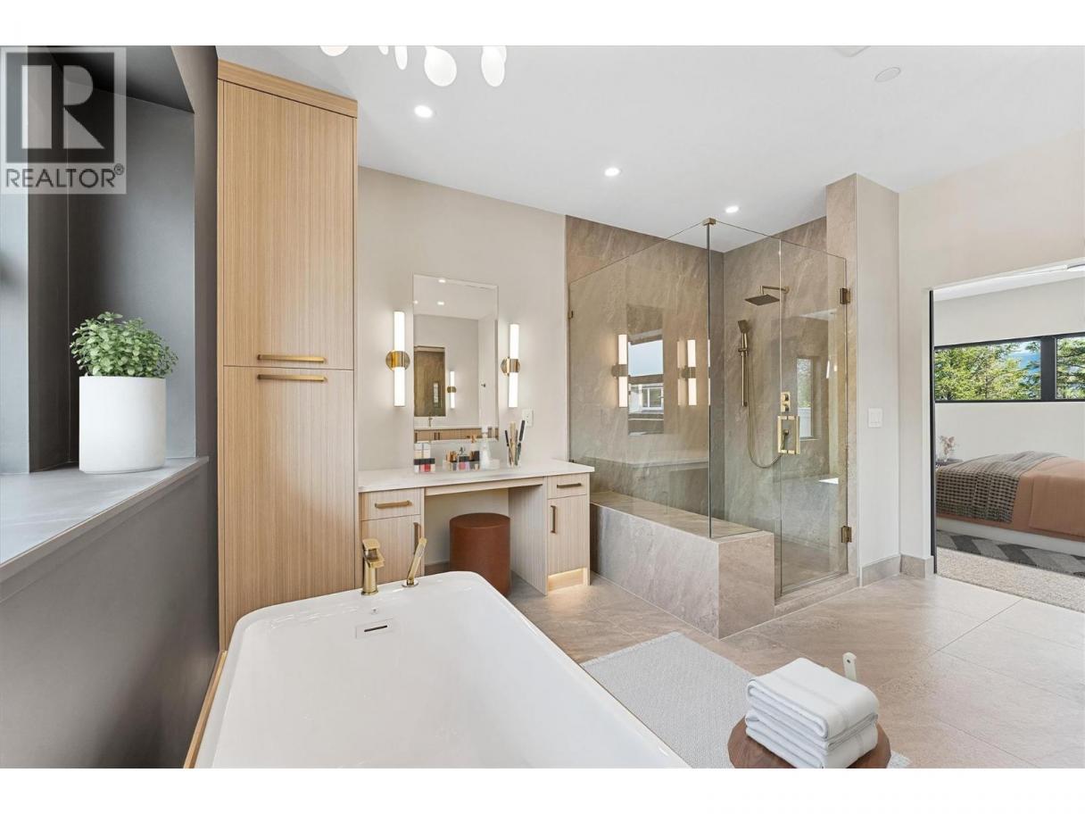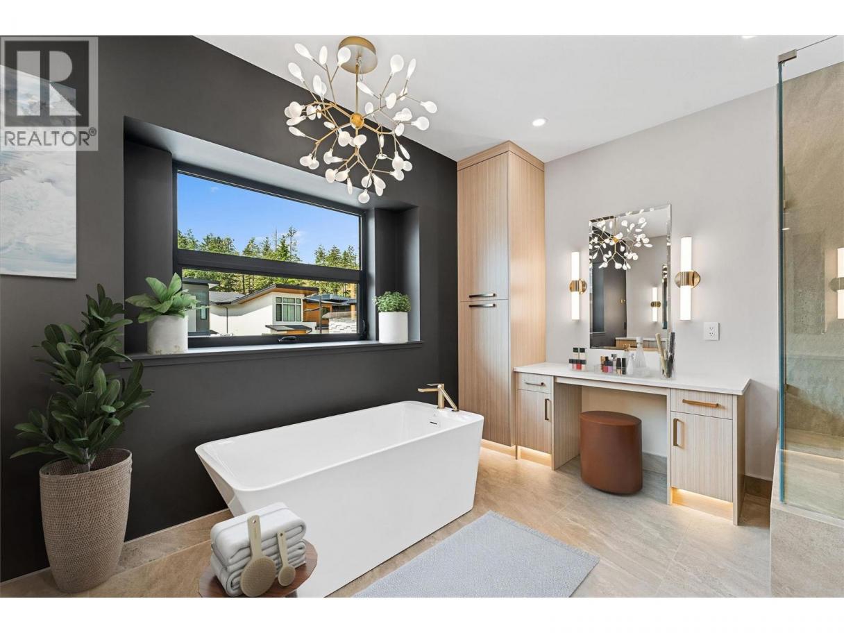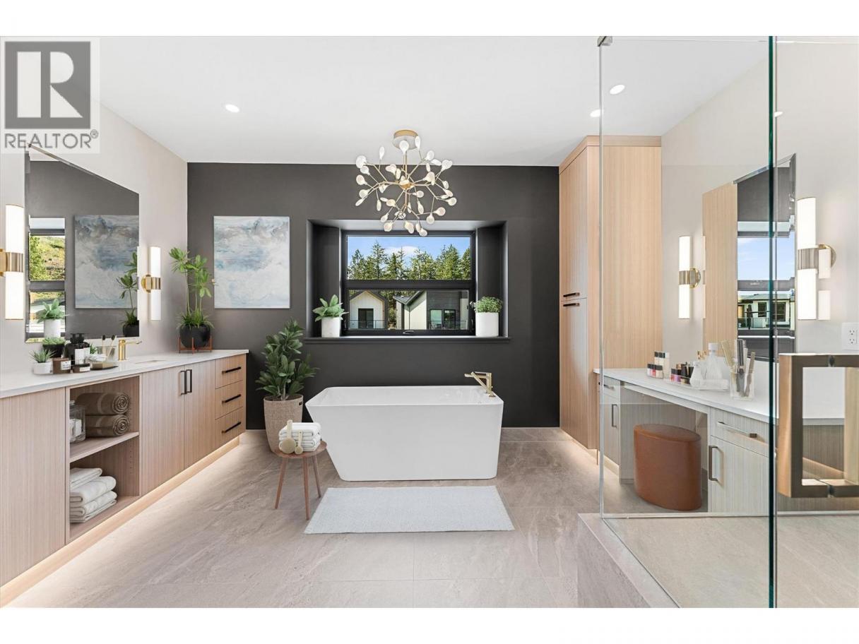 Introducing Your Dream Home in Lakestone and a finalist for best single family home in the Okanagan Housing Awards for 2026 – A Forestside Haven! Discover this stunning new home in Lakestone, where modern luxury meets natural tranquility all inspired and constructed by an award winning home builder. Spanning over 3,800 sq. ft. across three levels, this home backs onto a serene forest and pond loop trail. It features two primary retreats with spa like ensuites (heated floors in the upper ensuite). One is on the main floor and another upstairs with a rooftop deck and coffee loft. The main floor boasts a chef’s kitchen with an oversized Driftwood quartz island, Frigidaire Gallery appliances, a Dacor 5-burner gas cooktop, and a Butler’s pantry. The lower level is ideal for extended family stays, offering a kitchenette, 2 more bedrooms and full bathroom, fireplace, and private living space. With three patio areas, dual beverage fridges, Insinkerator (instant hot/cold) for both butler pantry and coffee bar, two laundry pairs, a heated double-car garage, hot water on demand, plenty of storage and countless quality upgrades, this home is the perfect blend of elegance and convenience. Life at Lakestone includes 2 multi million dollar amenities centres with pools, hot tubs, gyms along with access the beach, multi-sport courts including pickleball and over 25km of hiking and nature trails to enjoy. Price is + GST (5%). Schedule your private viewing today! (id:6769)