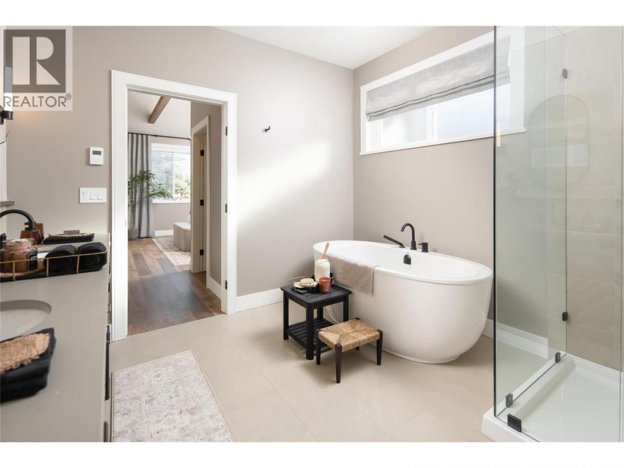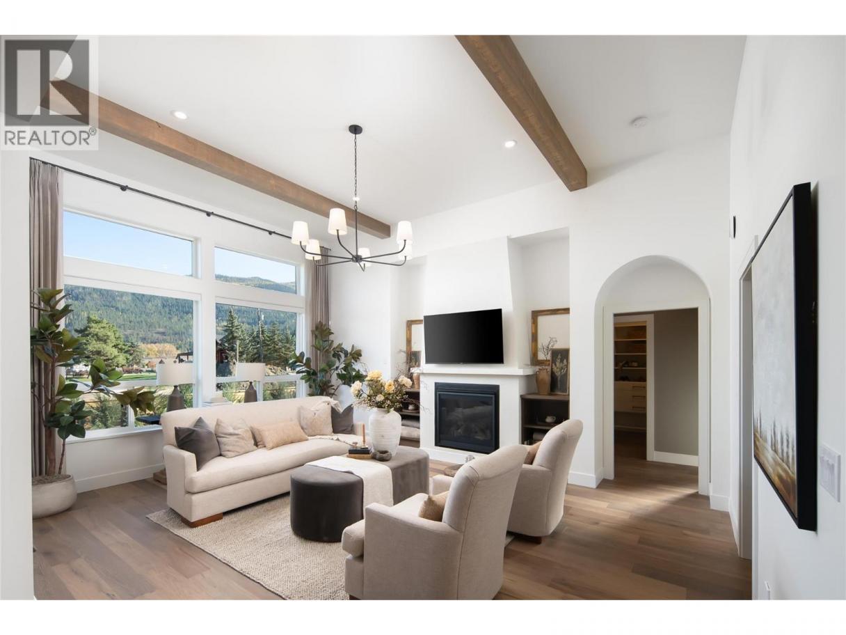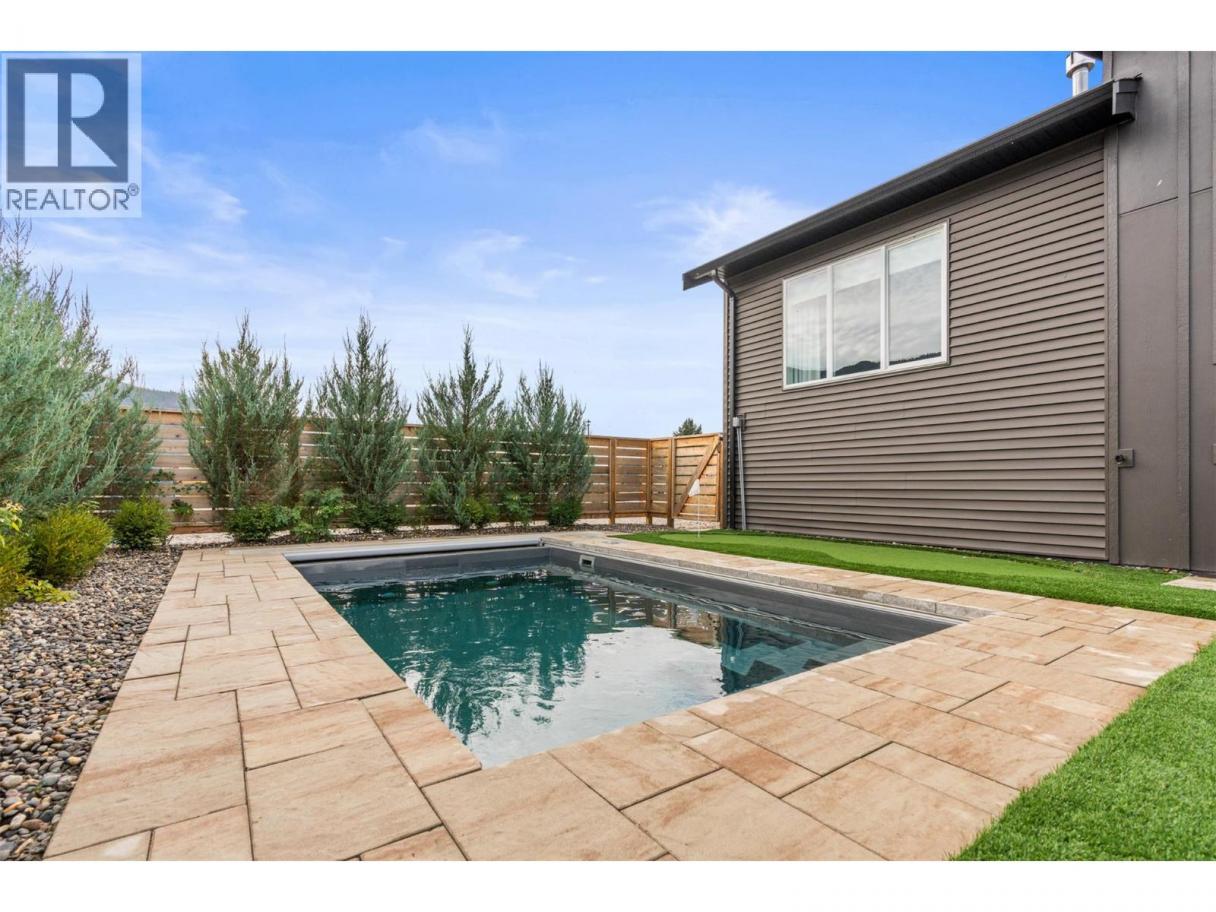 Former SHOWHOME with over $400,000 in upgrades, this Wesmont Homes masterpiece in Armstrong’s growing Rosemont subdivision embodies moody luxury and bold design with soaring ceilings, a striking front office with dark, dramatic walls, and a great room accented by elegant wood beams. The entertainer’s kitchen is both stunning and functional, showcasing custom built-ins, a wine fridge, cabinetry in the nook area, a coffee and wine bar, Fisher & Paykel fridge, and 36” gas range with pot filler—perfect for hosting or everyday living. The primary suite offers a serene retreat with a custom headboard wall, heated tile flooring in the ensuite, and upgraded shelving in the walk-in closet. The finished basement continues the upscale design, with a spacious entertainment area anchored by a bar with tile flooring, bar fridge, and sink, plus two additional bedrooms and a full bath with heated tile—ideal for family, guests, or weekend gatherings. Step outside to your backyard oasis featuring an in-ground 10x16’ pool, roughed-in space for a future hot tub, built-in fire pit, patio, artificial turf, and putting green—completely maintenance-free. Additional highlights include a custom laundry/mud room with cabinetry, solar panels (2.04kW, 6-panel system), and thoughtfully designed spaces that blend texture, contrast, and timeless sophistication. This is modern luxury at its finest—claim your place among Armstrong’s most coveted homes and make this statement property your own. (id:6769)