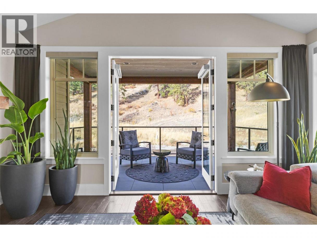 This lovely semi-detached top-floor home offers a comfortable living space in an inviting open-concept design. Freshly painted throughout, it feels bright and refreshed from the moment you step inside. Panoramic windows fill the home with natural light and showcase the gorgeous natural backdrop, while vaulted ceilings add a sense of spaciousness. The stylish kitchen features ample cabinetry, a large island, granite countertops, stainless steel appliances including a gas range, and a pantry. The luxurious primary suite boasts stunning views of Pincushion Mountain and a spa-inspired ensuite with a soaker tub, tile shower, and double vanity. Both bedrooms feature new carpet for a cozy, updated feel. Step outside to a sprawling wrap-around covered deck with pavers—ideal for dining al fresco or relaxing in the fresh air. Enjoy year-round comfort with geothermal heating and cooling (included in the strata fee), complemented by a cozy gas fireplace. Private setting with no home behind and breathtaking views. Single garage with private driveway. Pet friendly—up to two pets allowed. Minutes to Peachland’s waterfront, coffee shops, restaurants, lakeside boardwalk, and endless hiking trails right at your doorstep. Situated next to an approved 9-hole executive golf course—The Trails offers the best of Okanagan living! (id:6769)