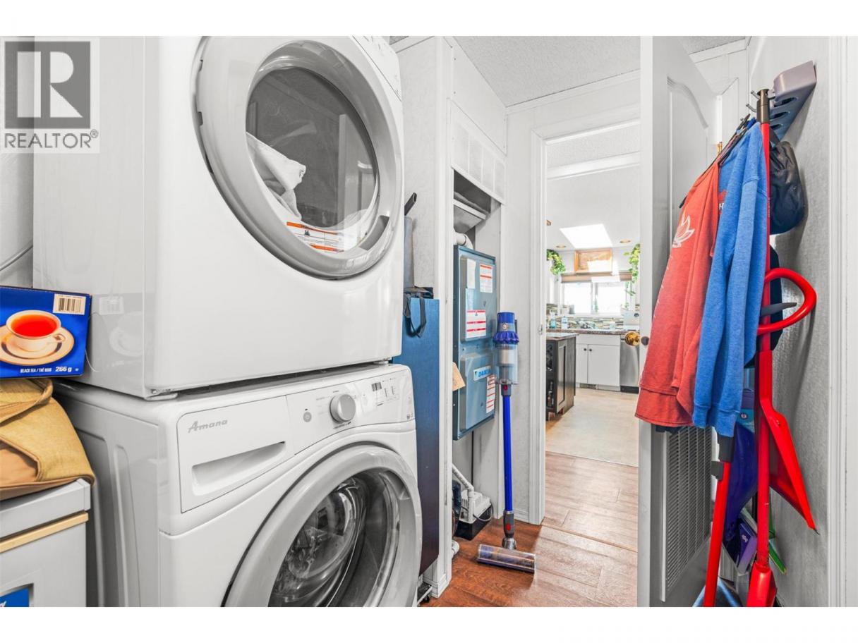 Bright & Stylish Doublewide in a Prime Location! Welcome to this beautifully maintained 2-bedroom, 1.5-bath doublewide in the family section of Lakeway Mobile Home Park — perfectly situated near everything Coldstream has to offer! Step inside to a bright, inviting layout featuring an updated kitchen with new stainless steel appliances, spacious bedrooms, and abundant natural light throughout. Relax and unwind on the covered deck, enjoy the fenced private backyard with lovely views, and soak up the Okanagan lifestyle. With public transit right at the park entrance and Kal Beach, the Rail Trail, Middleton Mountain hiking trails, shopping, and dining all within walking distance, this home delivers both comfort and convenience. Move-in ready, stylishly updated, and perfectly located — this one checks all the boxes! (id:6769)