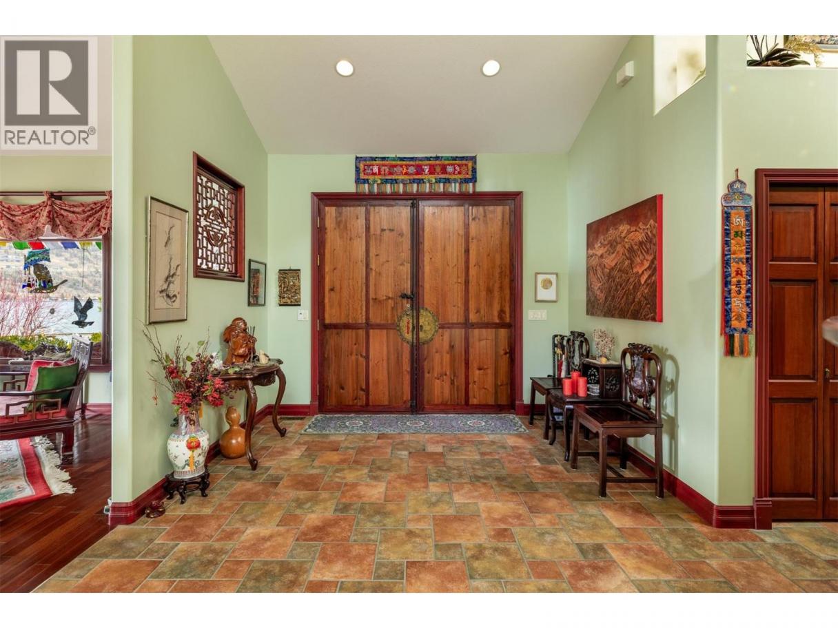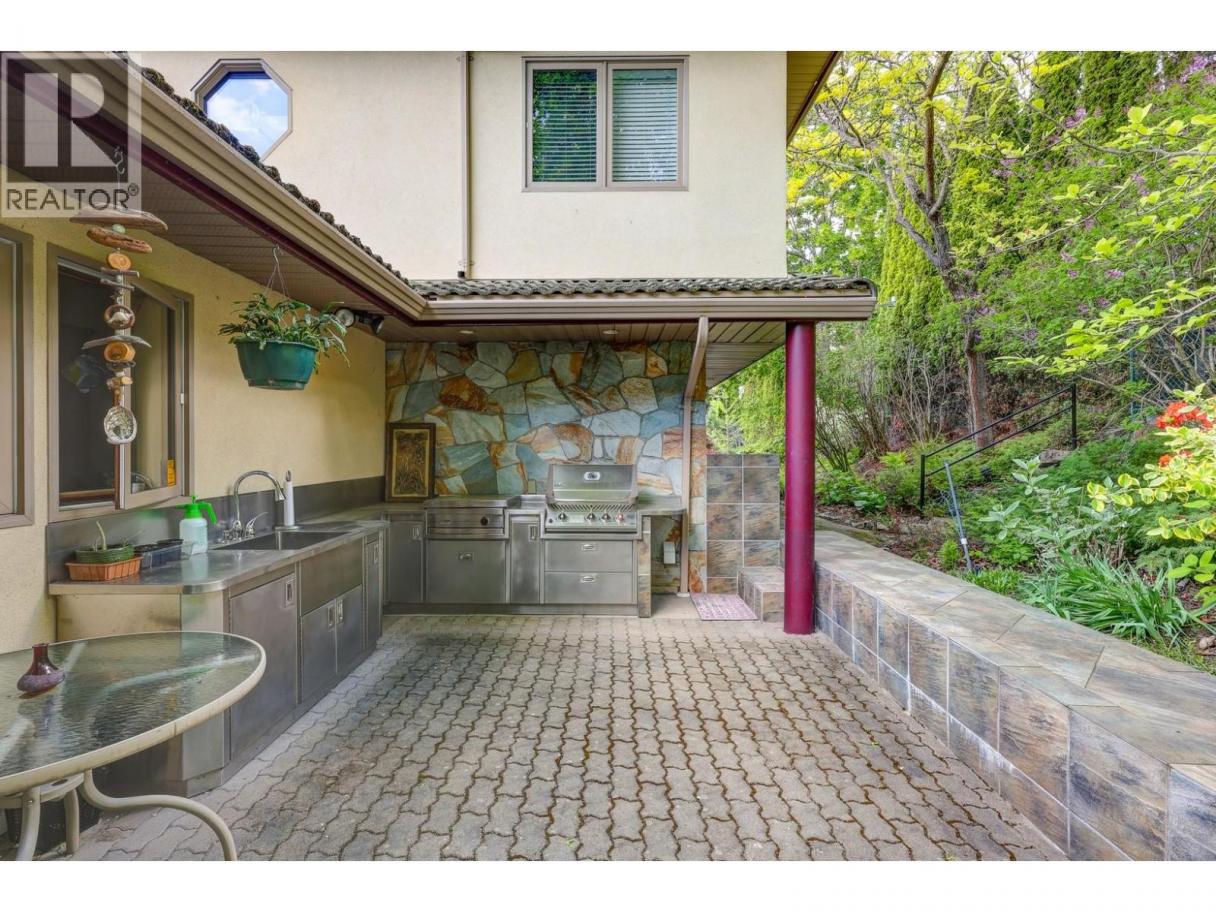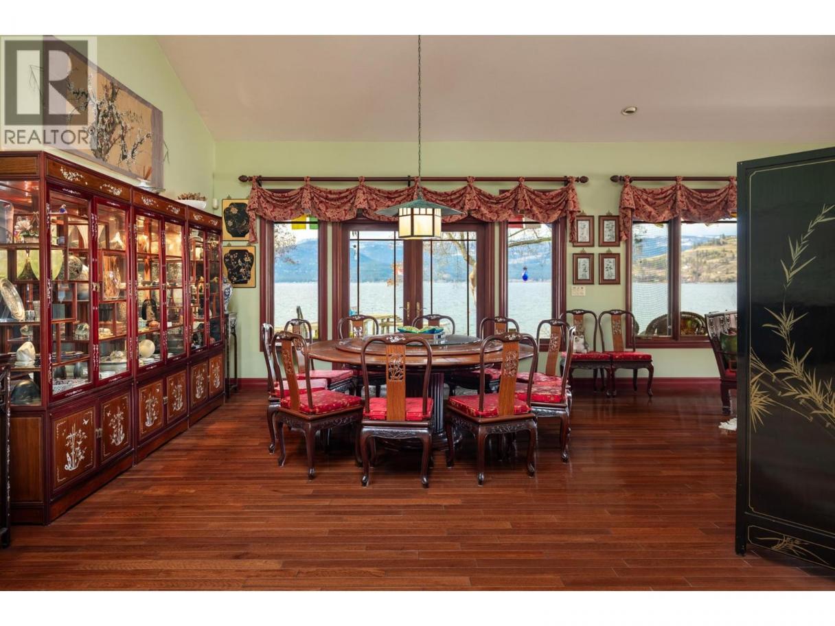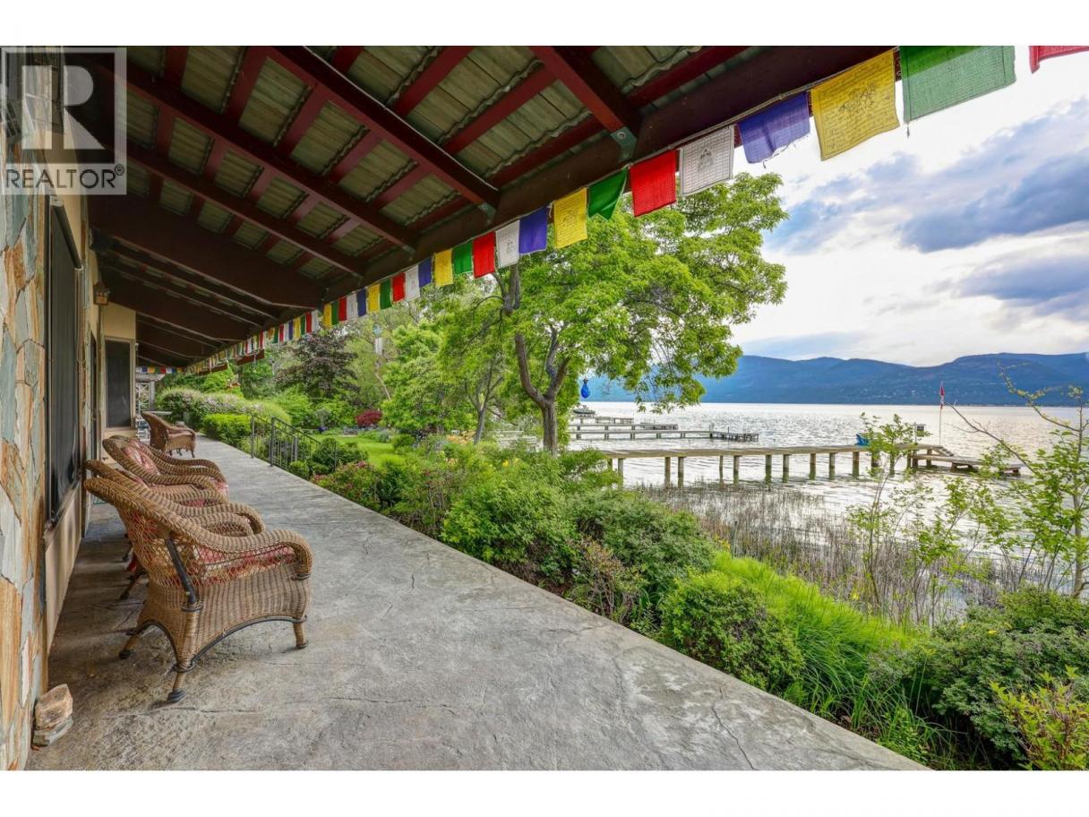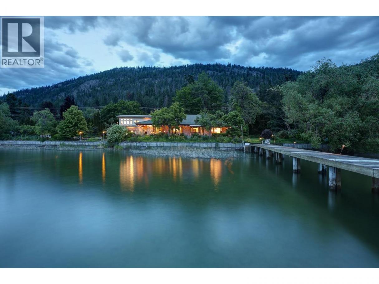 A rare opportunity to own a custom gated waterfront estate on 0.70 acres of Okanagan Lake shoreline. Offering over 3,900 sq. ft. of living space and 270 ft lake frontage. This exceptional 4-bed, 4-bath residence is designed for seamless indoor-outdoor living, breathtaking views, and absolute privacy. Inspired by Feng Shui design principles, balance and harmony flow through every space. As you enter the home, expansive lake views draw you into the main level. The living room, formal dining room, family room, and primary suite are all perfectly positioned to maximize the stunning waterfront setting. High18-ft ceilings with skylights flood the space with natural light, while a gas fireplace adds warmth and sophistication. The gourmet kitchen is a chef’s dream, boasting custom Brazilian granite, premium stainless-steel appliances—including a Viking commercial-grade range, dual KitchenAid wall ovens, and an Ultraline gas cooktop—and a spacious breakfast nook leading to a sunlit solarium. An outdoor kitchen with a sink, BBQ, and gas wok cooktop makes al fresco dining effortless. The main-level primary suite is a true retreat, featuring a luxurious 6-piece ensuite and a walk-in closet. Upstairs, 2 additional beds, 2 baths, and a flexible space offer versatility for a home office or guest quarters. This ultra-private estate is framed by 100 mature cedars. Private dock at the water’s edge for taking advantage of lakefront living. (id:6769)