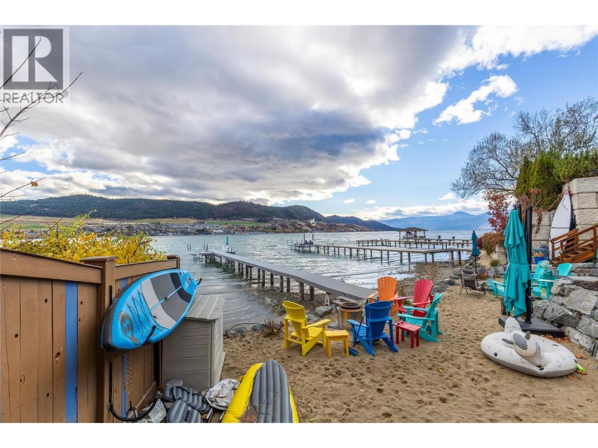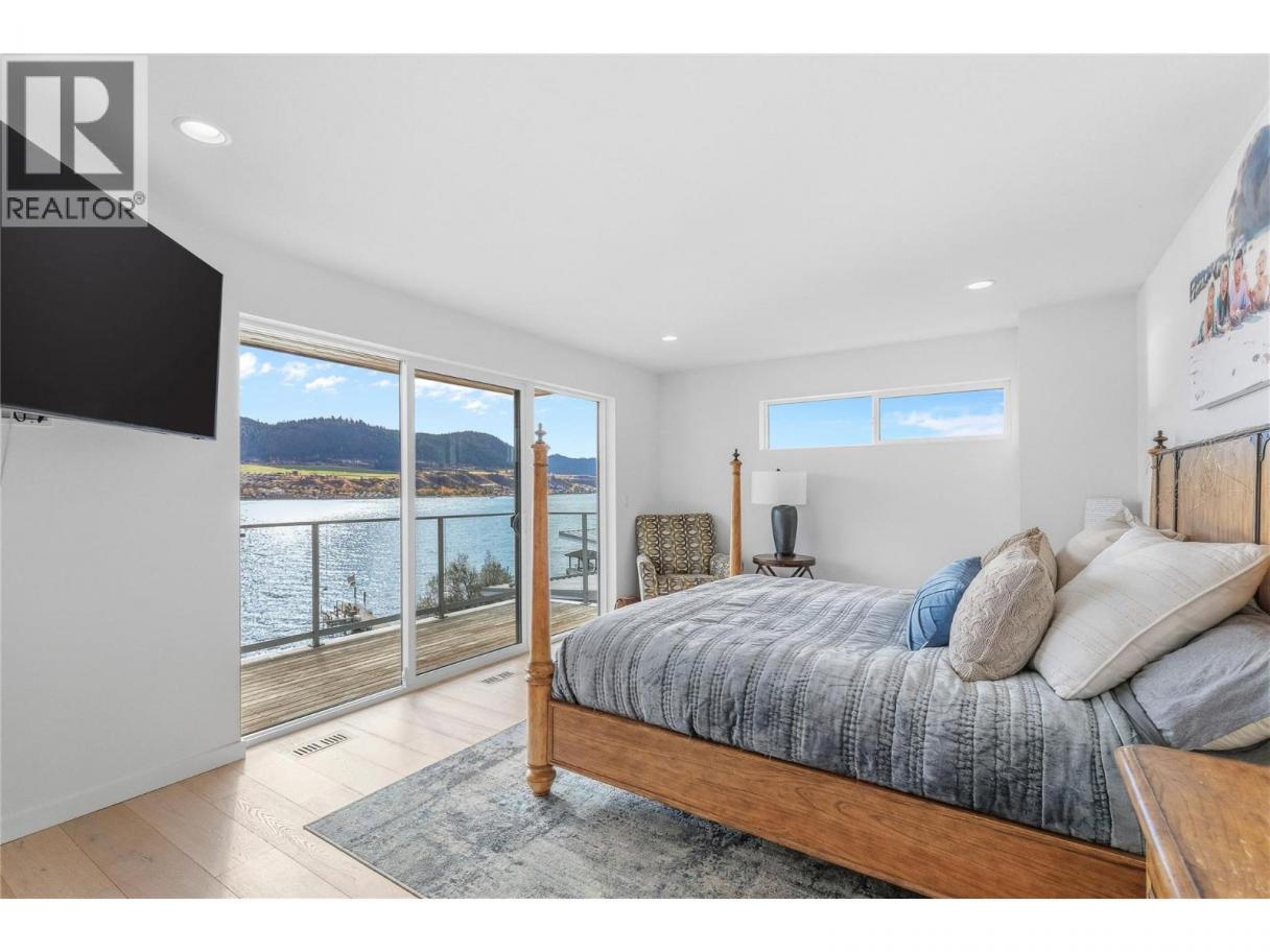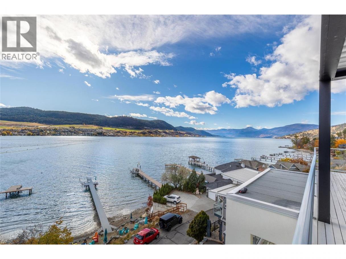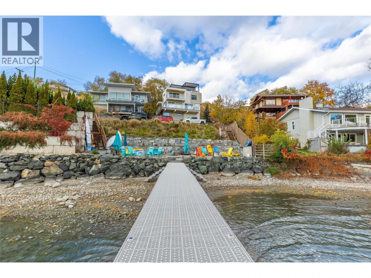 Stunning contemporary home on Okanagan Lake! Architecturally designed by MQN and built by Richbuilt Homes, this 4 bedroom, 3.5 bath home has quality finishings from top to bottom. An elevator provides easy access to all 4 levels, including a spacious rooftop patio with an outdoor kitchen, hot tub and gorgeous views of the lake. Inside, the home is bright and open, with tall windows for an abundance of natural light and enjoyment of the views. The property features private boat lift, shared water frontage and dock with the adjacent property. Double garage. Extensive retaining systems and landscaping. (id:6769)
