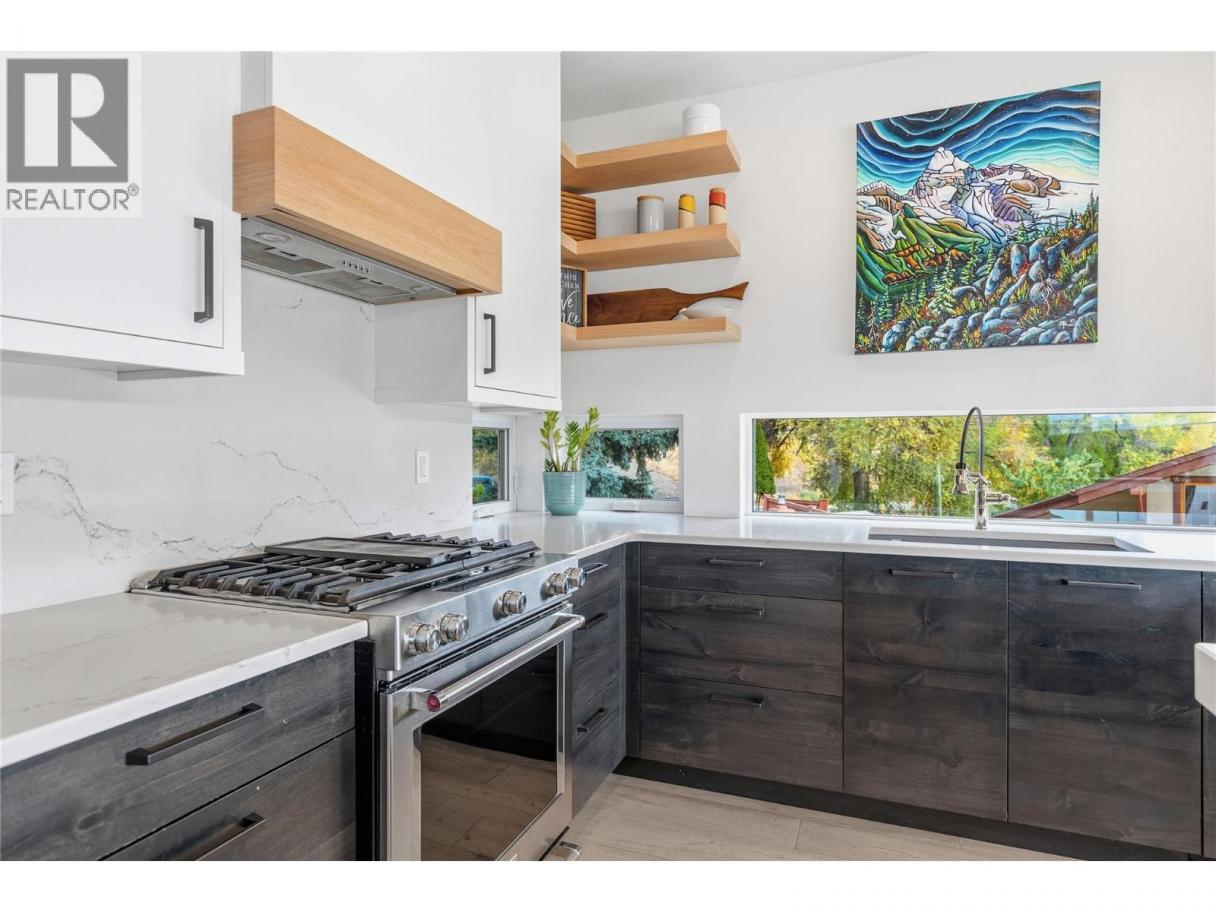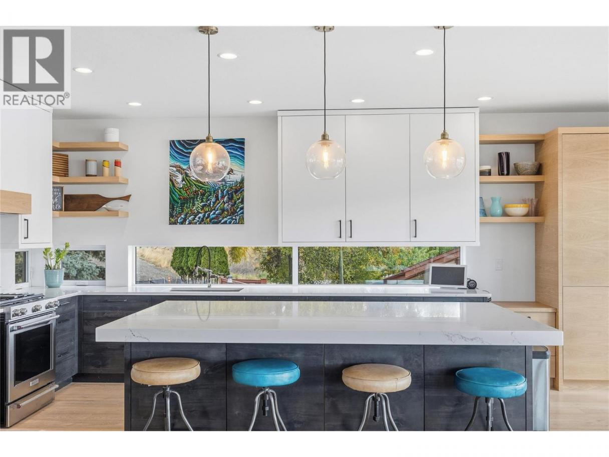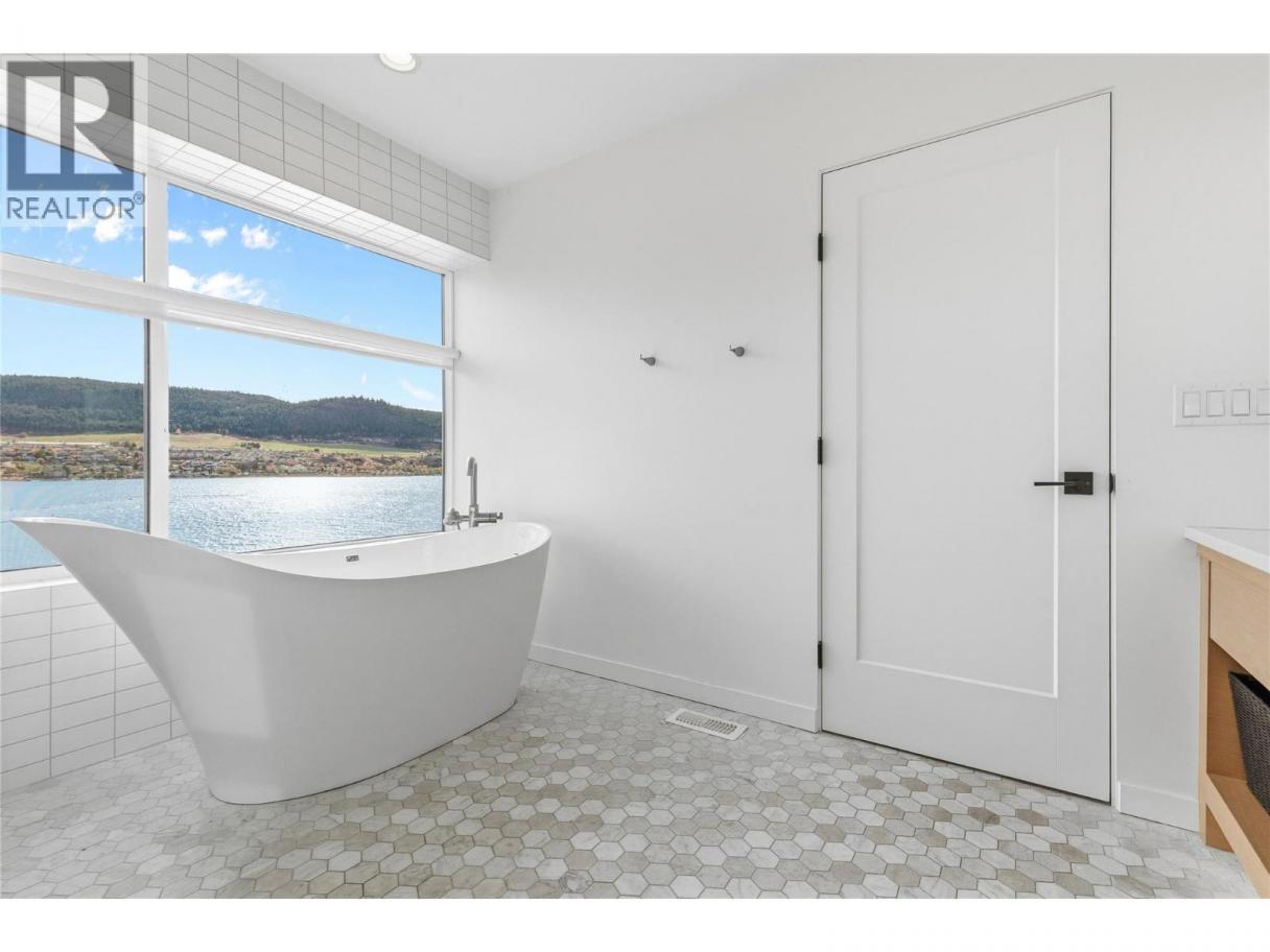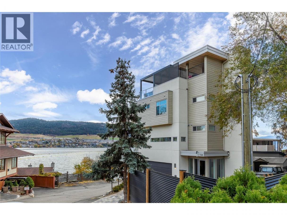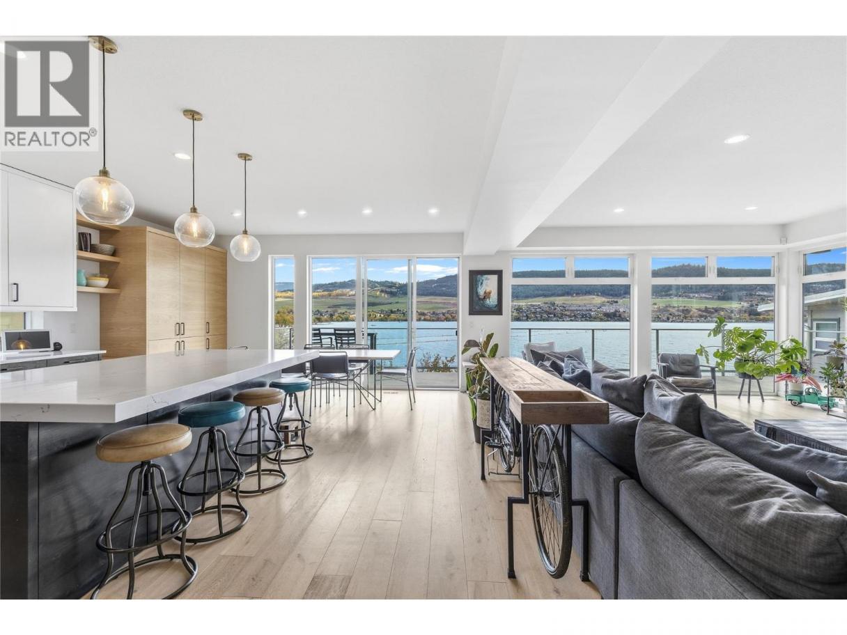 Stunning contemporary home on Okanagan Lake! Architecturally designed by MQN and built by Richbuilt Homes, this 4 bedroom, 3.5 bath home has quality finishings from top to bottom. An elevator provides easy access to all 4 levels, including a spacious rooftop patio with an outdoor kitchen, hot tub and gorgeous views of the lake. Inside, the home is bright and open, with tall windows for an abundance of natural light and enjoyment of the views. The property features private boat lift, shared water frontage and dock with the adjacent property. Double garage. Extensive retaining systems and landscaping. (id:6769)