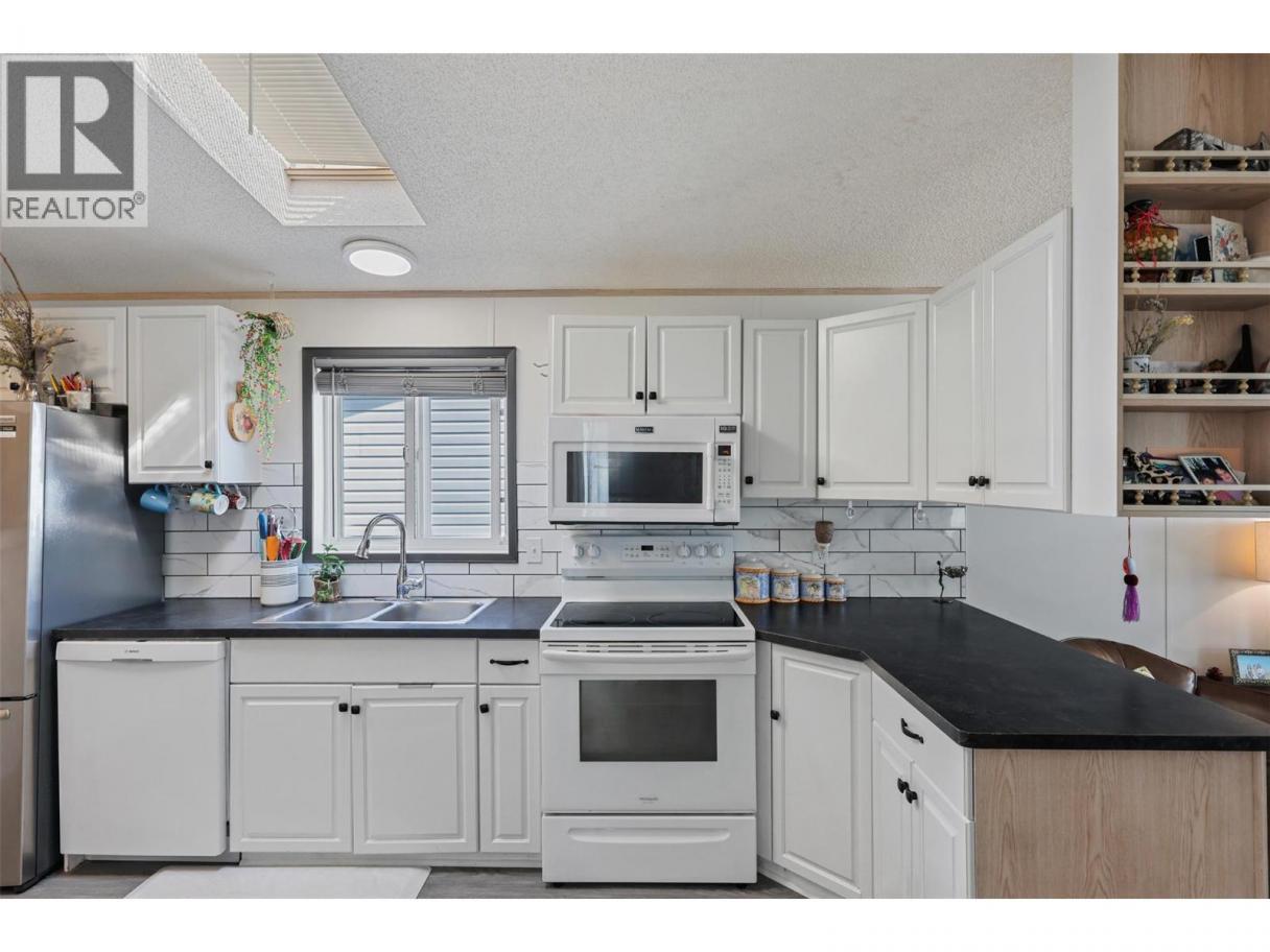 Perfect for first-time buyers, downsizers, or families alike, this home offers the rare opportunity to own both your land and home in the friendly community of Aberdeen Glen Village. Inside, you’ll find 2 bedrooms, including a spacious primary bedroom complete with a walk-in closet and 4-piece ensuite. A second spacious bedroom and an additional full bathroom adding convenience for guests or family. The kitchen features updated counters and backsplash and opens to a bright, welcoming living room. A dedicated laundry room and fully enclosed mudroom provide plenty of storage and year-round functionality. Outside, enjoy 2 storage sheds, ample parking, an RV plug, and an additional RV parking area within the complex. Recent updates include a newer hot water tank and furnace, offering comfort and peace of mind. With a low bareland strata fee of just $141.39 per month and pet-friendly bylaws (with restrictions), this community is as practical as it is welcoming. Enjoy nearby biking and hiking trails, plus you’re just a 5-minute drive to Aberdeen Mall, restaurants, and shopping. All measurements are approximate and should be verified by buyers if deemed important. (id:6769)