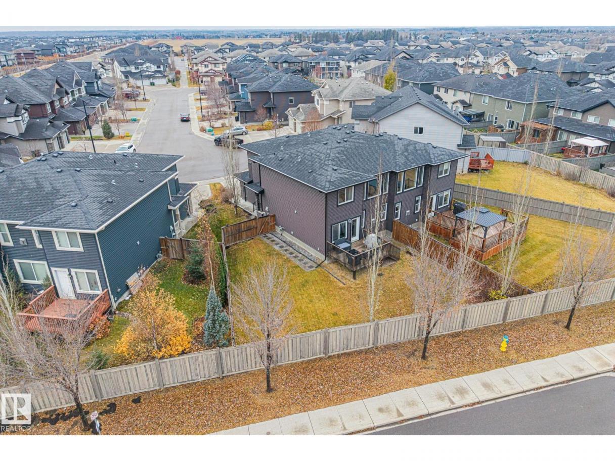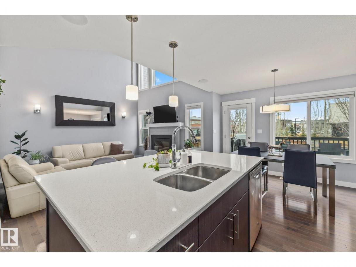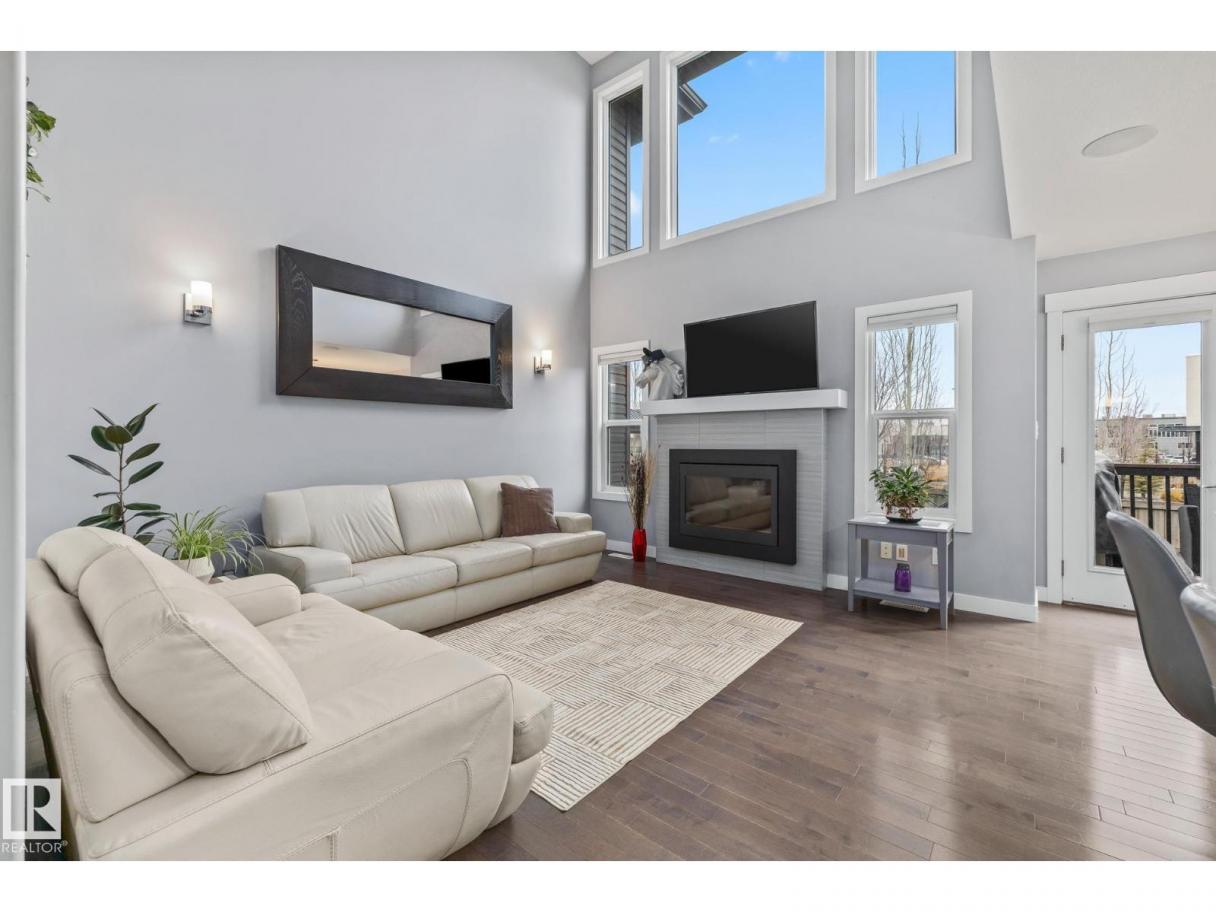 Rarely do you come across a half duplex with an open-to-below concept, making it feel more open and spacious. This fully upgraded Dolce Vita home is located in a quiet cul de sac in the heart of Windermere, which is surrounded by amenities, and even has an upgraded adjoining wall with extra insulation to minimize noise travel. The main floor welcomes you with a large entryway that leads into the cozy living room with soaring 18ft ceilings, a gas fireplace, built-in speakers, and large windows that allow in plenty of sunshine. The kitchen boasts a large island w/ seating, quartz countertops, stainless steel appliances, a gas stove, a walk-in pantry, a comfy dining area, and a central vac kick plate. Upstairs hosts the large primary bedroom with a walkthrough ensuite, featuring dual sinks, and a spacious walk-in closet. Upstairs also has 2 more bedrooms, a 4pc bathroom w/ built-in shelving, and a laundry room for added convenience. The basement is roughed-in and awaits your final touch. Welcome home! (id:6769)
