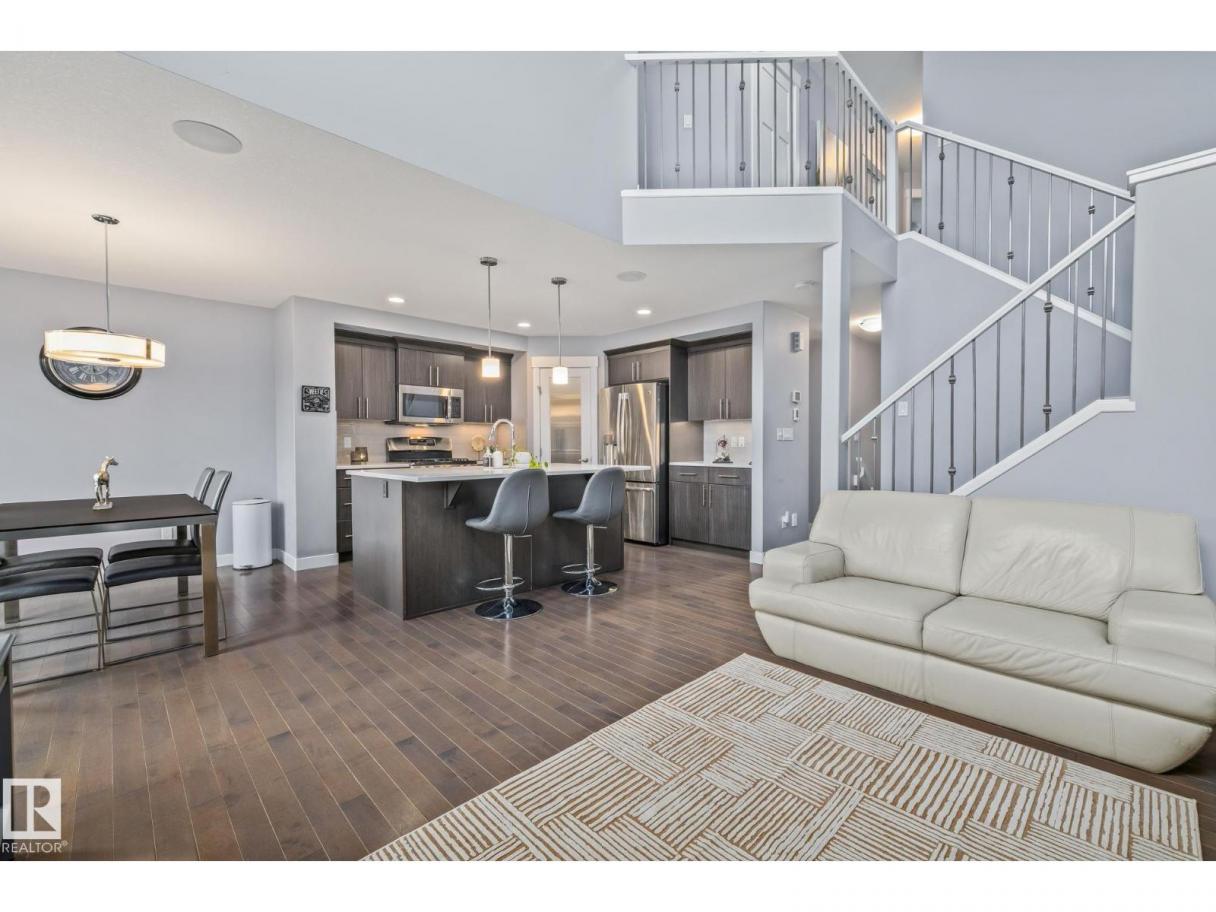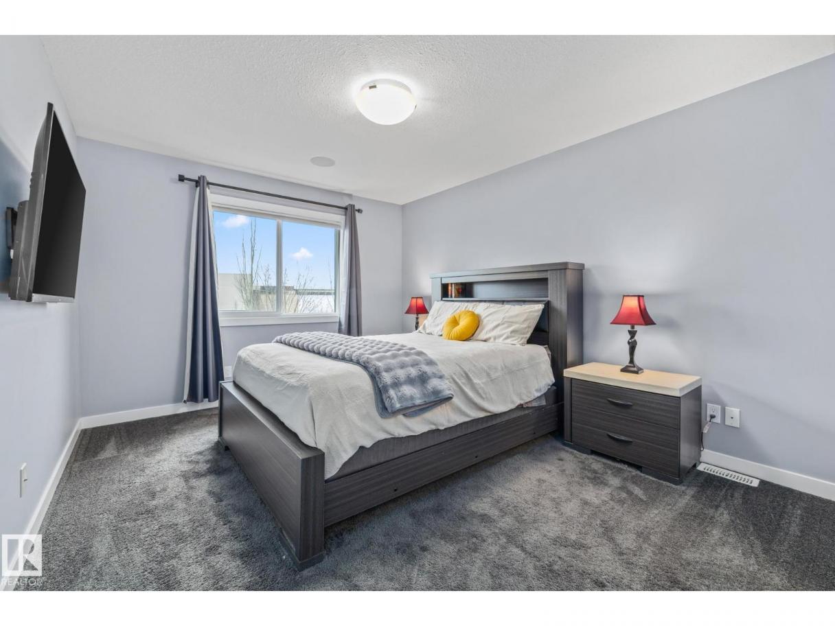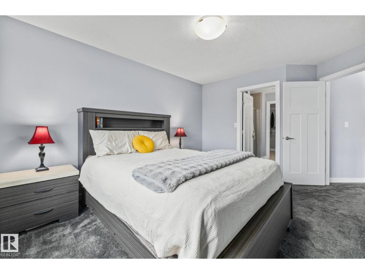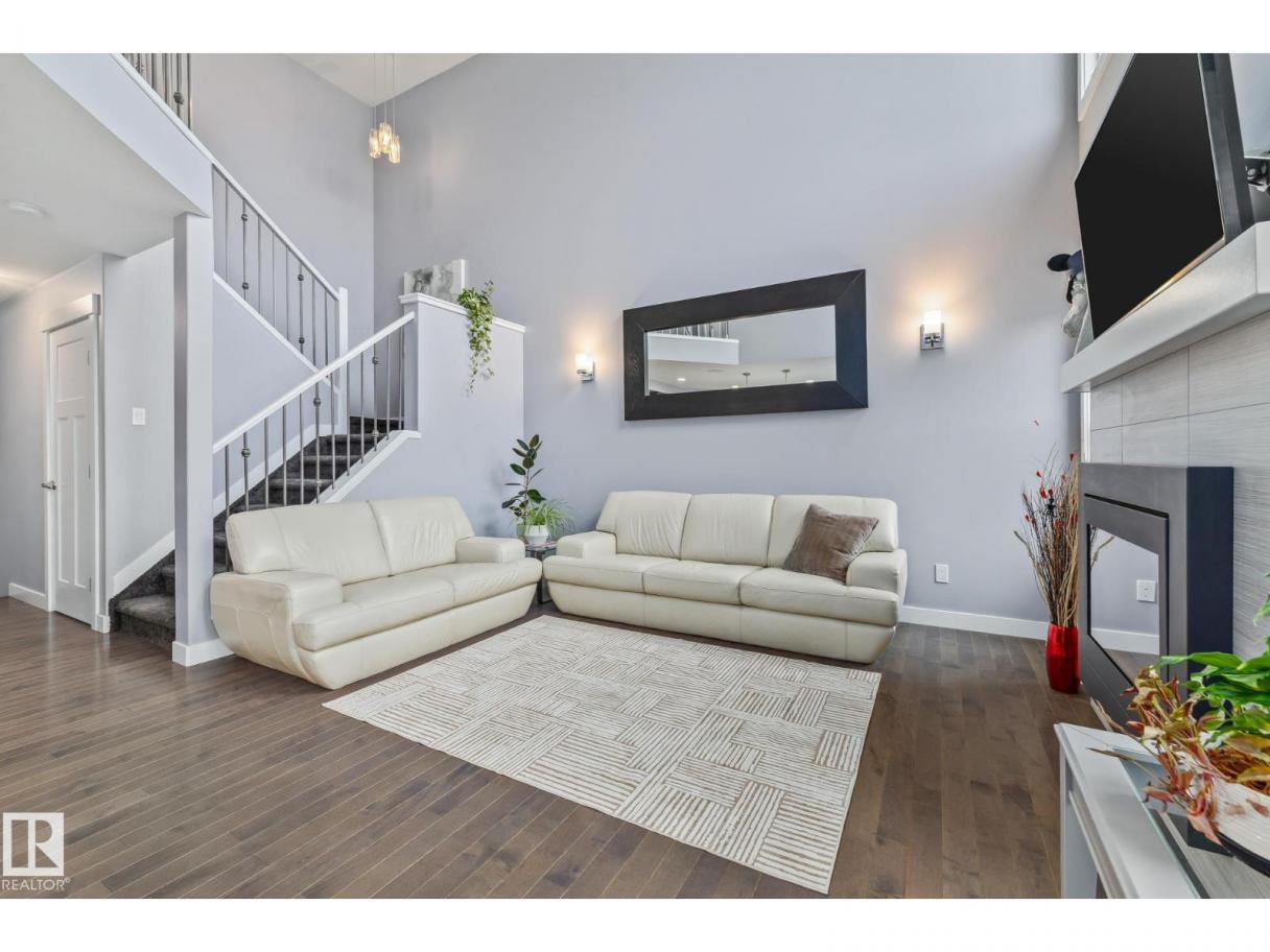 Rarely do you come across a half duplex with an open-to-below concept, making it feel more open and spacious. This fully upgraded Dolce Vita home is located in a quiet cul de sac in the heart of Windermere, which is surrounded by amenities, and even has an upgraded adjoining wall with extra insulation to minimize noise travel. The main floor welcomes you with a large entryway that leads into the cozy living room with soaring 18ft ceilings, a gas fireplace, built-in speakers, and large windows that allow in plenty of sunshine. The kitchen boasts a large island w/ seating, quartz countertops, stainless steel appliances, a gas stove, a walk-in pantry, a comfy dining area, and a central vac kick plate. Upstairs hosts the large primary bedroom with a walkthrough ensuite, featuring dual sinks, and a spacious walk-in closet. Upstairs also has 2 more bedrooms, a 4pc bathroom w/ built-in shelving, and a laundry room for added convenience. The basement is roughed-in and awaits your final touch. Welcome home! (id:6769)