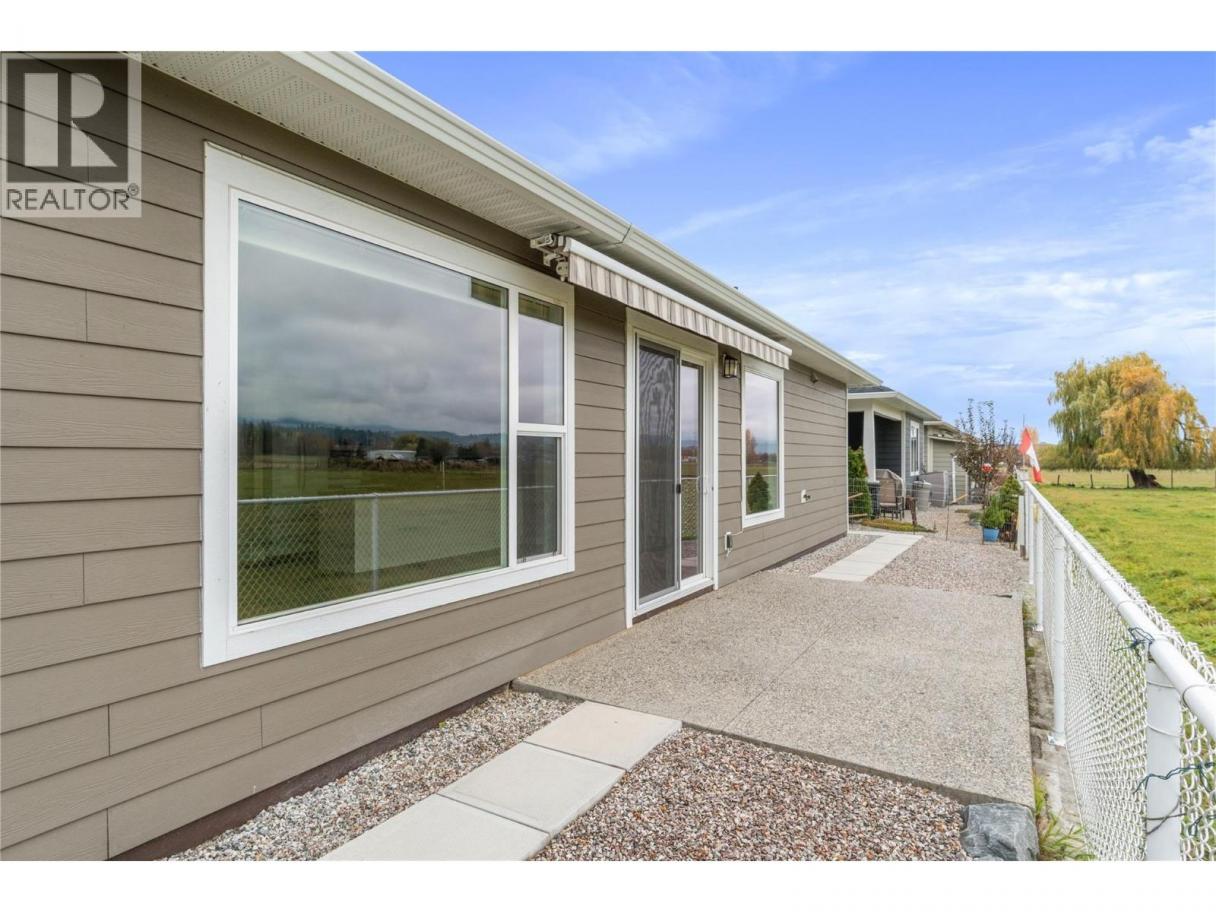 Beautiful View! Super Location! There is a lot to love about this 2020 custom-built rancher (Trevor Harrison Construction) in the friendly Valley Lane 55+ bare land strata community. The home is thoughtfully designed to take advantage of the pastoral views of adjacent ALR pasture and surrounding hills. Natural light fills the home creating a peaceful ambience. As you enter the spacious foyer, you will be drawn down the wide hallway to the open-concept kitchen, living and dining room. The primary bedroom features a large walk-in closet and ensuite with soaker tub. A large laundry/mud room with laundry sink (cute ironing board cupboard), a second bedroom, 3 pc main bath w/ full-size shower, and a den/bedroom complete the floor plan. Be sure to step out onto the patio to admire the view and note the remote controlled awning – great place to enjoy the morning sun! The front patio has a matching awning. With the low-maintenance yard, you have freedom to travel whenever the spirit moves you. You will find an abundance of storage options throughout the home, including the crawl space. Parking is no problem with an extra-large single garage and 2 car cement driveway. Valley Lane is an easy walk to shopping and amenities at Piccadilly Mall and surrounding business hub. Close to transit, pets w/restrictions. Strata fee $75 per month. Vacant w/ quick possession possible. Book your appointment to view today! (id:6769)