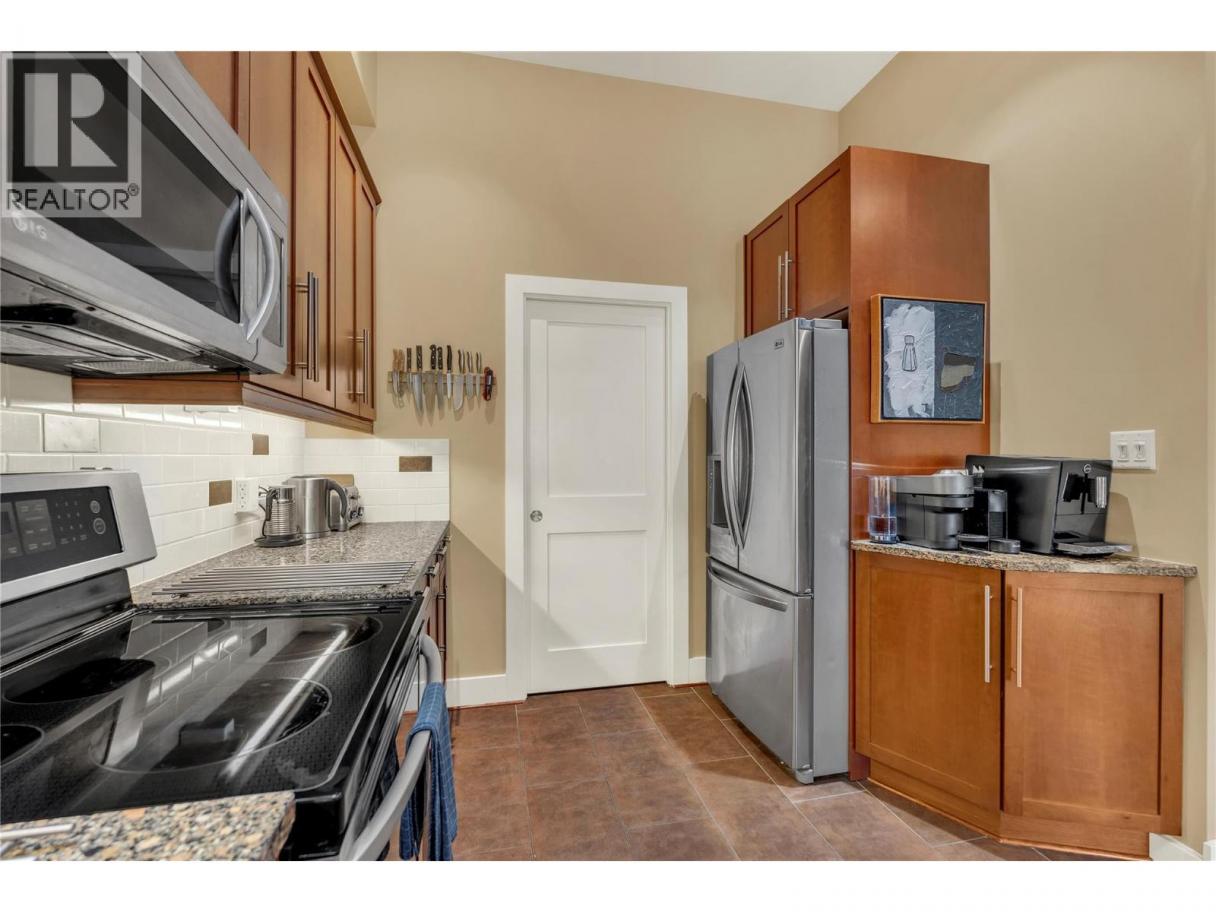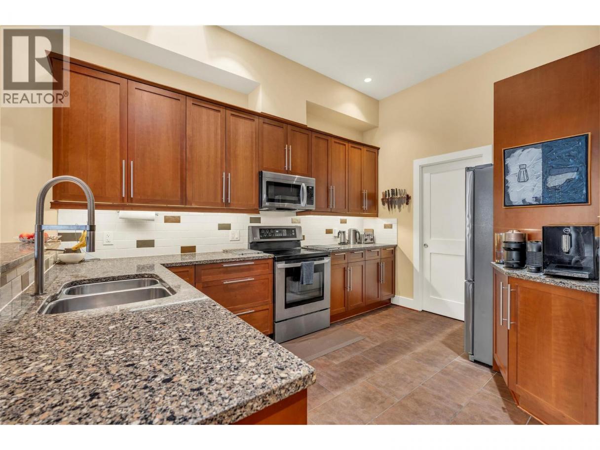 Experience elevated urban living in this exceptional penthouse condo located in the heart of downtown Penticton. Spanning just over 2,000 sq. ft., this residence combines contemporary elegance with comfort and style. The open concept design features soaring 11 foot ceilings, granite countertops, and premium finishes throughout with a gourmet kitchen and spacious pantry. The impressive 900 sq. ft. private rooftop patio sets this home apart—an ideal space for entertaining or enjoying panoramic views under the Okanagan sky. Two covered patios are also available, perfect for morning coffee or evening relaxation. The large primary suite offers a spa inspired ensuite with a soaker tub and walk-in shower, while the second bedroom features a custom Murphy bed for flexible use. A bright den provides the perfect office or creative space. With elevator access, secure parking for one vehicle in a shared two-car garage, and a location steps from shops, dining, and the lake, this one-of-a-kind penthouse defines luxury downtown living in Penticton. (id:6769)