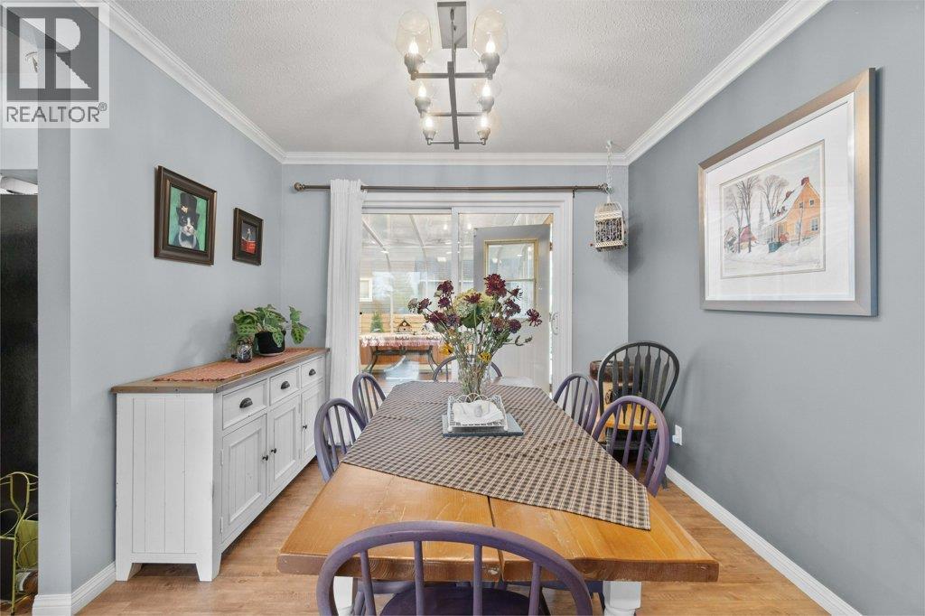 GREAT LOCATION for this 3 bedroom/2 bathroom family home. The comfortable layout of the main level features an L-shaped livingroom/dining area that leads out onto a large enclosed 3 season sunroom & deck. The kitchen is very user friendly with lots of cabinets and storage. Updated flooring throughout, crown moulding and some updated lighting. The lower level has the 3rd bedroom, a large utility/storage room and a huge family room with bar area. A 4th bedroom or den could easily be added in the basement. The single car garage is over 23ft long. Private yard. Newer roof is only 3.5 years old. Plenty of storage in the 12 x 20 ft shed. A fruit lover? Enjoy the cherries, raspberries and blueberries currently planted. This home is in a great neighbourhood & close to everything including schools, walking trails, easy walking distance to downtown. This home is a must see. (id:6769)