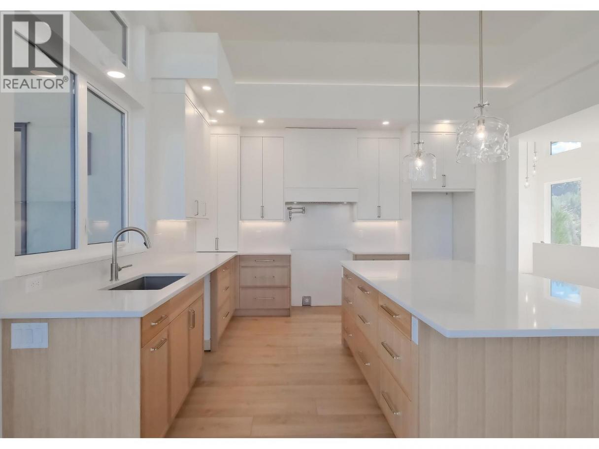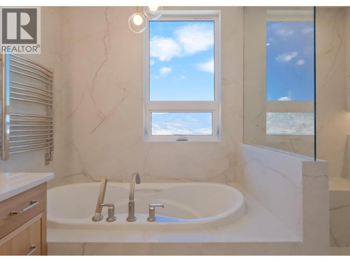 Stunning lakeview home, high-end craftsmanship. Experience elevated lakeside living in this impeccably designed, custom-built home offering breathtaking, unobstructed lake views. This home has 4 bedrooms—including two primary suites, each with its own ensuite—for a total of 4 bedrooms and 3 bathrooms, offering exceptional comfort and flexibility for family or guests. Step into grandeur with soaring 14’ ceilings in the living room and 12’ ceilings in the entry. The open-concept living space is anchored by a striking floor-to-ceiling window and a sleek 77"" electric fireplace—perfect for both relaxing and entertaining. The kitchen showcases custom modern shaker cabinetry shaker cabinetry, an oversized 8’ x 4’ island, and high-end fixtures—ideal for gourmet cooking and gatherings. The deluxe primary suite is a true retreat, offering serene lake views, deck access, and a luxurious 15’ x 10’ ensuite complete with a soaker tub, custom glass shower with a 12” rain head, heated tile floors, and heated towel rack. A 13’ x 6’ walk-in closet with built-in organizers completes this private space. The yard offers space to accommodate a pool—contact the listing agent for details. For a full specification sheet and more details, contact the listing agent. Don't miss this rare opportunity to own a high-end, lakeside masterpiece—available for immediate occupancy! (Some photos have been virtually staged. The property is currently vacant and does not include any furniture.) (id:6769)