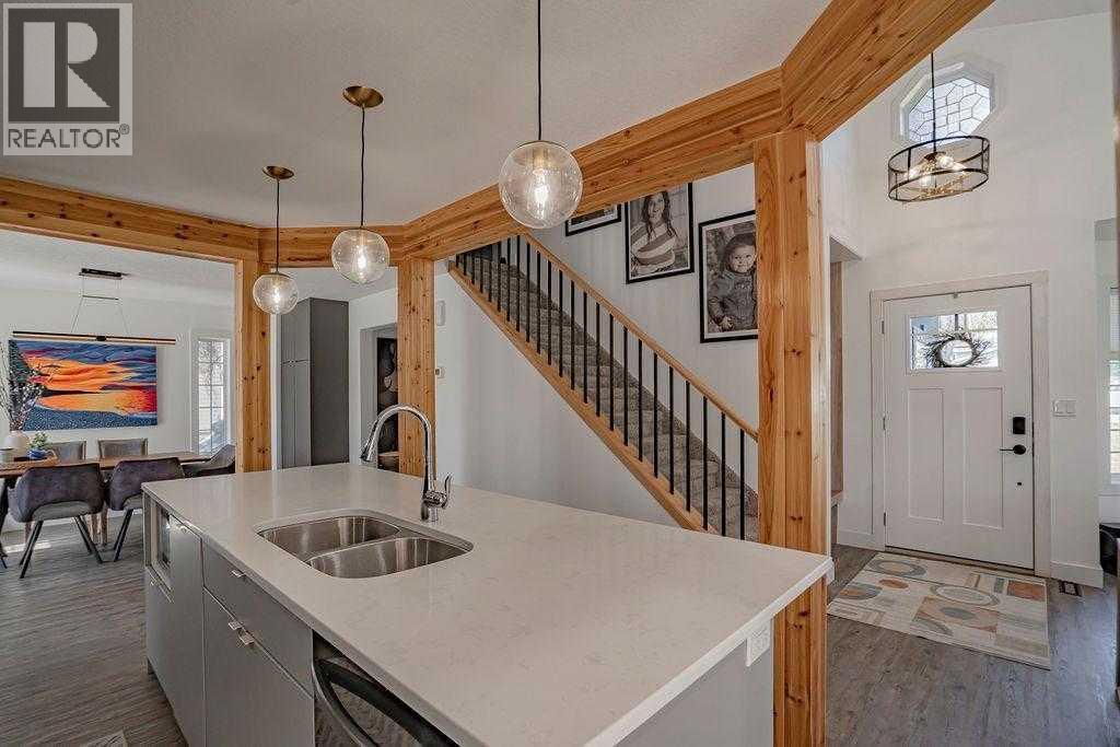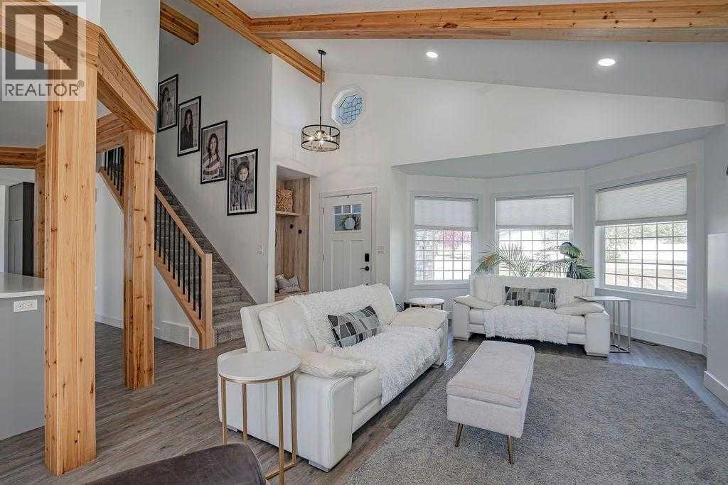 Everyone deserves to come home to a place thats straight out of a magazine.This riverfront property has been renovated from top to bottom, with new stylish kitchen, living room, new electric gas fireplace, new vinyl flooring, doors, vanities, trim, fixtures, front door, garage door/lift, windows and hardwares. You will find 3 beautifully styled bedrooms with 1 den down in the basement. There are 2 full bathrooms and 1 half bath on the main level. I absolutely love the kitchen which features beautiful black stainless appliances, gas stove, quartz countertops, under mount sink, soft closed cabinets and a breakfast bar. They have installed a wall pantry for additional storage which is tucked away in the large dining room. Living room showcases vaulted ceilings with lots of windows allowing the sun shine through all morning long! With all those windows we have you covered from the summer heat with the central air. Master bedroom features 2 of my favourite spots, the balcony and the soaker tub in the ensuite that overlook the river! Basement is fully developed with space to make a 4th bedroom, but for now its a great media room with a den. Finished and heated attached garage with large concrete driveway and rv parking. This home is situated on a .35 acre of a lot that backs directly onto the Peace River, but it has an amazing set up in the backyard for people who really utilize their yards. We have a nice fire pit area set up with a gazebo, garden shed and a large composite deck. There is a mature trees and space to add a garden. The yard is fully fenced and landscaped with irrigation. This home has had the shingles replaced. Call for more information on this property. (id:6769)