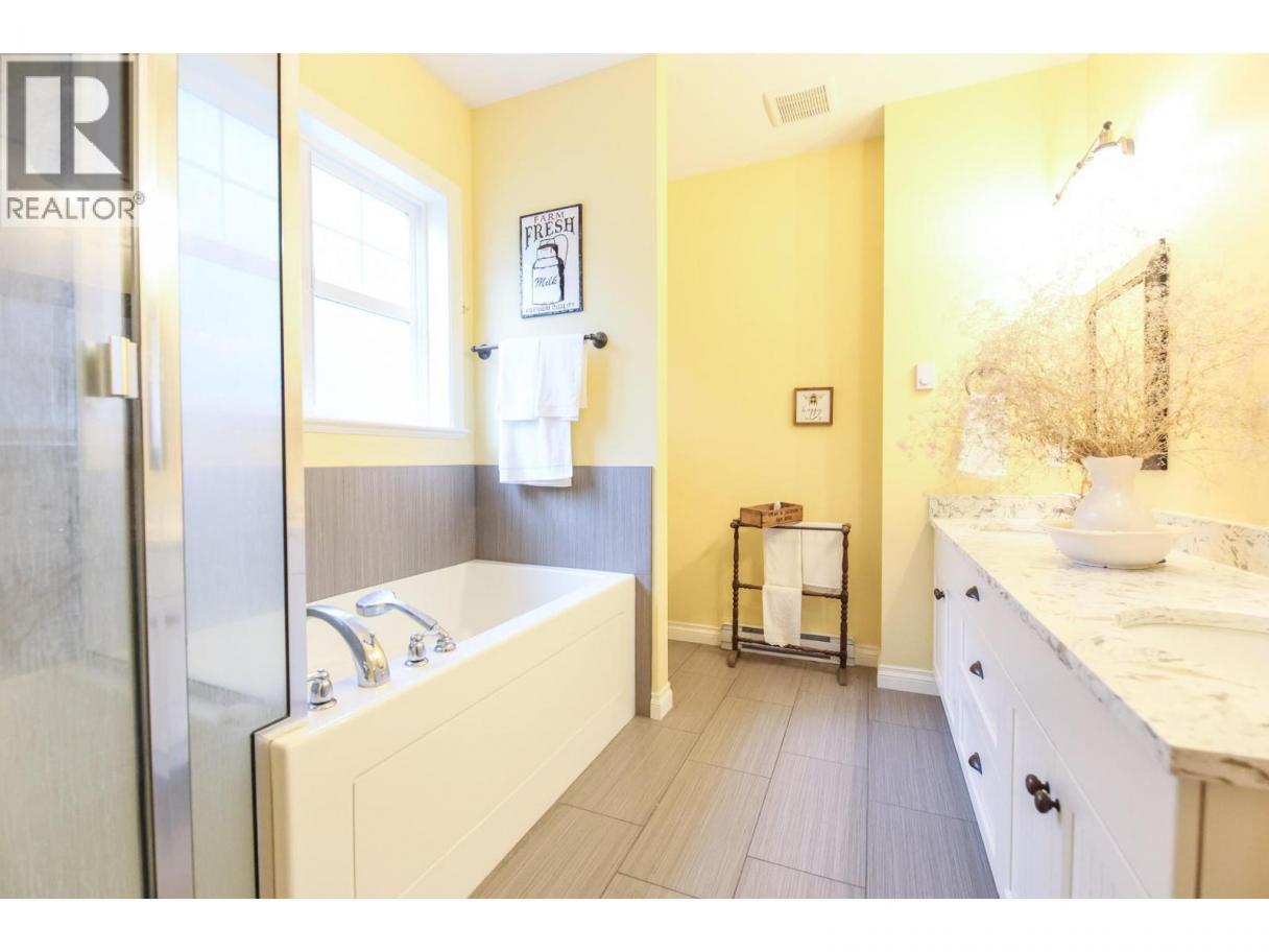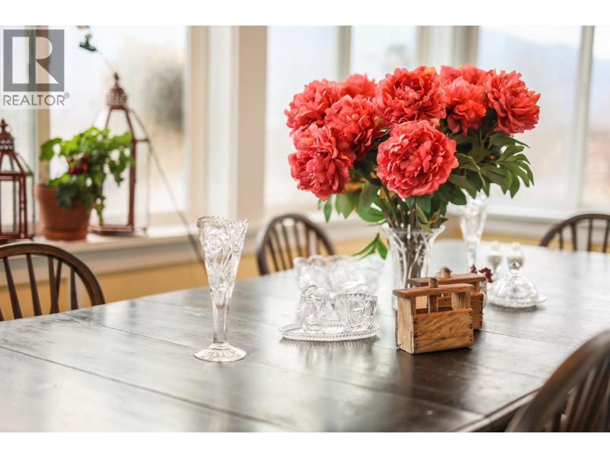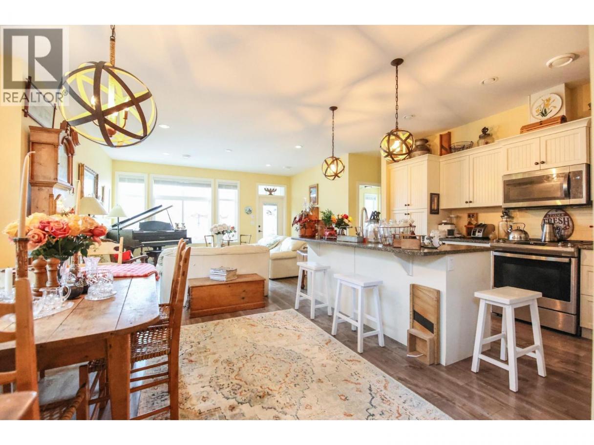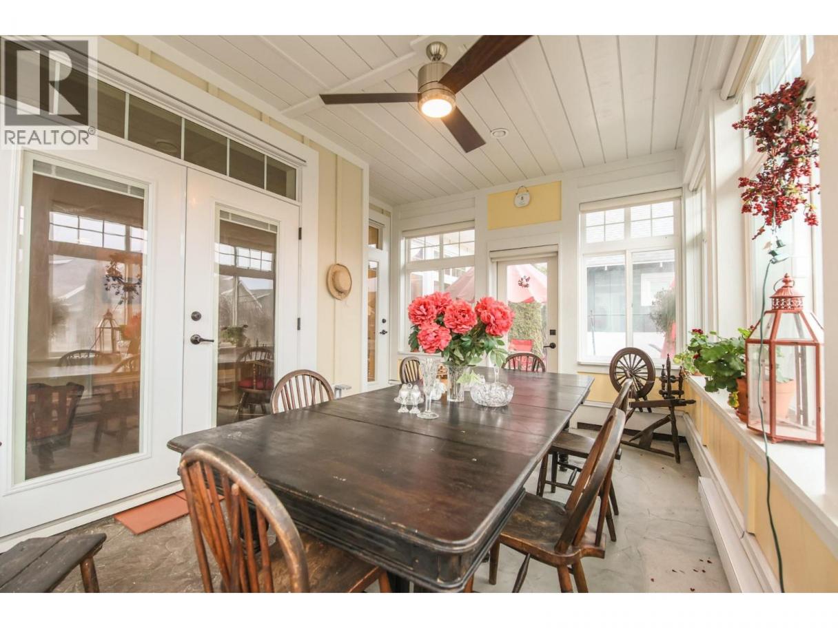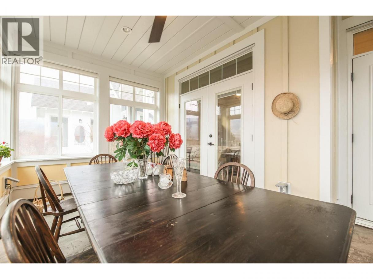 THE COTTAGES ON OSOYOOS LAKE. A gardener's delight, beautifully landscaped. Featuring 4bed/3-bath Burgundy Plan in the MEDOWS with a SOUTH-facing yard & steps to the beach & clubhouse. Gorgeous country-style home features a year-round enclosed, insulated porch complete w/solar shades. Warm palettes throughout. Bright kitchen with Quartz Countertops, pantry drawers & wine fridge. Electrical fireplace w/stonework in living area for cozy nights. Updated bathrooms, lighting, window covering and more! Primary bedroom features walk-in closet, spacious ensuite and access to sunroom. Rough in for central vac and security. Double car garage w/extended driveway pad. Geothermal heating and cooling. Beautiful green space and mountain views. The Cottages offers 1800 sqft of WATERFRONT & over 500 ft of sandy beach, marina, pools, 2 hot tubs, exercise rooms and clubhouse. 2 pets allowed, minimum 5-day rentals $400-$600/day in summer, estimated rental income. Great vacation home or permanent residence! Leasehold exp year, 2109. (id:6769)