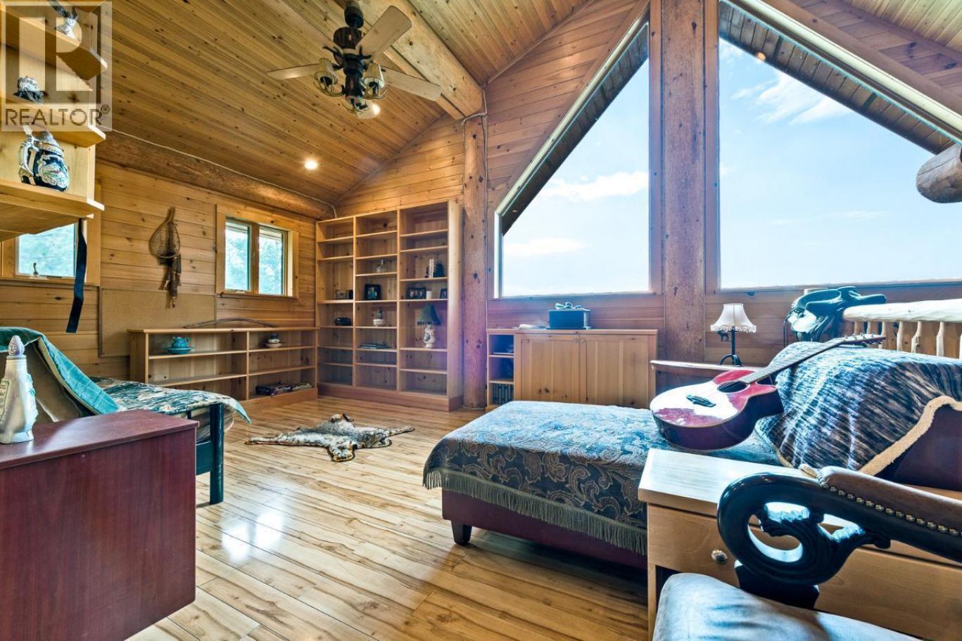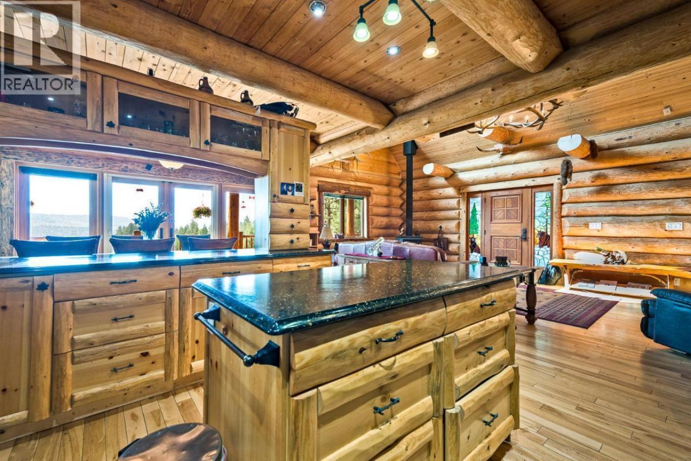 MUST-SEE!!! This custom-built log home is situated on a FLAT 10.6-acre lot fronting Highway 3, providing easy year-round access. The home features unobstructed views of the valley to the south. The main floor includes a bedroom, living room with vaulted ceiling, and loft. The primary bedroom is located on the second floor with a large walk-in closet and ensuite, and there's potential for another bedroom there. The walkout basement includes a bedroom and potential for a rental suite with its own bathroom and kitchen. A wrap-around deck offers stunning views, is ideal for entertaining guests. This property has potential as a vacation retreat, a summer home, or a place to raise horses with 3 acre fenced for horse corral and 4 stall barn with 2 attached 100 bale hay sheds on the side of the barn. This property has so much more to offer, schedule your private tour and make it yours! (id:6769)