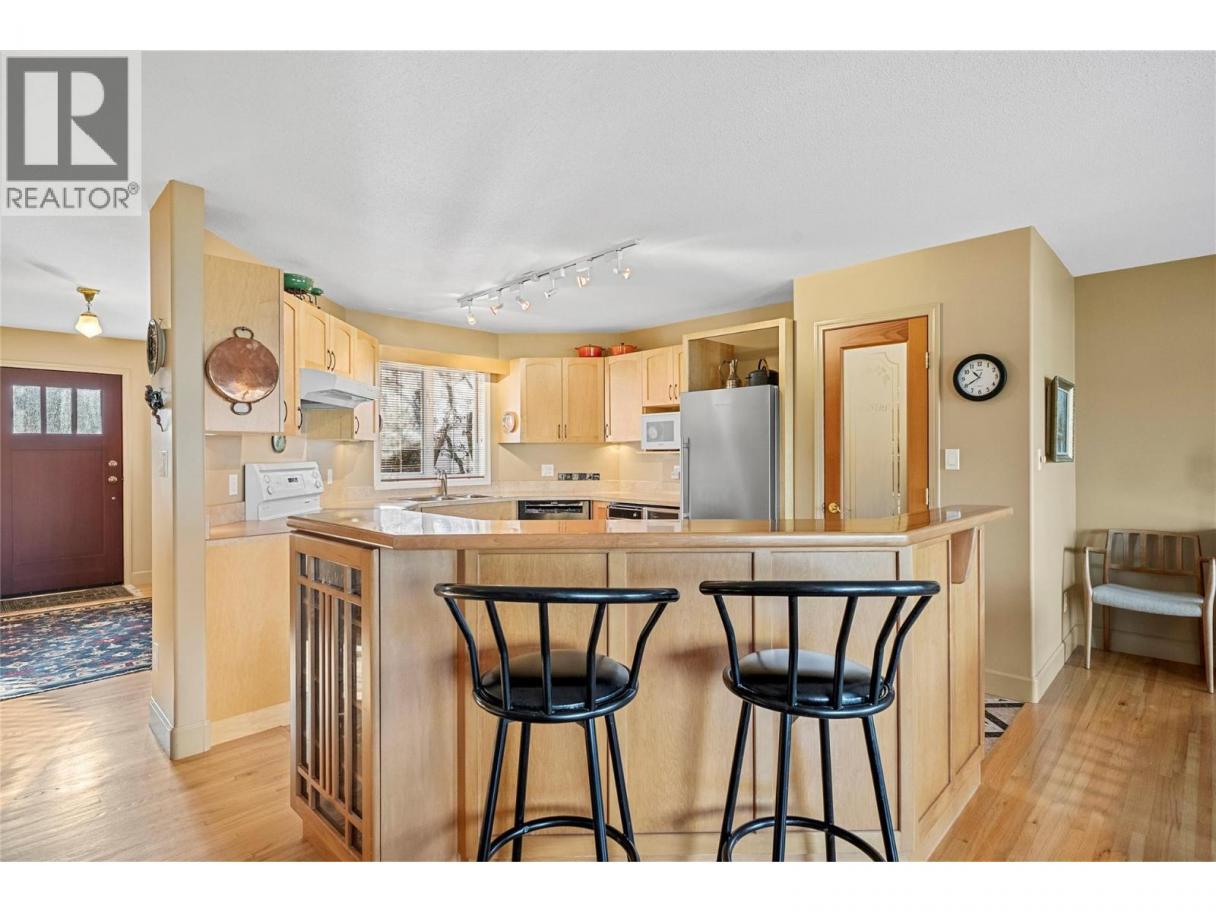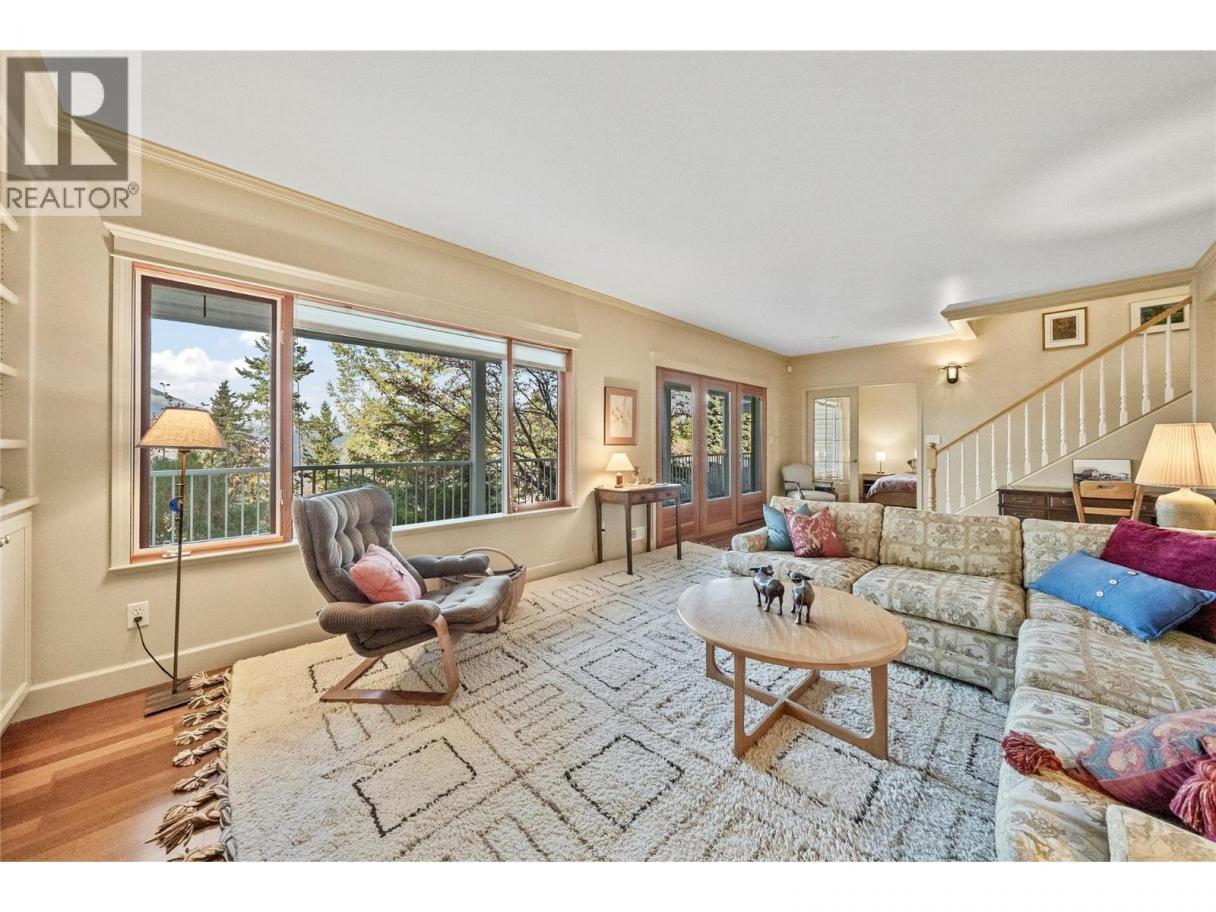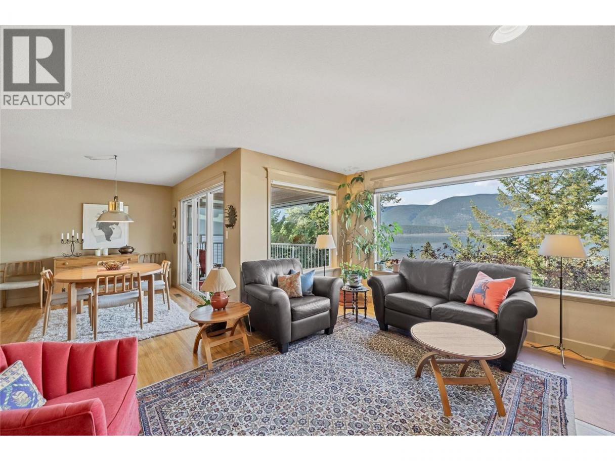 A WELCOME CHANGE… Say goodbye to yard work and hello to easy, elevated living in this beautifully maintained 3-bedroom rancher with walk-out basement in the sought-after Lakeview Terrace 55+ community. Enjoy breathtaking lake and mountain views the moment you step inside. The bright, open-concept main floor offers effortless living, with a stylish kitchen featuring a spacious island with custom fir breakfast bar, large pantry, and seamless flow to the dining area and covered view deck—complete with privacy glass and sunshade for peaceful mornings or sunset dinners. The living room is warm and inviting with a gas fireplace and custom built-ins. The spacious primary bedroom includes lovely views, custom closets, and an ensuite with soaker jet tub and separate shower. A generous foyer, 2-piece guest bath, full laundry room, and well-designed mudroom with access to the double garage round out the main floor. The sun-filled lower level is ideal for guests or entertaining, with two bedrooms, a full bath, large family room with second gas fireplace, abundant storage, and a covered deck to take in the scenery. Low maintenance, move-in ready, and designed for easy living—this is the lifestyle you’ve been waiting for. Strata fees $100/month. All mechanicals have been updated, new downstairs fireplace installed and a new garage door (id:6769)