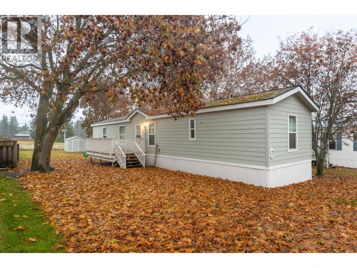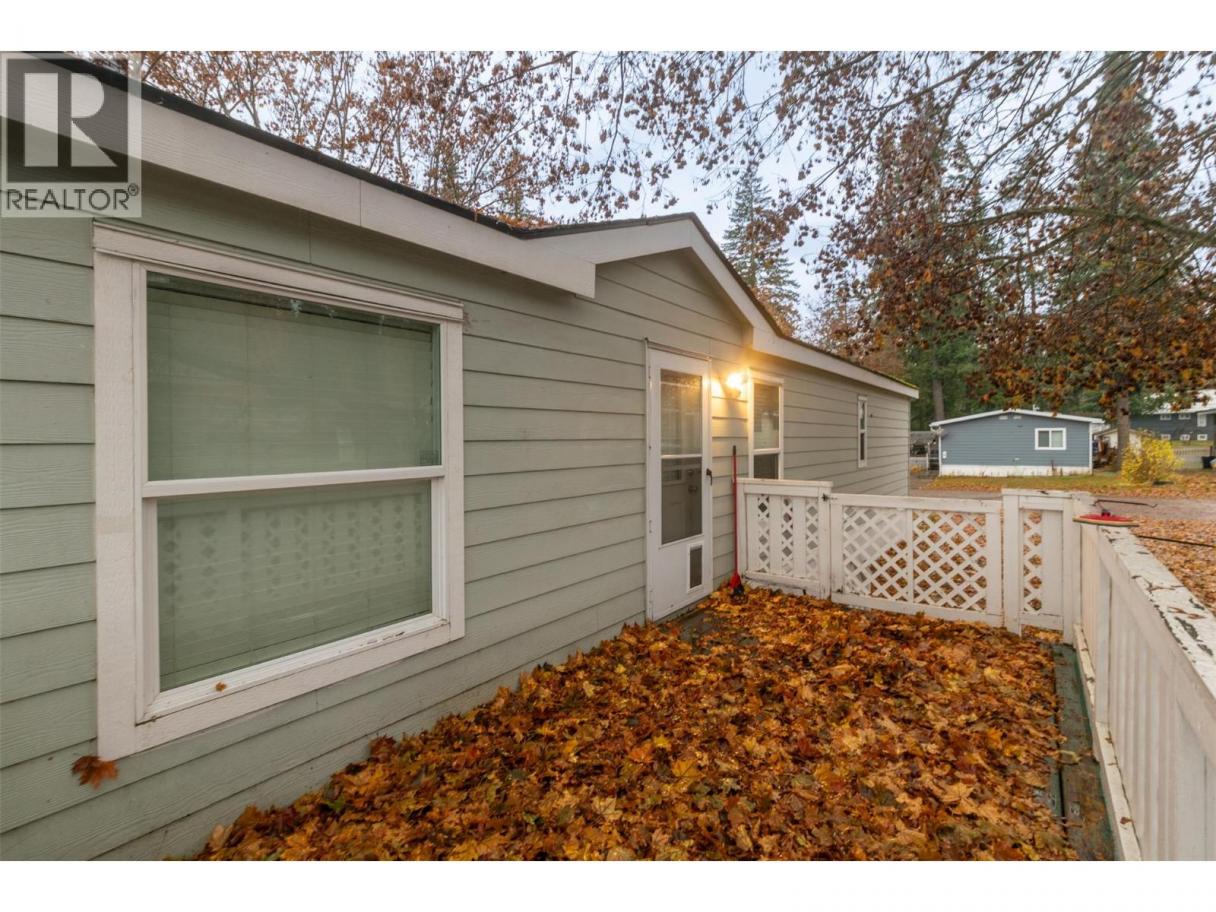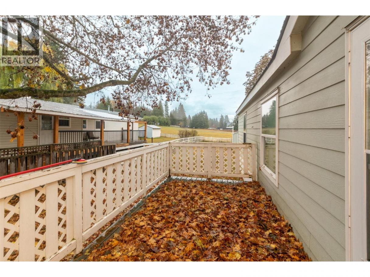 A charming country feel to this 2013 2-bedroom, 2-bathroom home, situated in the peaceful Homestead Mobile Home Park. You will be only minutes into Salmon Arm and not much further to Enderby. With Ranchero Elementary school only a short walk or drive away and the conveniences of a gas and grocery just up the road, you have a perfect balance of quiet living and accessibility. Comfortable open layout with a peninsula eating bar plus ample cupboard and counter space. At one end you have the primary bedroom complete with a walk-in closet and a private ensuite bathroom. At the other you have a spare room and main bath finished off with laundry and a bit of storage space. Outside, you can enjoy a spacious flat yard with a storage shed for the tools, and a deck or porch to relax in the shade in the evenings. Forced air furnace and A/C for comfort in the Summer. 1 pet allowed per household, by park approval, no size or weight restriction. (id:6769)
