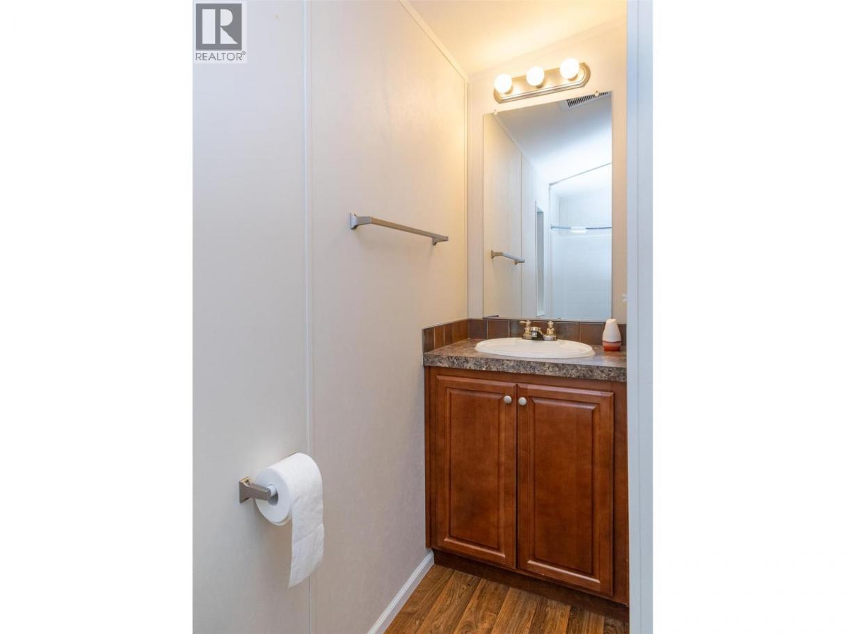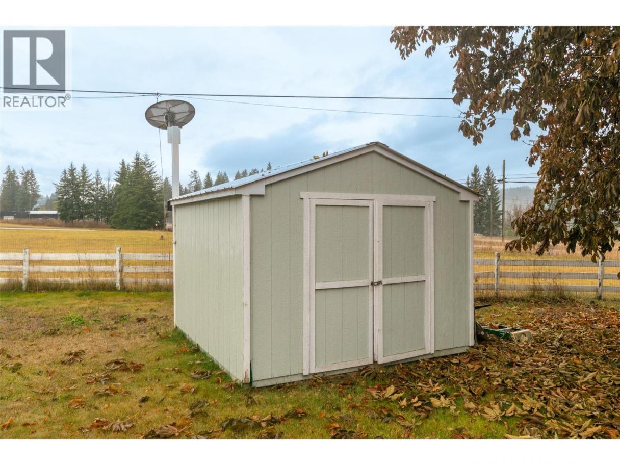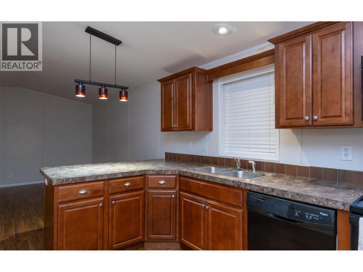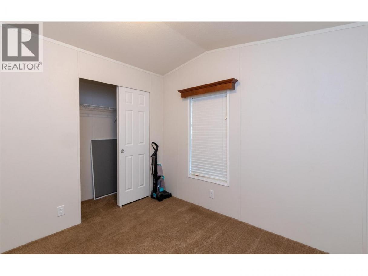 A charming country feel to this 2013 2-bedroom, 2-bathroom home, situated in the peaceful Homestead Mobile Home Park. You will be only minutes into Salmon Arm and not much further to Enderby. With Ranchero Elementary school only a short walk or drive away and the conveniences of a gas and grocery just up the road, you have a perfect balance of quiet living and accessibility. Comfortable open layout with a peninsula eating bar plus ample cupboard and counter space. At one end you have the primary bedroom complete with a walk-in closet and a private ensuite bathroom. At the other you have a spare room and main bath finished off with laundry and a bit of storage space. Outside, you can enjoy a spacious flat yard with a storage shed for the tools, and a deck or porch to relax in the shade in the evenings. Forced air furnace and A/C for comfort in the Summer. 1 pet allowed per household, by park approval, no size or weight restriction. (id:6769)