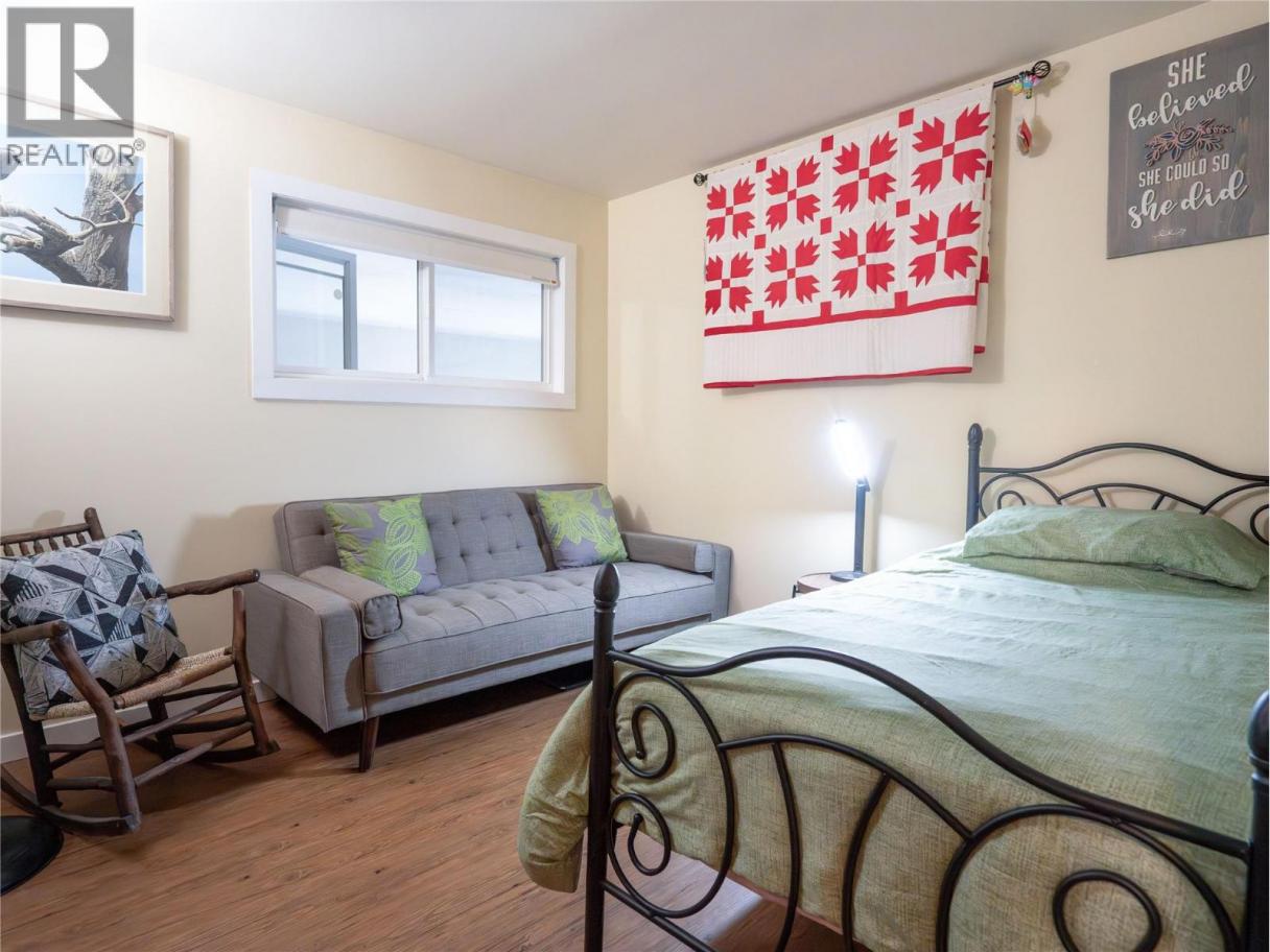 Charming 5-bedroom, 2-bath home on a large corner lot with a fenced yard—perfect for gardeners! The main level offers a bright living room with wood burning fireplace, open-concept dining & kitchen, 3 bedrooms, and a full bath. The fully renovated lower level is a legal, profitable short-term rental suite with a new kitchen, 2 bedrooms, full bath, and updated finishes including flooring, paint, and appliances. Recent updates also include new windows, an updated electrical panel, and a new torch-on roof. Centrally located near shopping and schools, with R4-L zoning offering potential for a future carriage home. Ready for its next family - contact listing agent for more information. (id:6769)