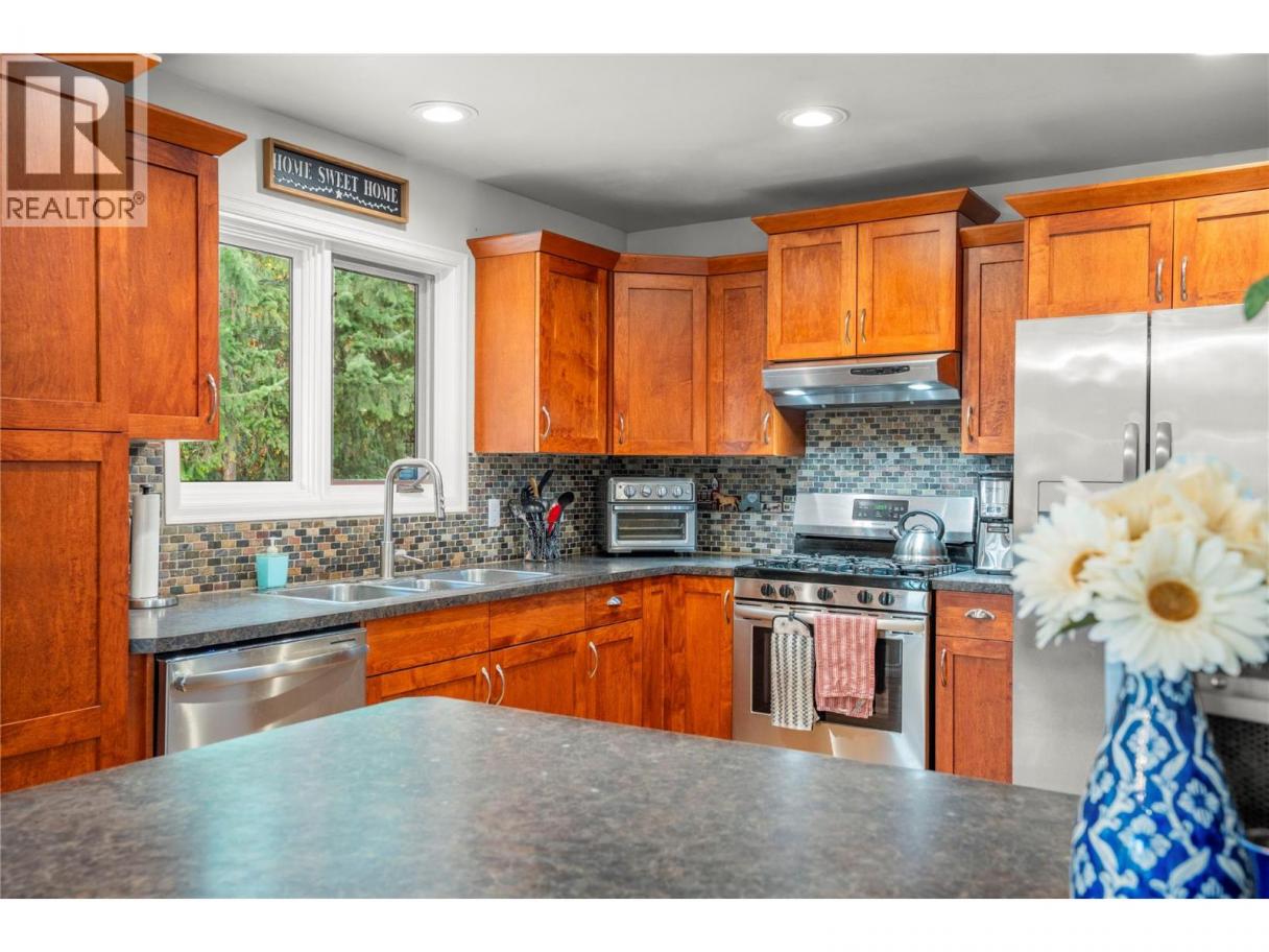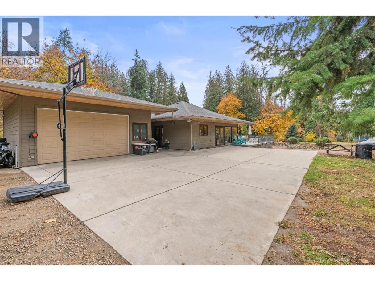 Welcome to 5615 East Vernon Rd! Only 5 minutes to town from your own piece of paradise! Whether laying in the hammock beside the babbling brook, or even sitting on a chair with your feet in the creek, the warm summers are even more enjoyable! Practice your green thumb by growing your own vegetables in the garden, and cozy up with a marshmallow roast by your own fire pit. The included ATV with snow plow attachment makes short work of clearing the snowy driveway areas in the winter! There is ample parking for vehicles, RV, travel trailer, motorcycles, dirt bikes... all your toys! The large heated and powered garage (200 amp service ) has plenty of storage for seasonal toys as well. Under the large sundeck is an insulated bonus room that can be used for more storage or a fitness/games room! In the basement is a former 1-bedroom suite converted for use by the present owner, but can easily be converted back to a suite as the electrical and plumbing are all still readily available. This location is right on the way to Silver Star Ski resort and could lend itself well to various rental opportunities (a great mortgage helper) for year round! Speaking of electrical... the cement slab off the primary bedroom is wired for your personal hot tub! With 4 bedrooms and 2.5 bathrooms total, there is plenty of room for a large family or multi-generational family opportunity. (id:6769)