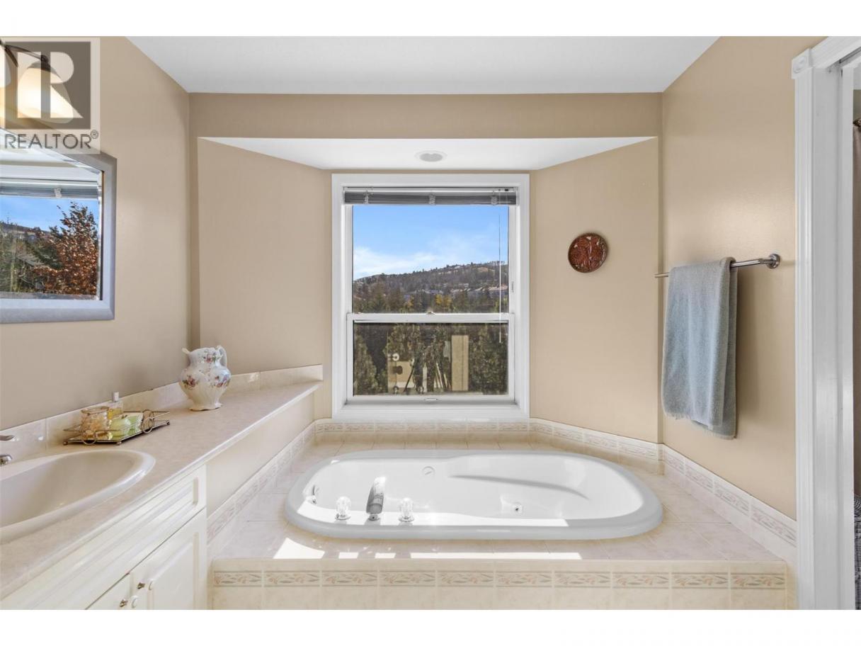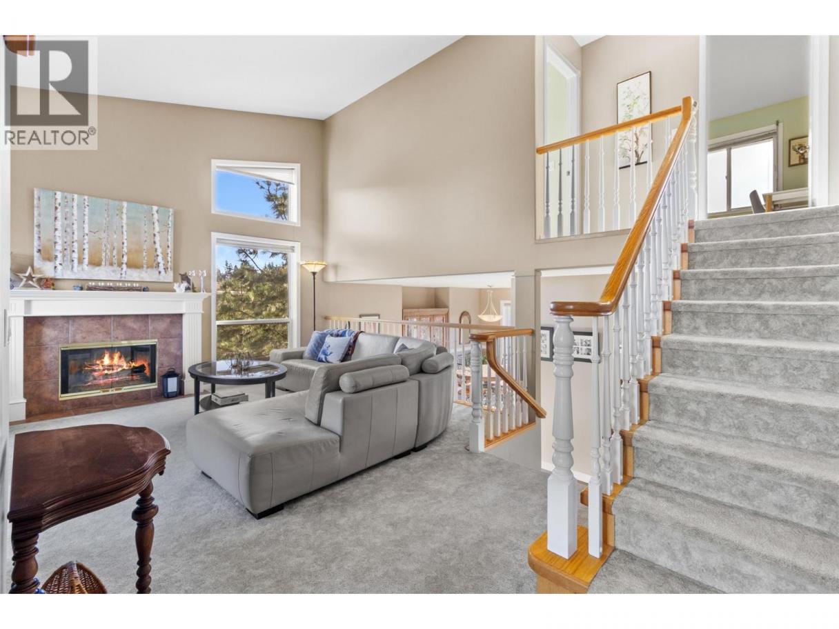 Discover refined living in this beautifully crafted, four-level split home with a bright walk-out daylight basement. Perfectly positioned in sought-after Eagle Heights on a quiet cul-de-sac, this custom residence backs onto a serene forested greenbelt, offering exceptional privacy and a picturesque natural setting. With approximately 3,200 sqft of well-designed living space, this home offers 4 bedrooms and 4 bathrooms. The thoughtfully modelled kitchen opens to a cozy eating area and an inviting family room complete with a gas fireplace and sliding doors to a covered deck—ideal for year-round enjoyment. The impressive living room boasts vaulted ceilings and a gas fireplace, overlooking the elegant formal dining room. A convenient den and laundry room complete the main level. The lower level provides a spacious family/rec room perfect for movie nights or entertaining. Comfort and convenience abound with central air conditioning, built-in vacuum, underground sprinklers, and a relaxing jetted tub. Modern paint tones complement a tasteful blend of hardwood, tile, and carpet flooring throughout. On-demand hot water, Roof 2021. This is an exceptional opportunity to own a beautifully appointed home in a prime location, surrounded by nature yet close to amenities. Don’t miss it! (id:6769)