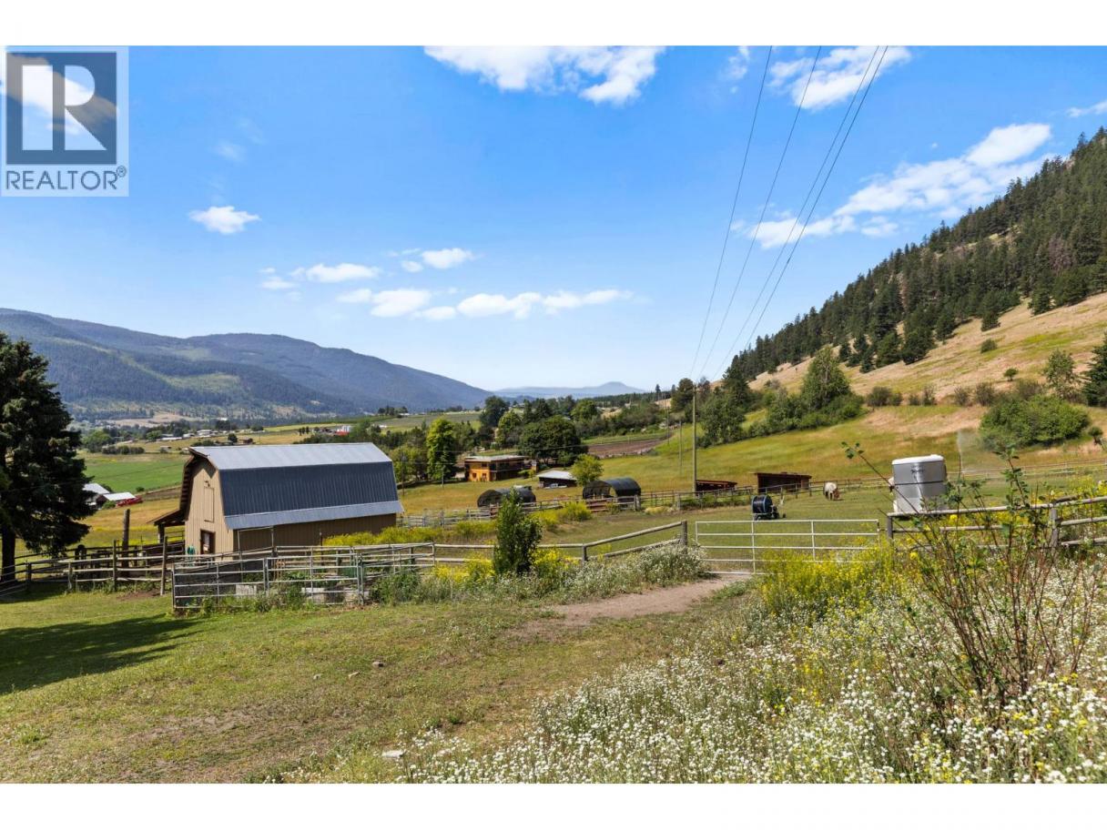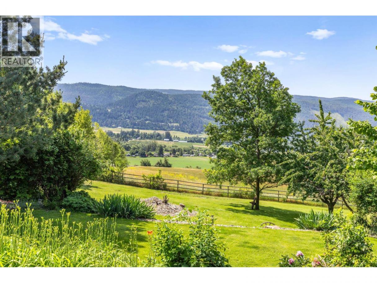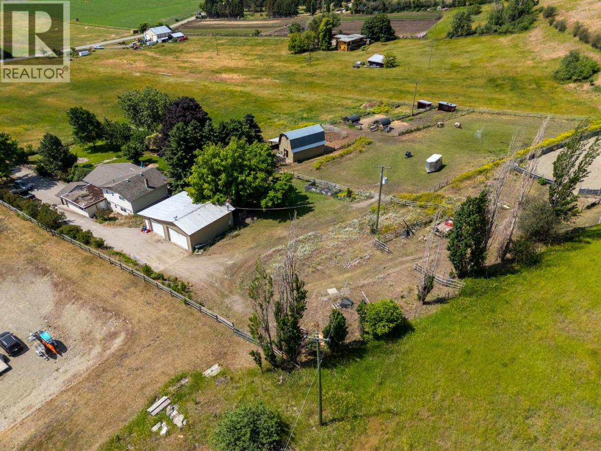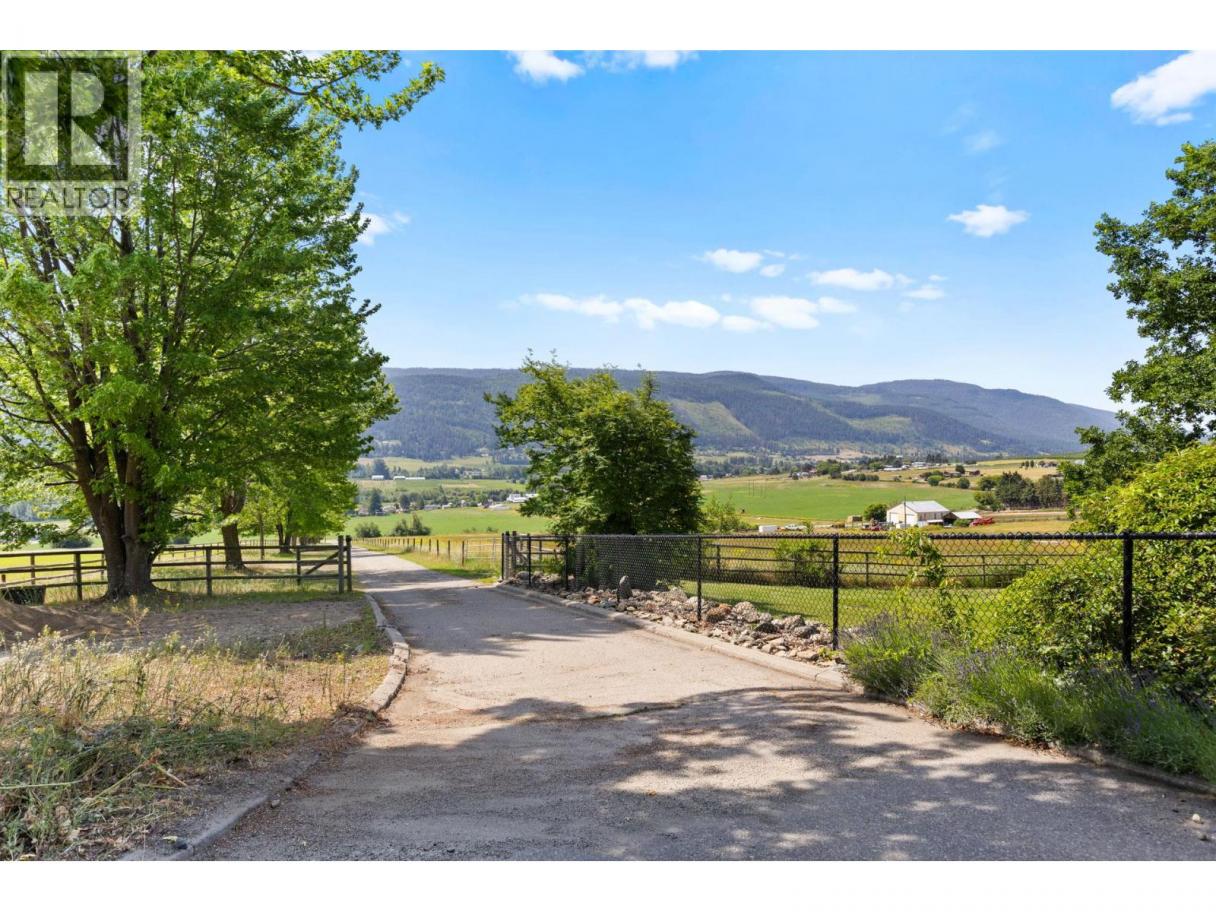 10.04 acre parcel in the Coldstream area of the Okanagan Valley. This residence boasts over 3,100 square feet of living space, featuring four bedrooms, three bathrooms, a double car garage, and renovations throughout. The living room offers vaulted ceilings to get excess natural light in from your valley views ahead, while your kitchen has stainless steel appliances. Off your deck, you can overlook your private garden/yard area, fenced in for convenience for any dogs. While you drive up the tree lined driveway, you pass by your extensive hay fields, irrigated with dedicated irrigation water; the land could be suitable for a variety of crops. The property is set up perfectly for equestrian uses, with a large barn (with hay loft), extensive cross fencing, and a flat, sanded riding arena (uncovered) at the top of the property. There are two dedicated paddocks with shelters. The insulated three bay workshop (with one pass-through stall) is perfect for a home based business, storage, extra covered parking, and more. This is a perfect hobby-farm or equestrian retreat, with significant dollars invested into the land, the home, and the two large outbuildings to help service any agricultural uses. The equipment/irrigation equipment may be negotiable. (id:6769)