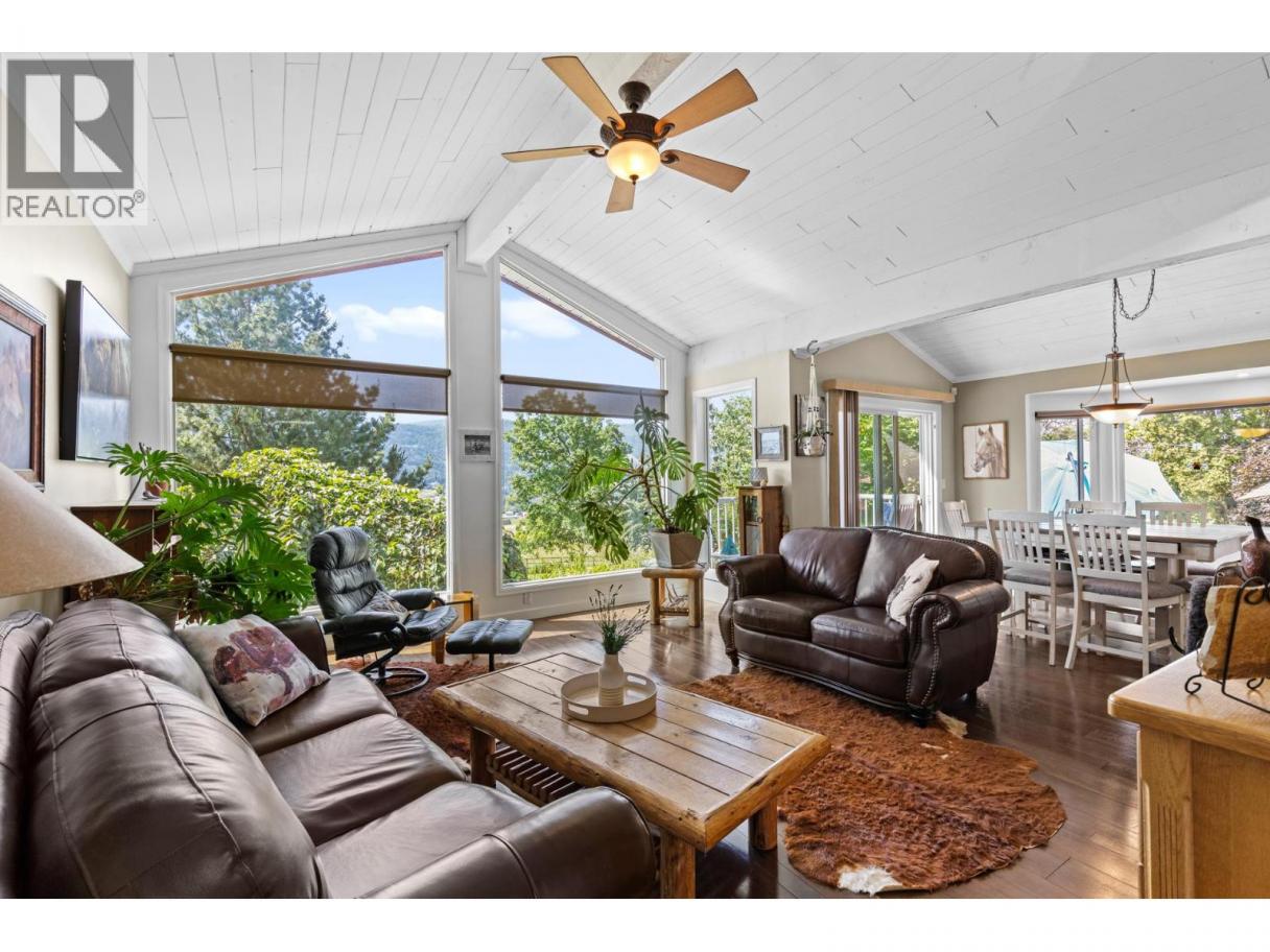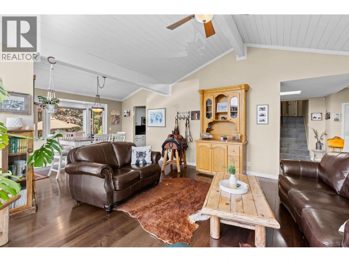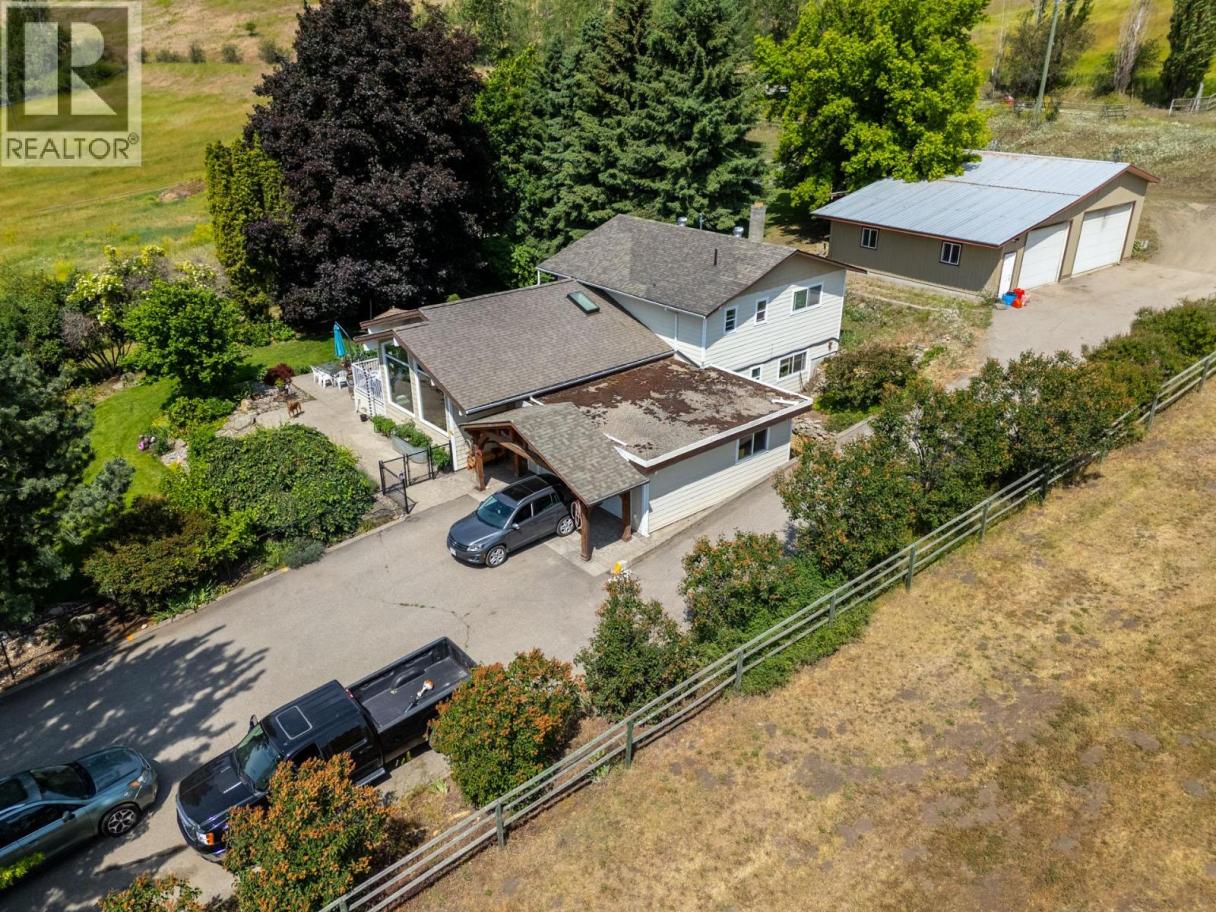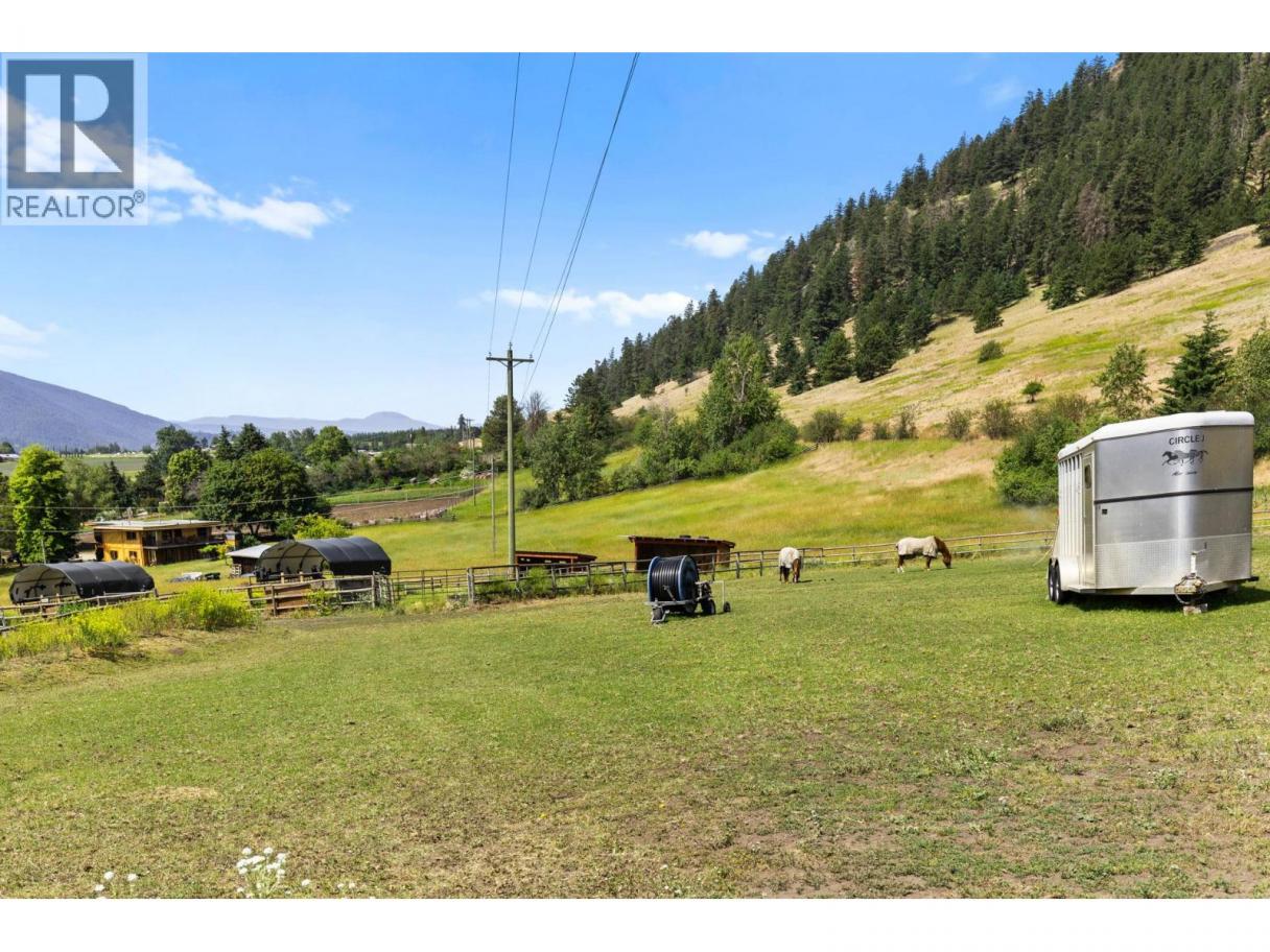 10.04 acre parcel in the Coldstream area of the Okanagan Valley. This residence boasts over 3,100 square feet of living space, featuring four bedrooms, three bathrooms, a double car garage, and renovations throughout. The living room offers vaulted ceilings to get excess natural light in from your valley views ahead, while your kitchen has stainless steel appliances. Off your deck, you can overlook your private garden/yard area, fenced in for convenience for any dogs. While you drive up the tree lined driveway, you pass by your extensive hay fields, irrigated with dedicated irrigation water; the land could be suitable for a variety of crops. The property is set up perfectly for equestrian uses, with a large barn (with hay loft), extensive cross fencing, and a flat, sanded riding arena (uncovered) at the top of the property. There are two dedicated paddocks with shelters. The insulated three bay workshop (with one pass-through stall) is perfect for a home based business, storage, extra covered parking, and more. This is a perfect hobby-farm or equestrian retreat, with significant dollars invested into the land, the home, and the two large outbuildings to help service any agricultural uses. The equipment/irrigation equipment may be negotiable. (id:6769)