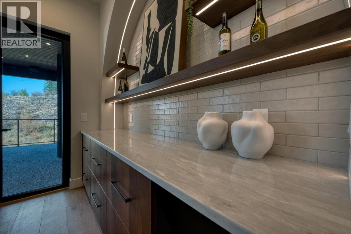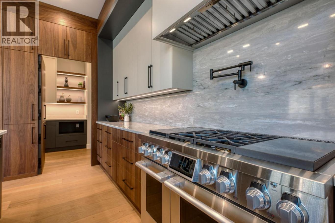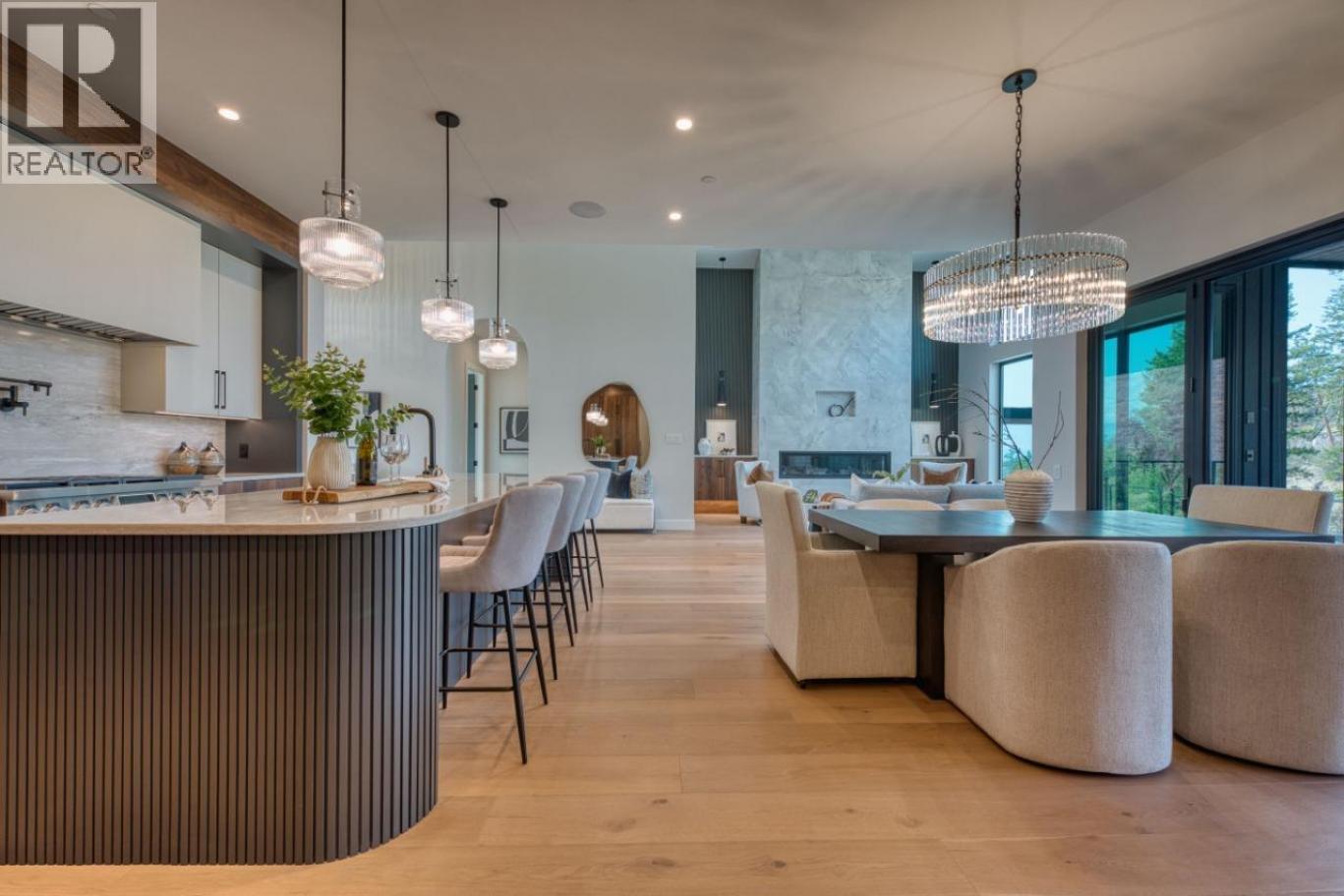 This exquisite Predator Ridge residence defines elevated indoor-outdoor living with refined design and flawless craftsmanship. The striking façade showcases multiple rooflines and professional landscaping that mirrors the Okanagan’s natural beauty. Inside, sophisticated décor, vaulted ceilings, and expansive windows create a light-filled sanctuary. The jaw-dropping kitchen features an 11' island with a 45"" workstation sink, quartz surfaces, and a premium 48"" range offering gas, induction, and sous vide cooking options, complemented by concealed appliances and a hidden walk-in pantry. Entertain in style at the wet bar or extend gatherings through accordion glass doors to the covered patio, pool, and outdoor shower. The serene primary bedroom offers a resort style ensuite with a wet room and vanity island. Upstairs includes a bonus room with a large covered deck, two bedrooms, a flex room, and laundry. Completing this luxurious home is a 2.5 car attached garage plus a dedicated golf cart bay. (id:6769)