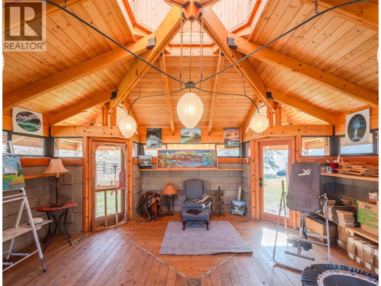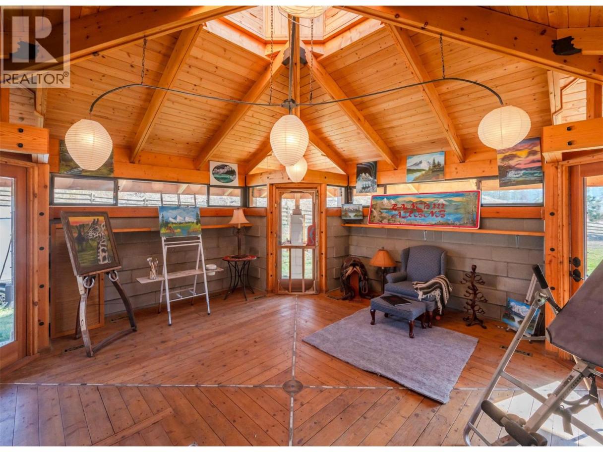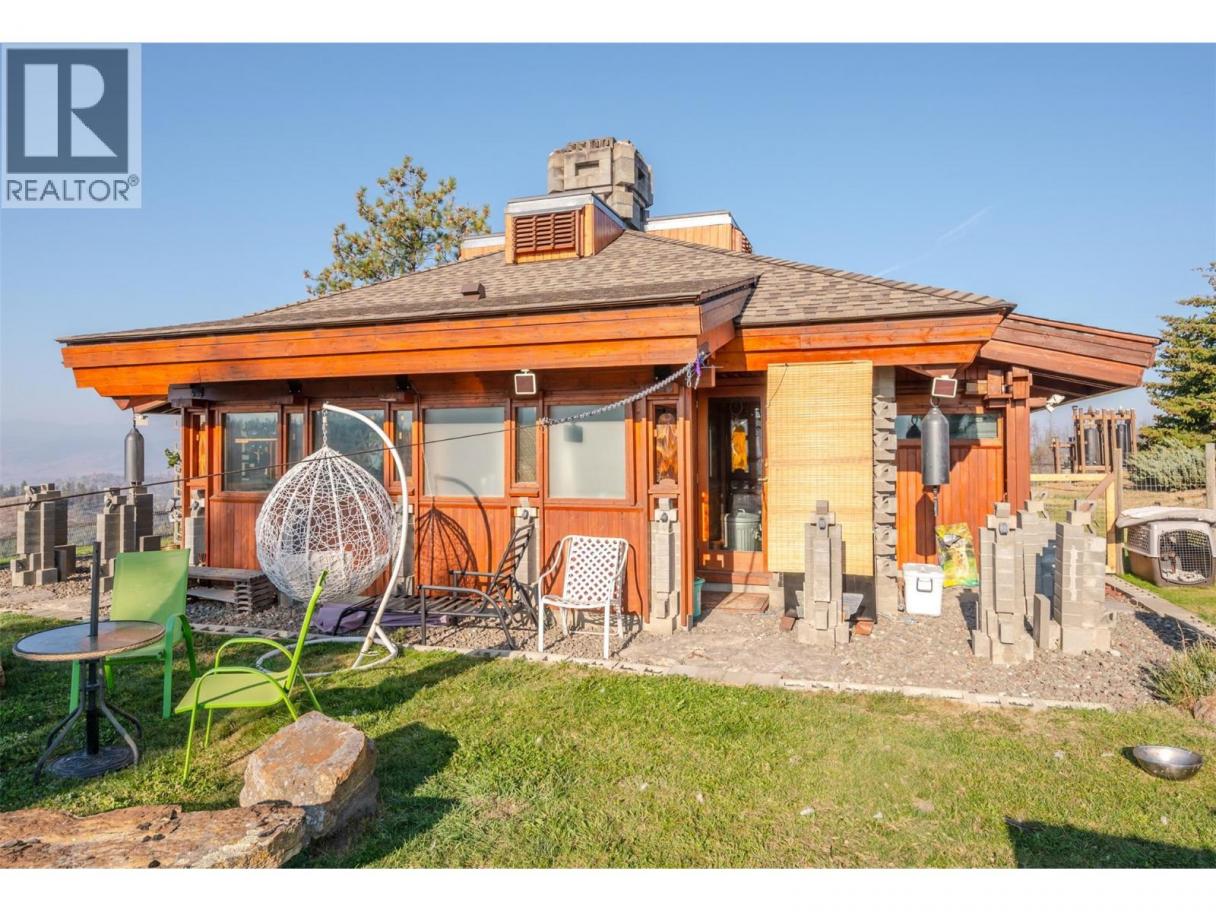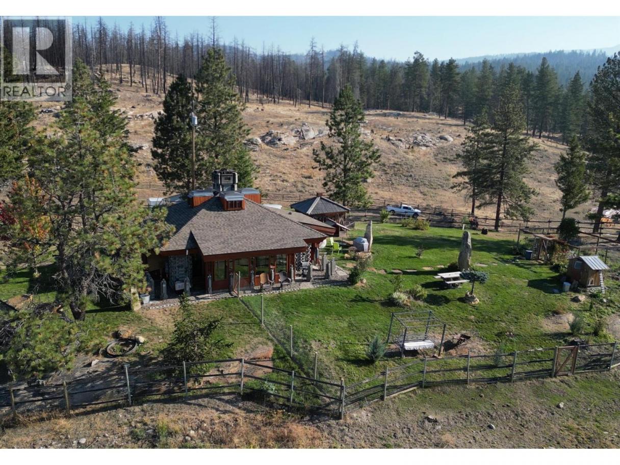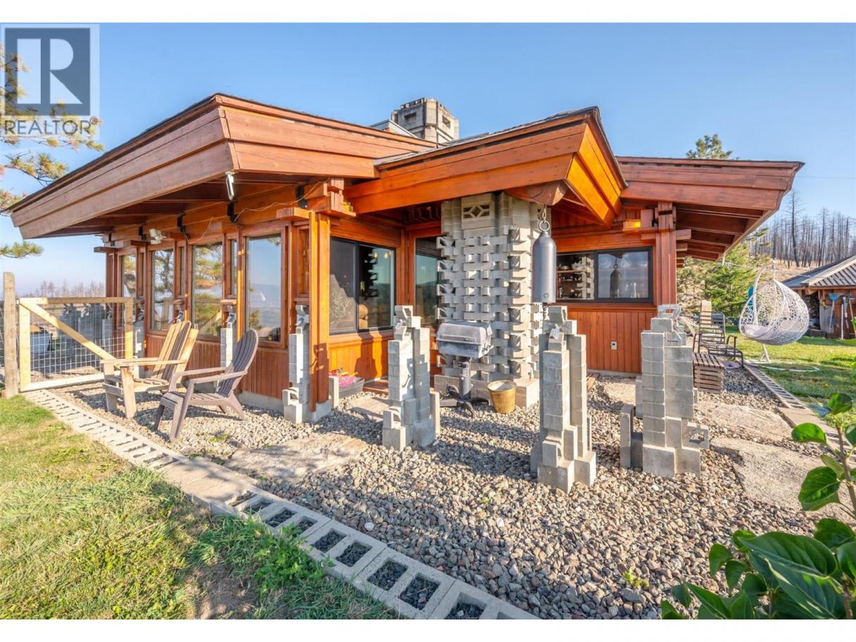Welcome to Manndala! Designed by renowned architect Henry Yorke Mann as his personal residence, this stunning compound is situated on 12.4 rolling acres just a 15 minute drive from Oliver. Surrounded by 270 degree, breathtaking mountain vistas, this natural oasis offers multiple use scenarios including a dream equestrian property, wellness retreat, creative sanctuary, Airbnb destination, or extended family compound. The main residence is a stunning example of HYM's design ethos focused on extensive use of natural materials to creating buildings in harmony with their environments. Anchored by four custom, concrete block pillars (the ""four corners of the earth""), and featuring soaring, skylit, vaulted ceilings, wraparound windows, giant log beams, and Mann's signature central, sculptural, concrete block fireplace installation, this home presents a unique connection to the natural world around it. This design sensibility carries through to the additional buildings on-site; the purpose-built secondary residence (the ""Quietude""), the additional efficiency suite (the ""Cowboy""), and the dramatic, freestanding workshop/studio (the ""Jewel""), with its adjacent three-season washroom. Additional outbuildings on-site provide storage and shelter for vehicles. Thoughtful additions by the current owner include a beautiful, four-stall horse barn with enclosed pastures and custom, circular riding paddock perfect for focused training. Dimensions approximate. Buyer to verify if important. (id:6769)