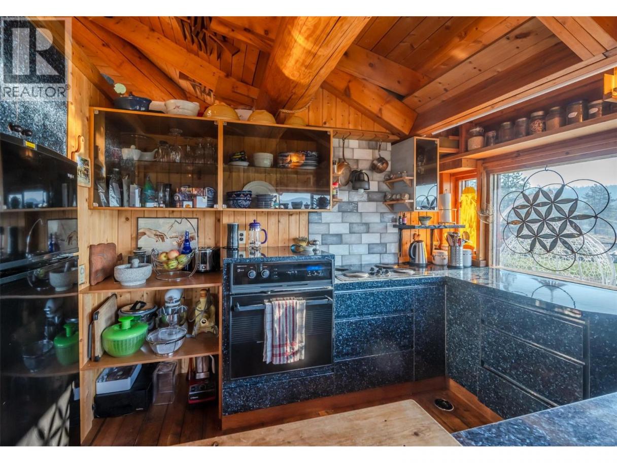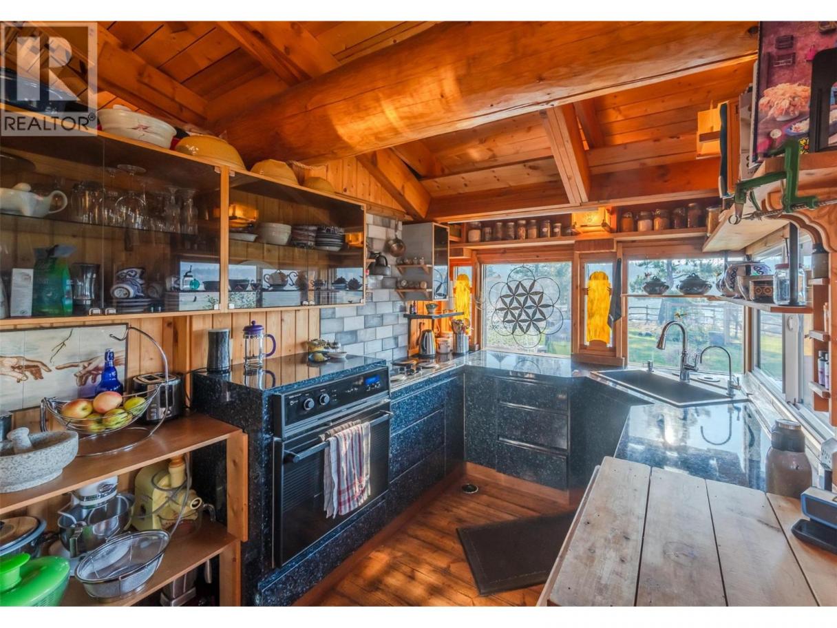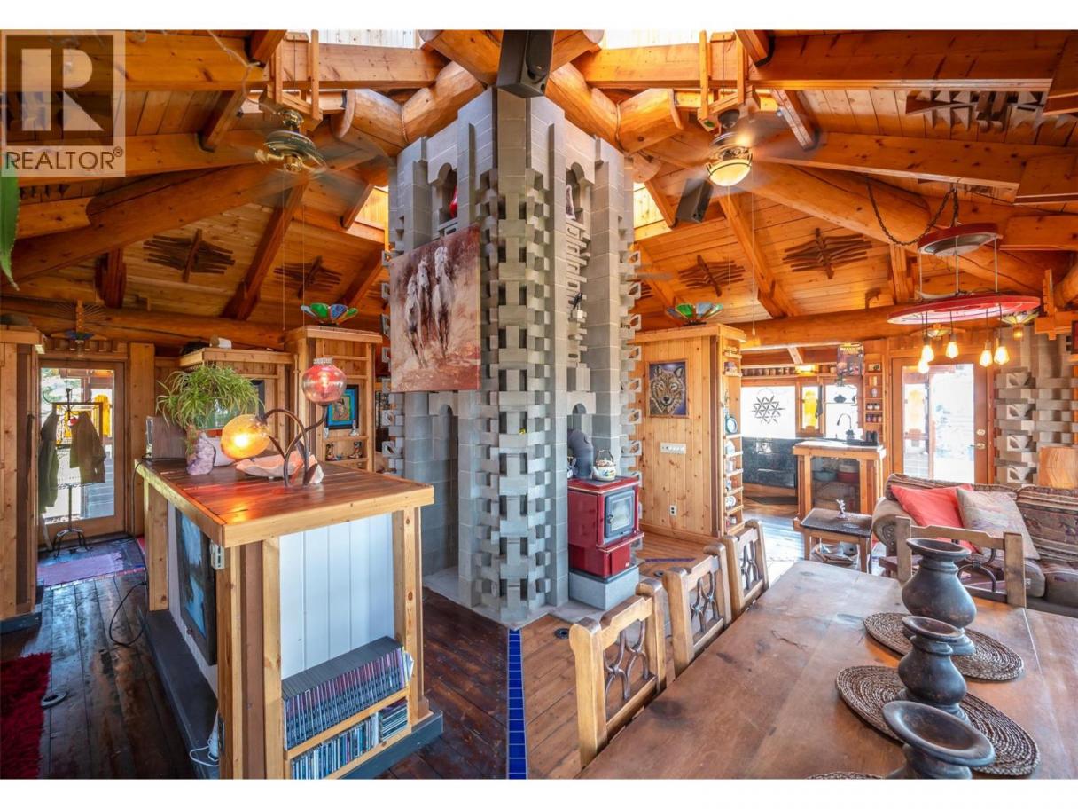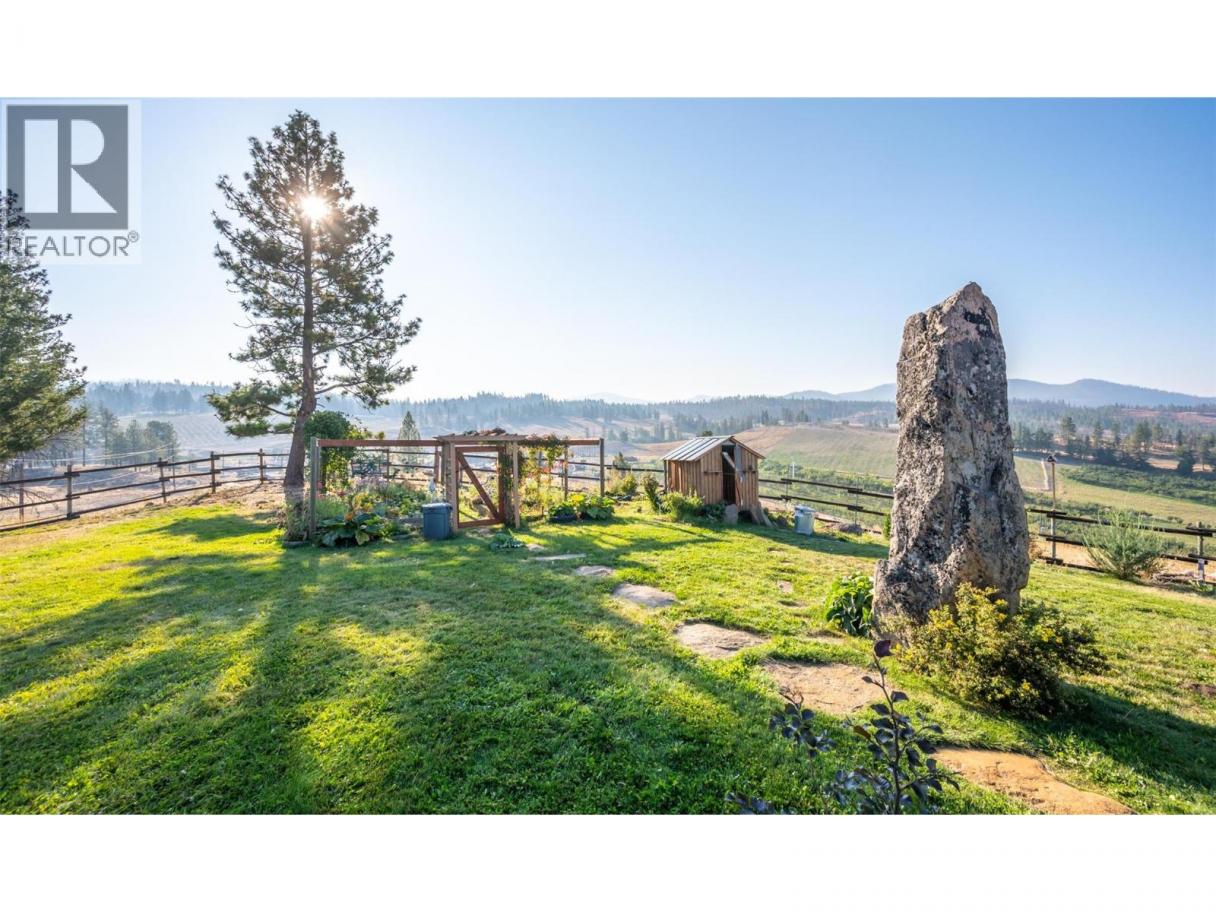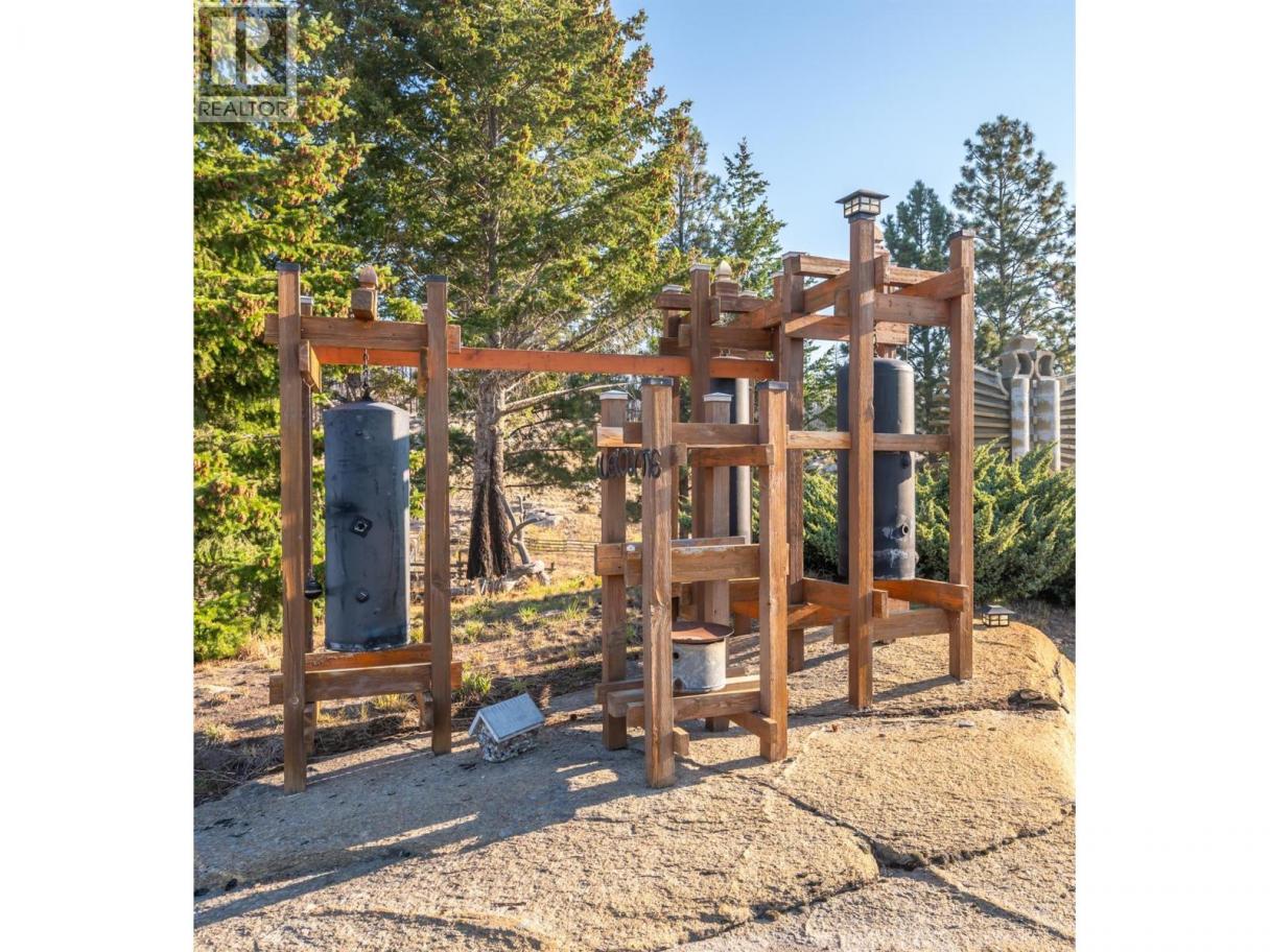Welcome to Manndala! Designed by renowned architect Henry Yorke Mann as his personal residence, this stunning compound is situated on 12.4 rolling acres just a 15 minute drive from Oliver. Surrounded by 270 degree, breathtaking mountain vistas, this natural oasis offers multiple use scenarios including a dream equestrian property, wellness retreat, creative sanctuary, Airbnb destination, or extended family compound. The main residence is a stunning example of HYM's design ethos focused on extensive use of natural materials to creating buildings in harmony with their environments. Anchored by four custom, concrete block pillars (the ""four corners of the earth""), and featuring soaring, skylit, vaulted ceilings, wraparound windows, giant log beams, and Mann's signature central, sculptural, concrete block fireplace installation, this home presents a unique connection to the natural world around it. This design sensibility carries through to the additional buildings on-site; the purpose-built secondary residence (the ""Quietude""), the additional efficiency suite (the ""Cowboy""), and the dramatic, freestanding workshop/studio (the ""Jewel""), with its adjacent three-season washroom. Additional outbuildings on-site provide storage and shelter for vehicles. Thoughtful additions by the current owner include a beautiful, four-stall horse barn with enclosed pastures and custom, circular riding paddock perfect for focused training. Dimensions approximate. Buyer to verify if important. (id:6769)