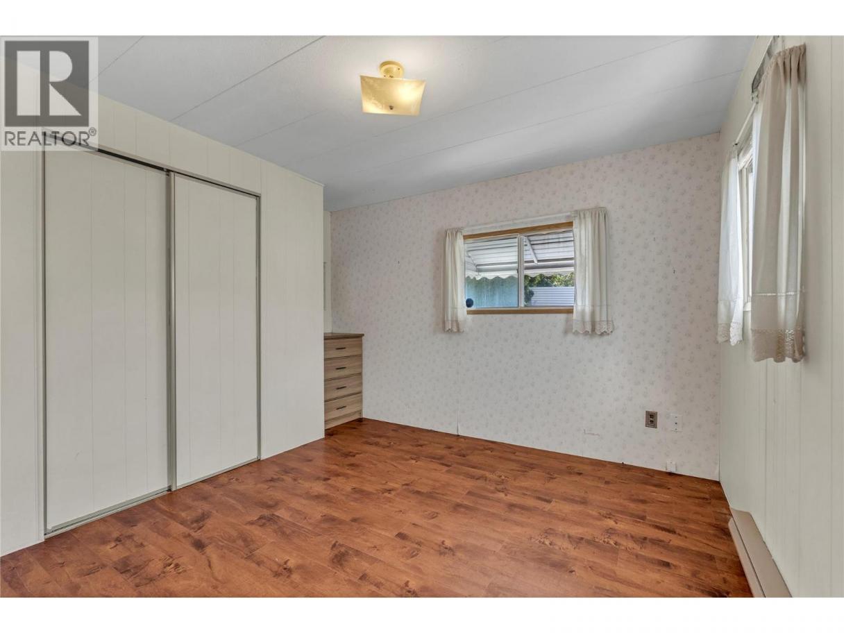 Excellent opportunity to own an affordable home in a well-maintained mobile home park conveniently located close to all amenities, including Cherry Lane Shopping Centre and Penticton Regional Hospital. This welcoming 2-bedroom, 1-bathroom single-wide mobile home offers 912 square feet of comfortable living space which includes an addition for extra room. The generous and sunlit living room creates an inviting atmosphere, while the primary bedroom features convenient sliding glass doors that open directly to the yard. Outside, there is ample space for light gardening or outdoor hobbies, complete with a practical storage shed and a large parking area. This home presents a great opportunity to add your personal touches with some thoughtful updates and upgrades. The Pines Mobile Home Park is professionally managed with dedicated onsite staff who ensure the community remains peaceful and well-kept. This is an age-qualified community for residents 55+, and the park welcomes one small pet with management approval. Quick possession is available. (id:6769)