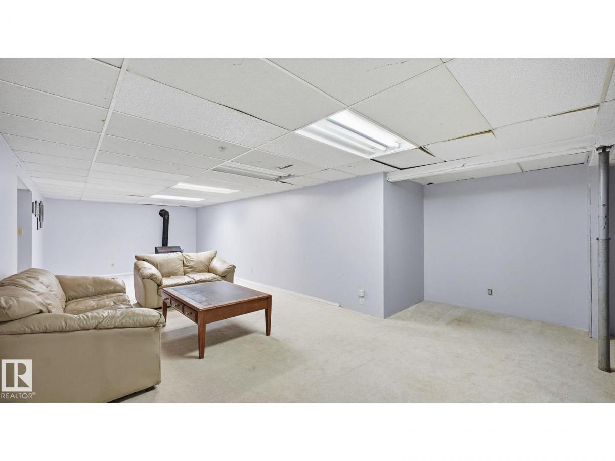 Best Priced Bungalow in Gibbons! So much charm here. This 3 bed, 3 bath 1,270 sq ft bungalow sits on a massive pie-shaped lot with a double oversized garage on a quiet, family-friendly street. Great-sized kitchen and a large main floor living area, plus 3 bedrooms, a nicely sized full bath, and a primary bedroom with its own 3pc ensuite. The fully finished basement is big — featuring 1 bedroom, a 3pc bath, tons of storage, and a huge rec space perfect for the kids. The wood-burning stove keeps the home warm, cozy, and full of character. Outside is a huge private backyard and a large driveway with room for all the cars. This Gibbons gem is also steps from a great neighborhood park, just 2 minutes from Gibbons School, and close to all local amenities — an unbeatable location for families. (id:6769)